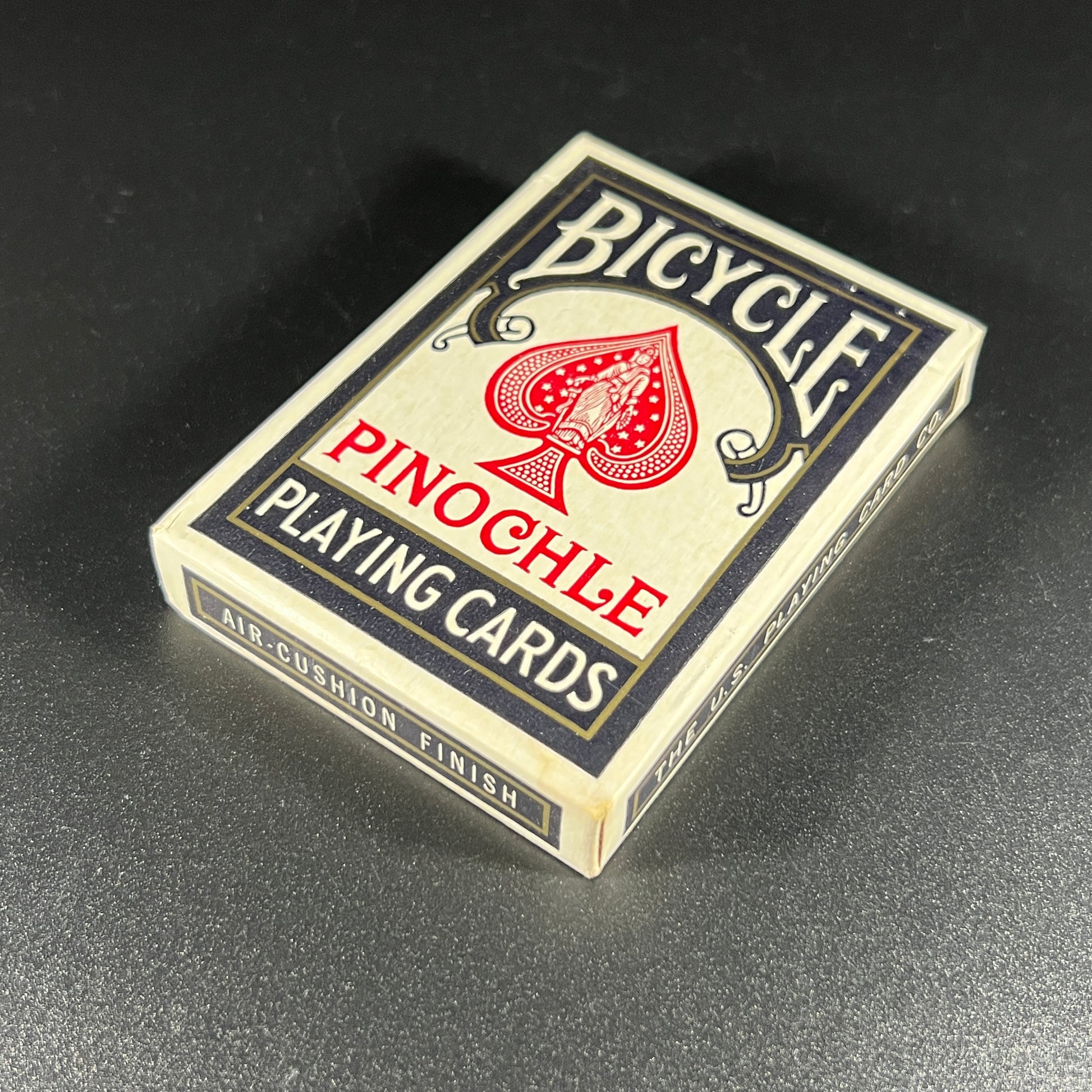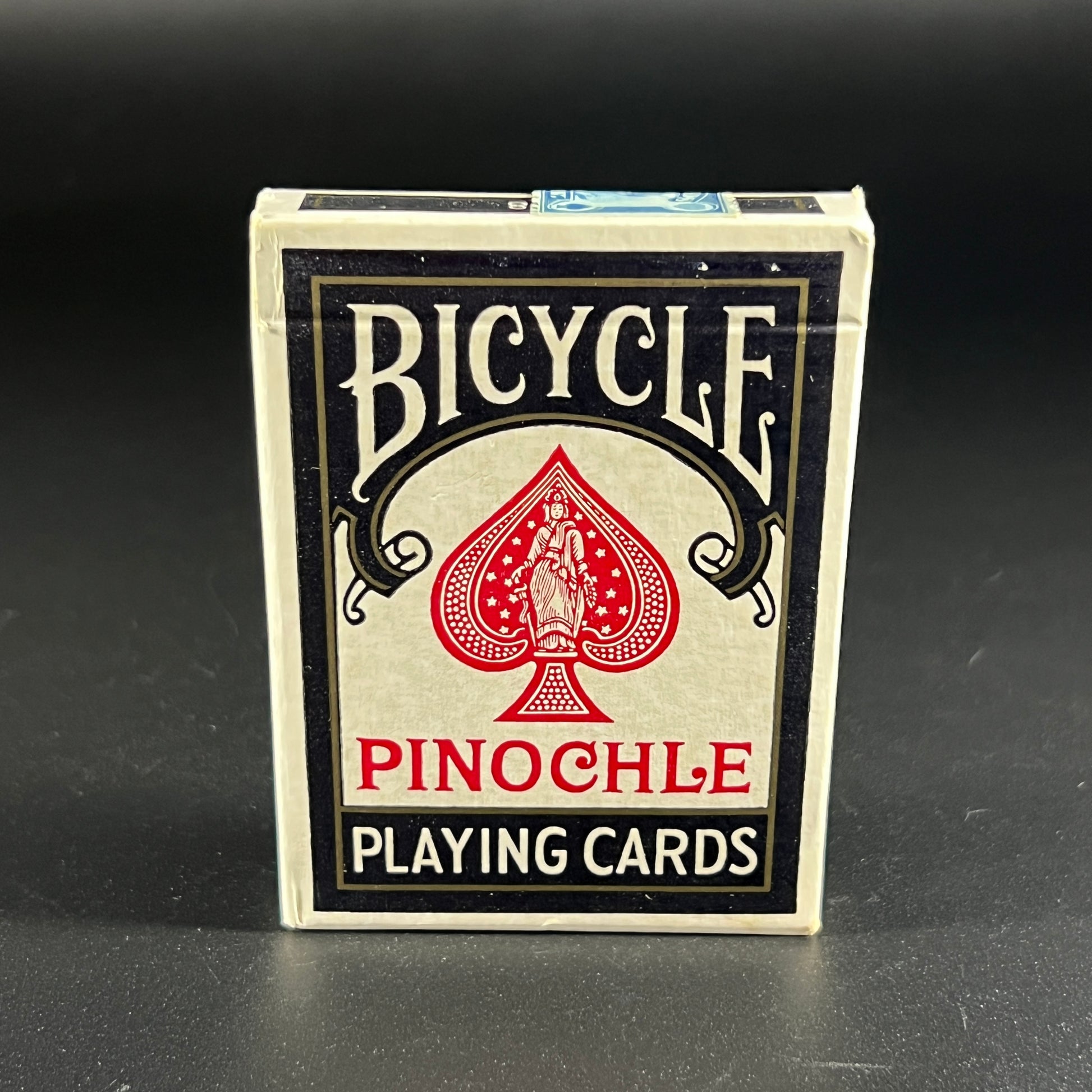 This vintage 1950s Bicycle Pinochle playing card deck features an intact tax stamp and is in excellent vintage condition. A great find for collectors, it reflects the classic style and quality associated with Bicycle cards. The deck measures approximately 3.75" x 2.75" x 0.5".