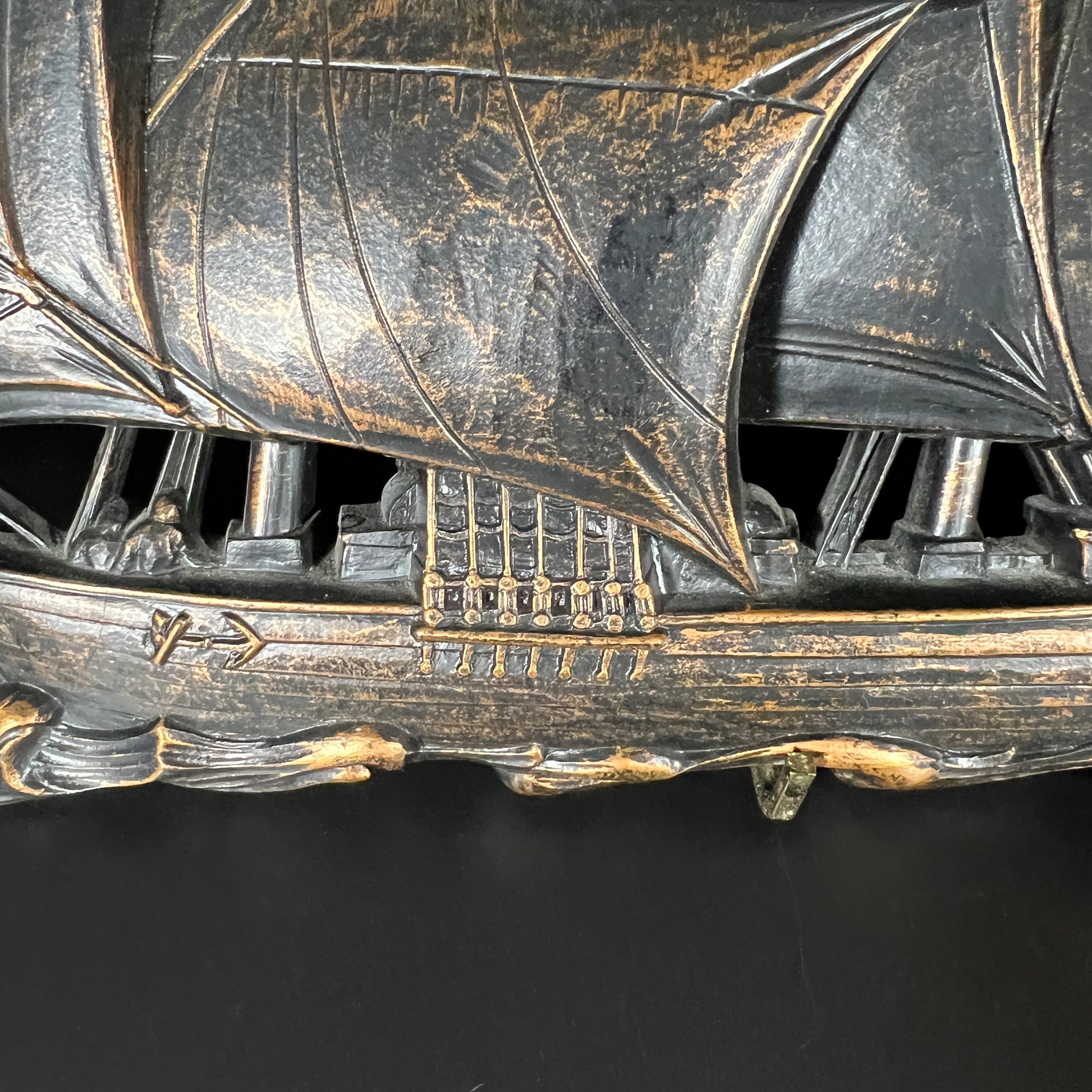 Add a touch of mid-century charm to your space with this 1960s Syroco sailboat wall plaque. Featuring a striking 3D schooner design in rich brown and copper tones, this lightweight hard plastic (resin) piece brings a classic nautical vibe to any home, office, or beach-themed décor.