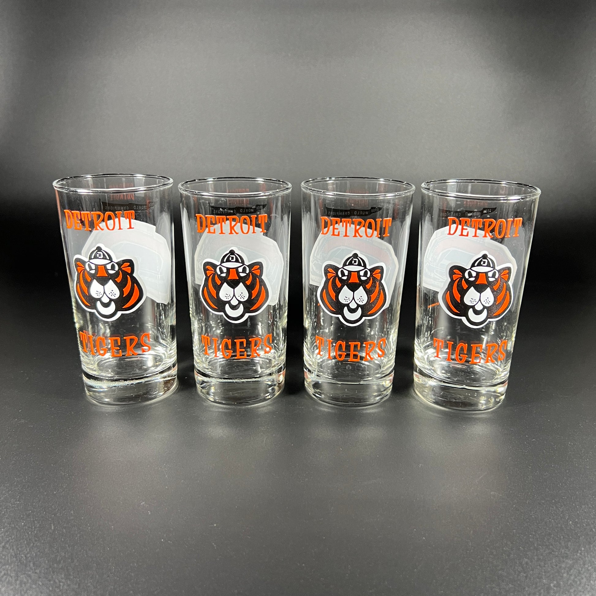 Celebrate the Detroit Tigers' 1968 World Series victory with this stunning set of 4 vintage glasses, each showcasing the iconic Tigers' logo on the front and stadium on the back. These glasses capture the excitement of that unforgettable season and are the perfect way to commemorate one of baseball's great moments. Whether you're a dedicated Tigers fan or a sports memorabilia collector, this set is an excellent addition to your collection. Great for enjoying your favorite beverages while reminiscing about the Tigers' historic win! Don't miss out on the opportunity to own a piece of Detroit sports history. Each glass measures 5.5 H with a opening of 2.75.