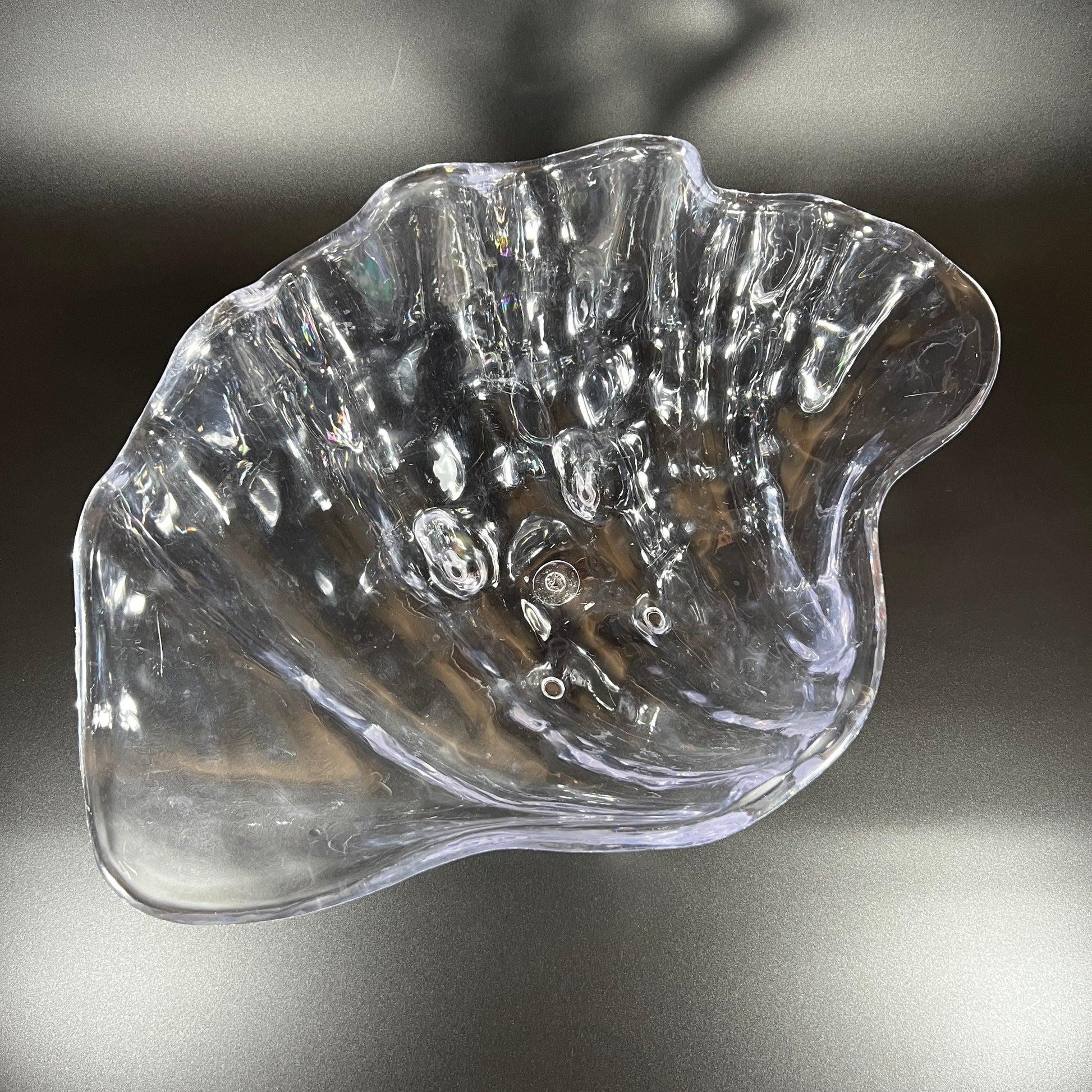 This vintage South Sea's Giant Clam Shell acrylic serving bowl is a stunning piece in excellent vintage condition. Its unique design and size make it an eye-catching addition to any table setting. Measuring approximately 18.5" L x 12.5" W x 8.5" H, this bowl combines elegance and functionality, perfect for serving or as a decorative centerpiece.