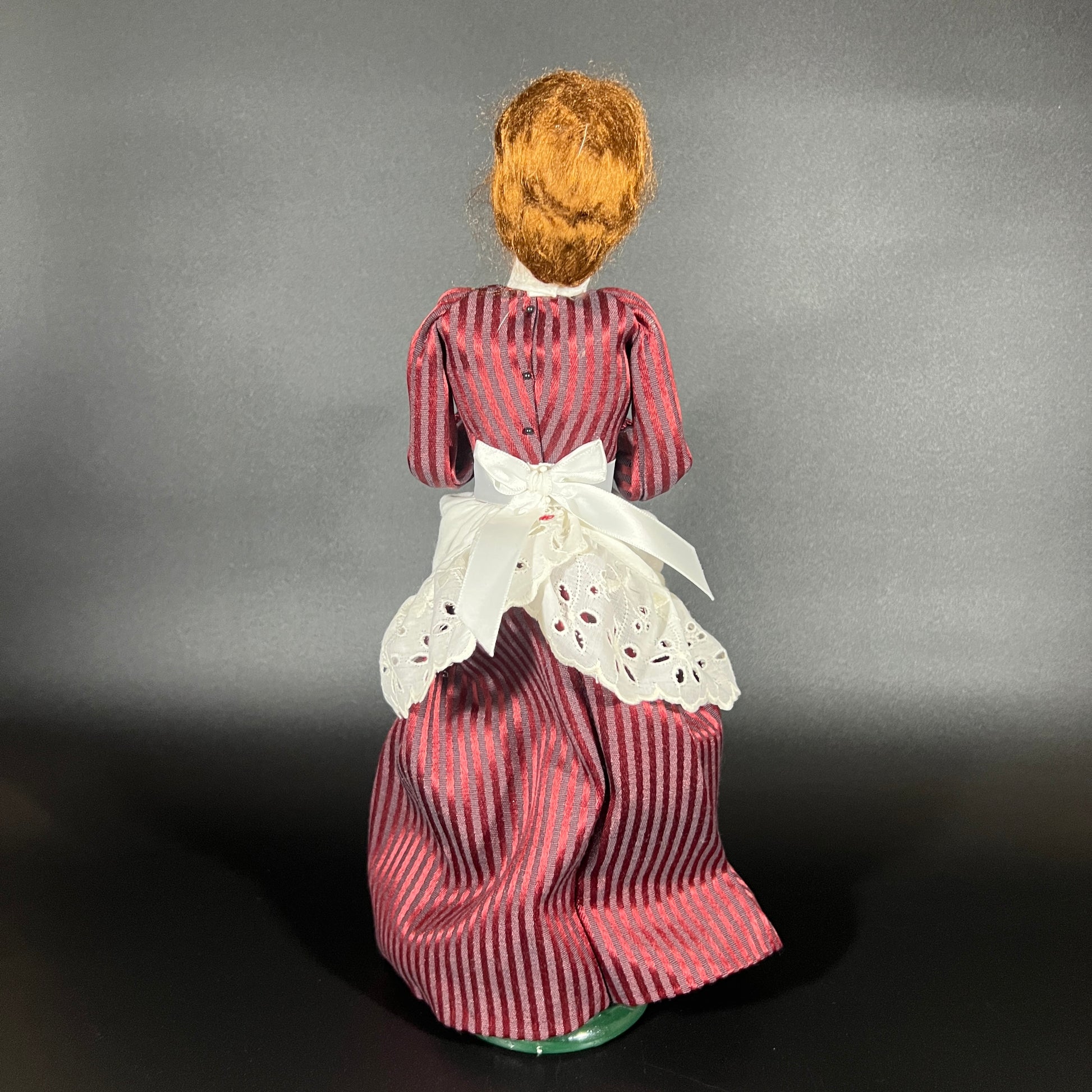 This is a pre-owned Byers Choice doll from a private collection. It remains in great condition, with only minor signs of wear in some areas. Please refer to the photos for a closer look at the details. The doll stands approximately 13 inches tall.