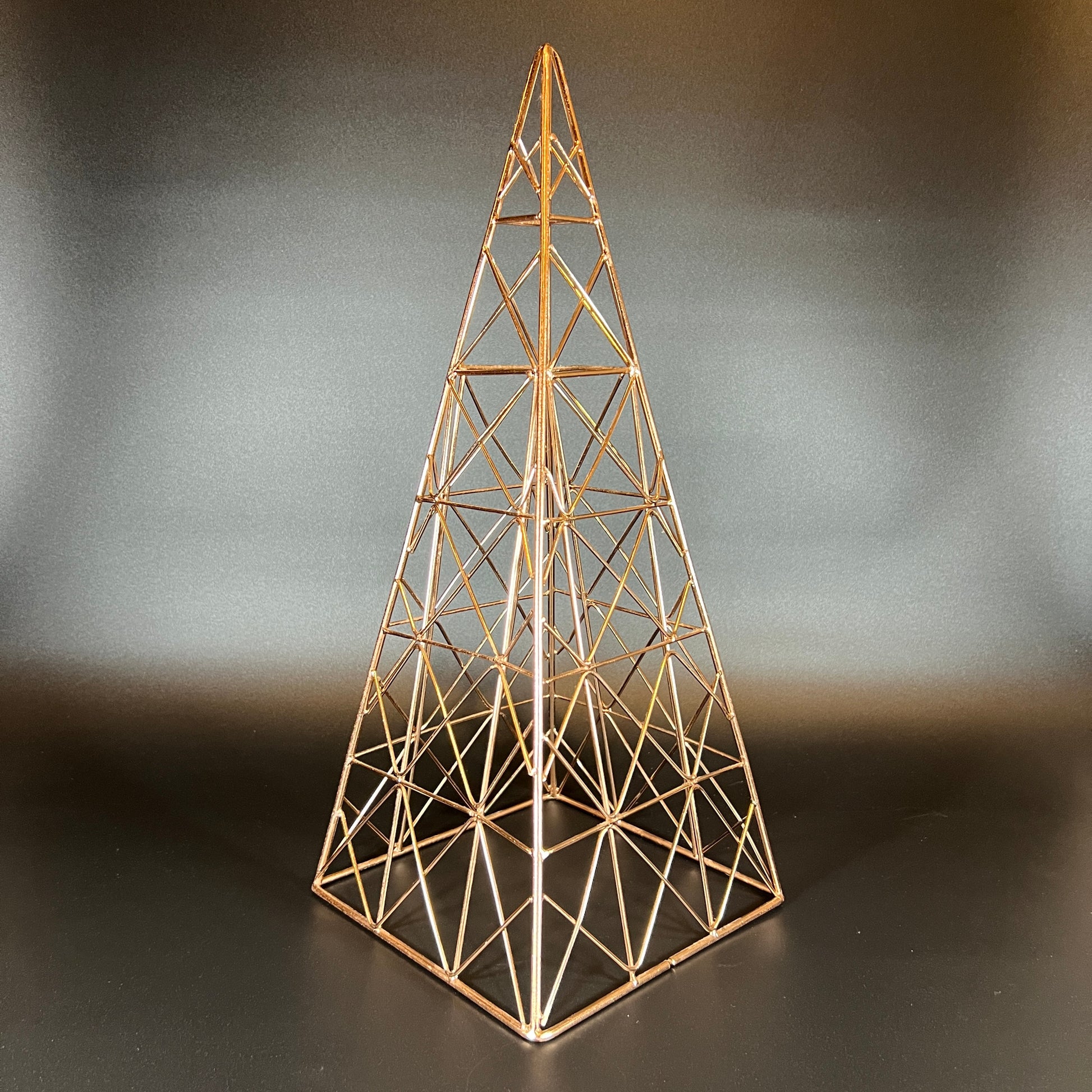 This stunning copper metal tree sculpture features a unique wire tower design, perfect for adding a modern touch to your home decor. Its sleek and minimalist look makes it a versatile piece for any space.