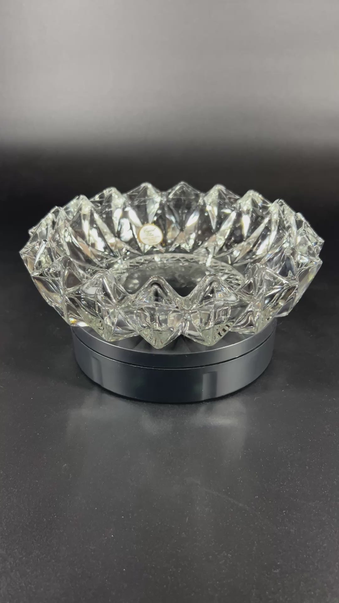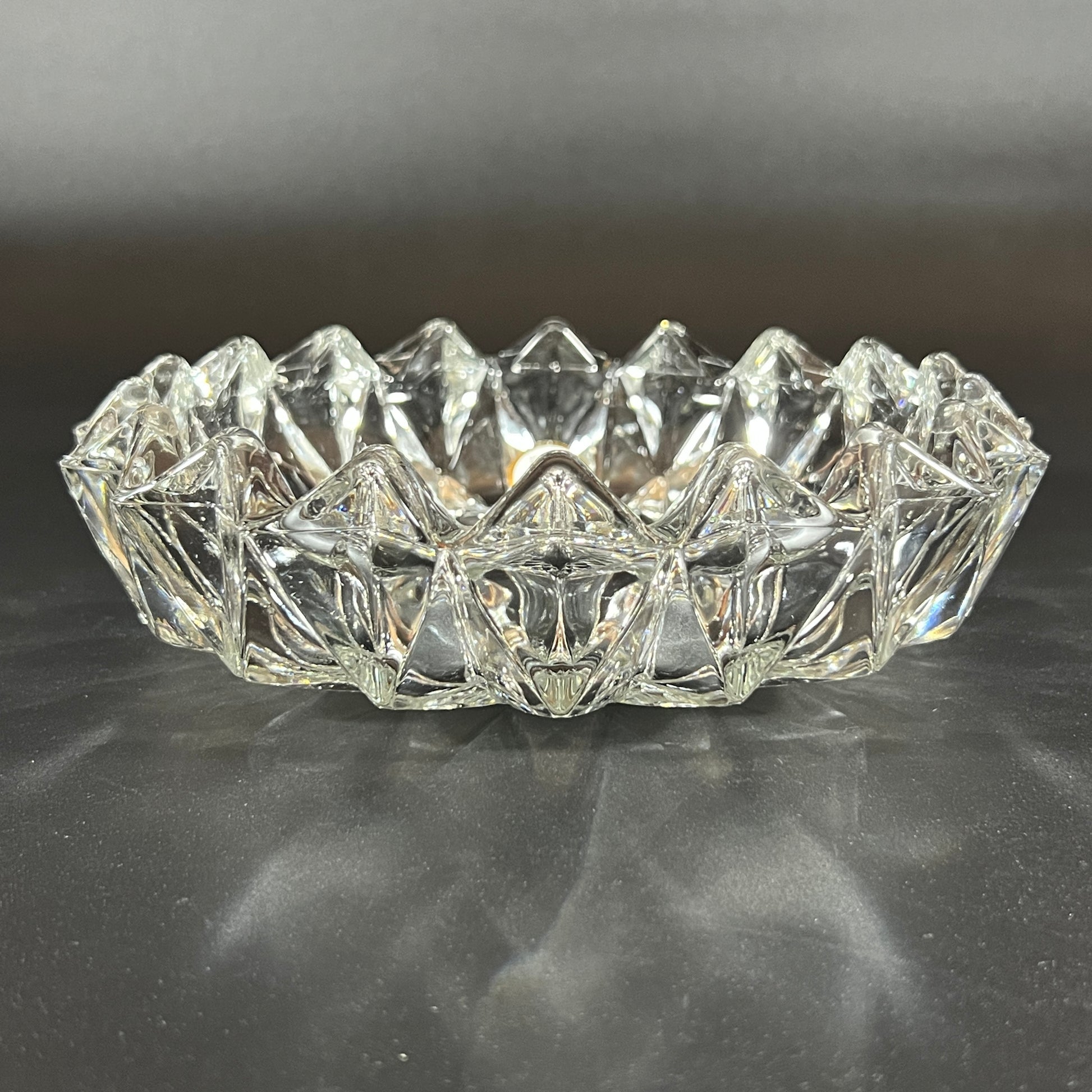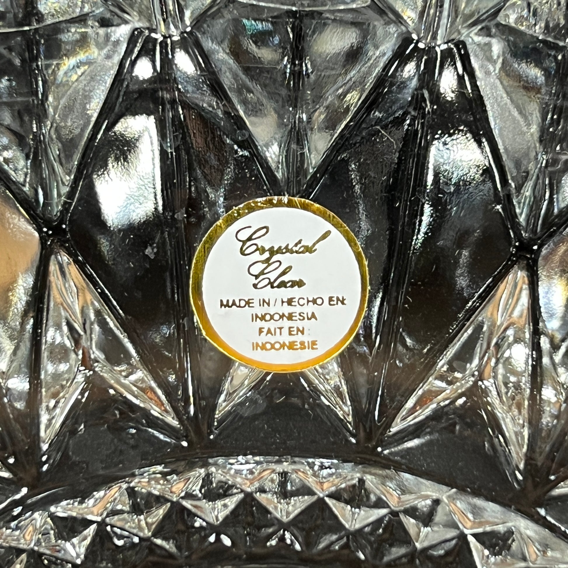 This vintage Crystal Clear brand ashtray is a beautifully preserved piece that still retains its original factory sticker—a rare find. Crafted from thick, heavy crystal glass, it offers both style and substance. In excellent vintage condition, it measures approximately 8 inches in diameter and 2.25 inches high. A standout addition to any retro decor or smoking accessories collection.