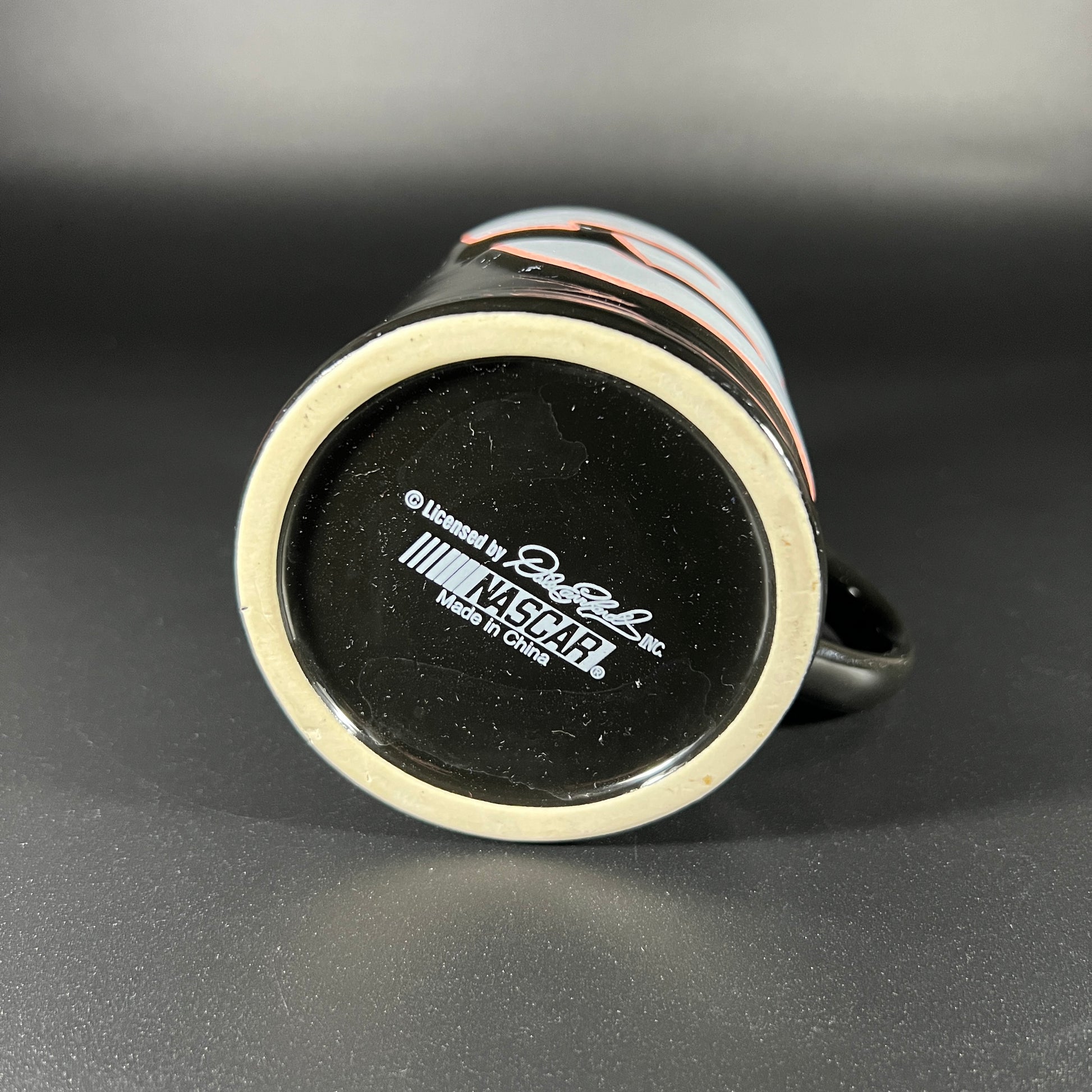 Dale Earnhardt black 2-sided Mug featuring a raised #3 on the front and a raised signature on the back. This glossy black mug is a unique piece for any collector, with its bold design and attention to detail. The raised #3 and signature make it a standout item for display or everyday use. In good vintage condition with no chips or cracks. The mug stands 4" tall, measures 5" wide (including handle), and has an opening of 3.5". A must-have for Dale Earnhardt fans and collectors alike!