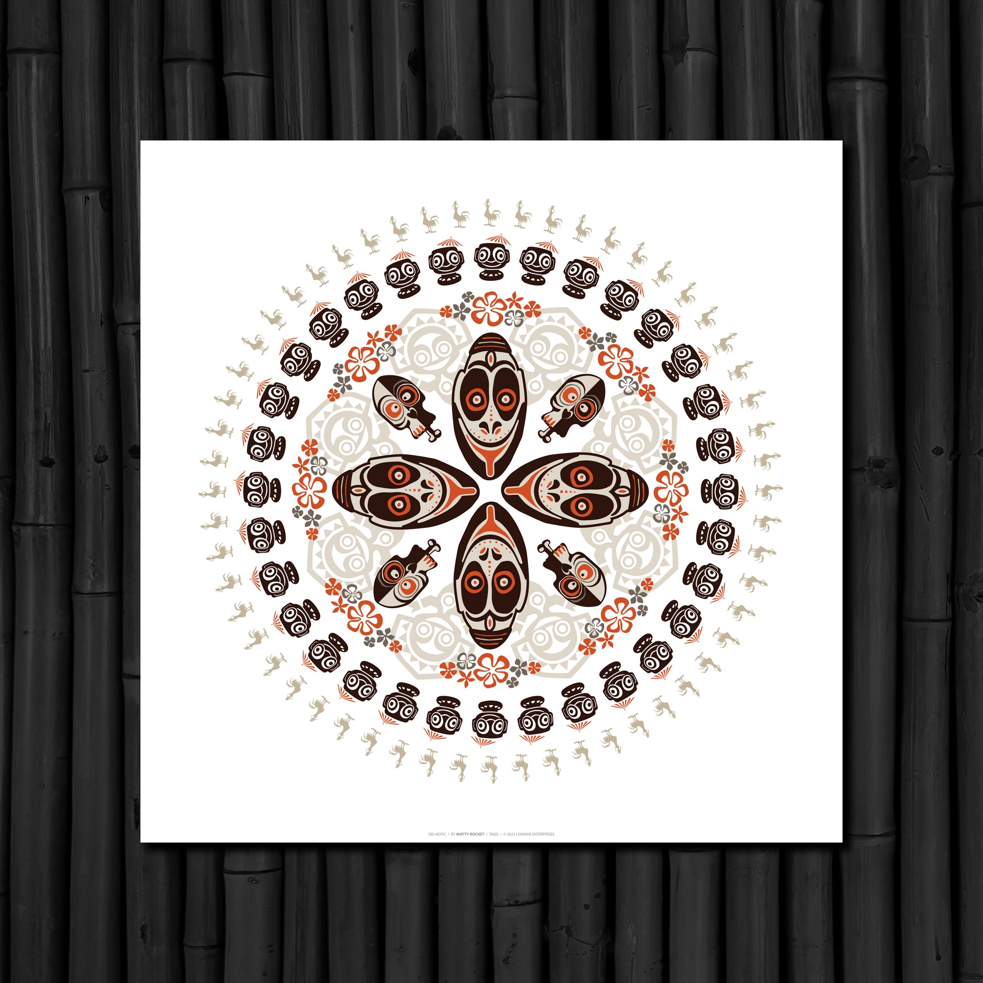 This mandala design showcases hypnotic, eye popping Disney tiki icons used primarily around the Polynesian resort in Orlando Florida. This signed limited first edition was originally printed for the Tiki-a Go Go event in Orlando, Florida.