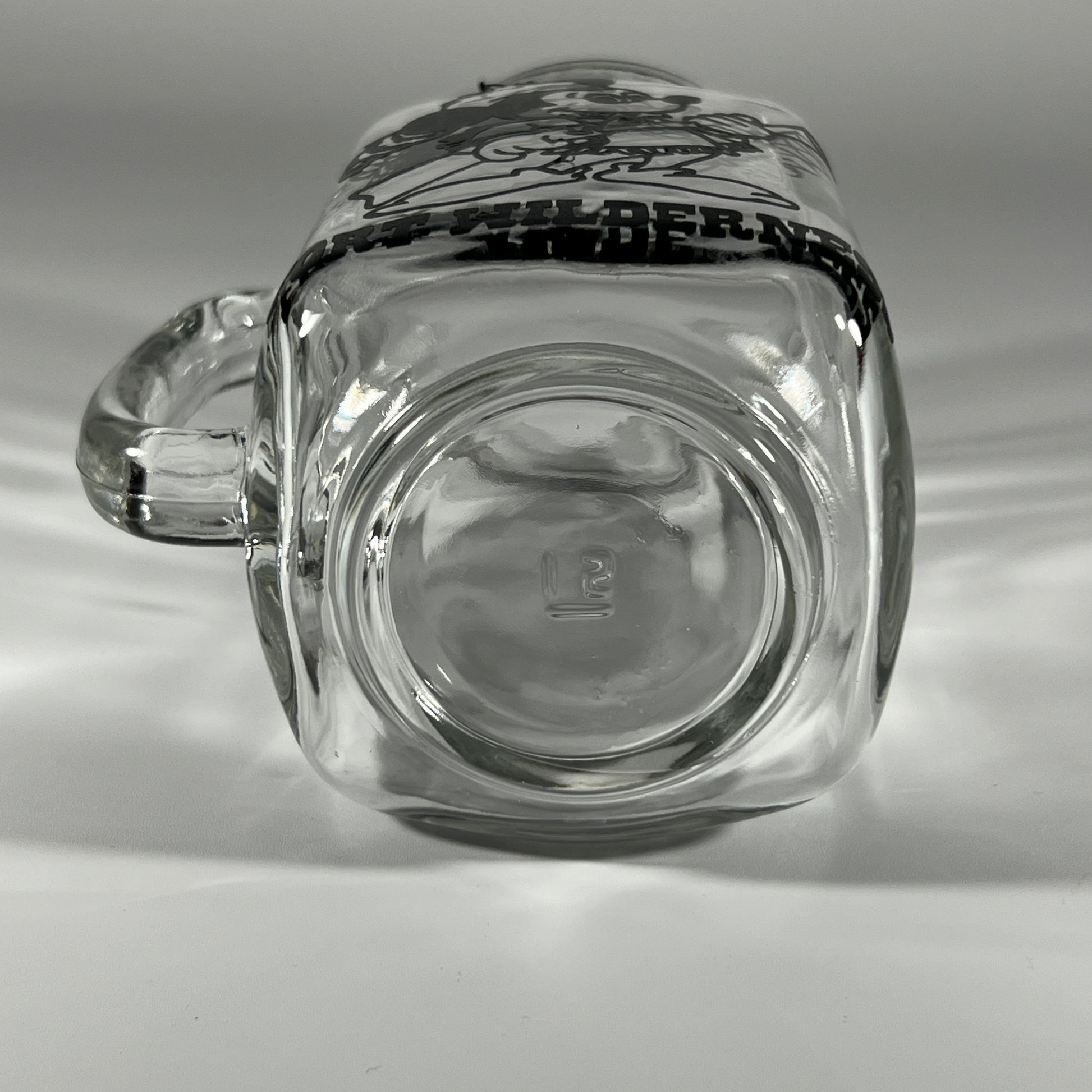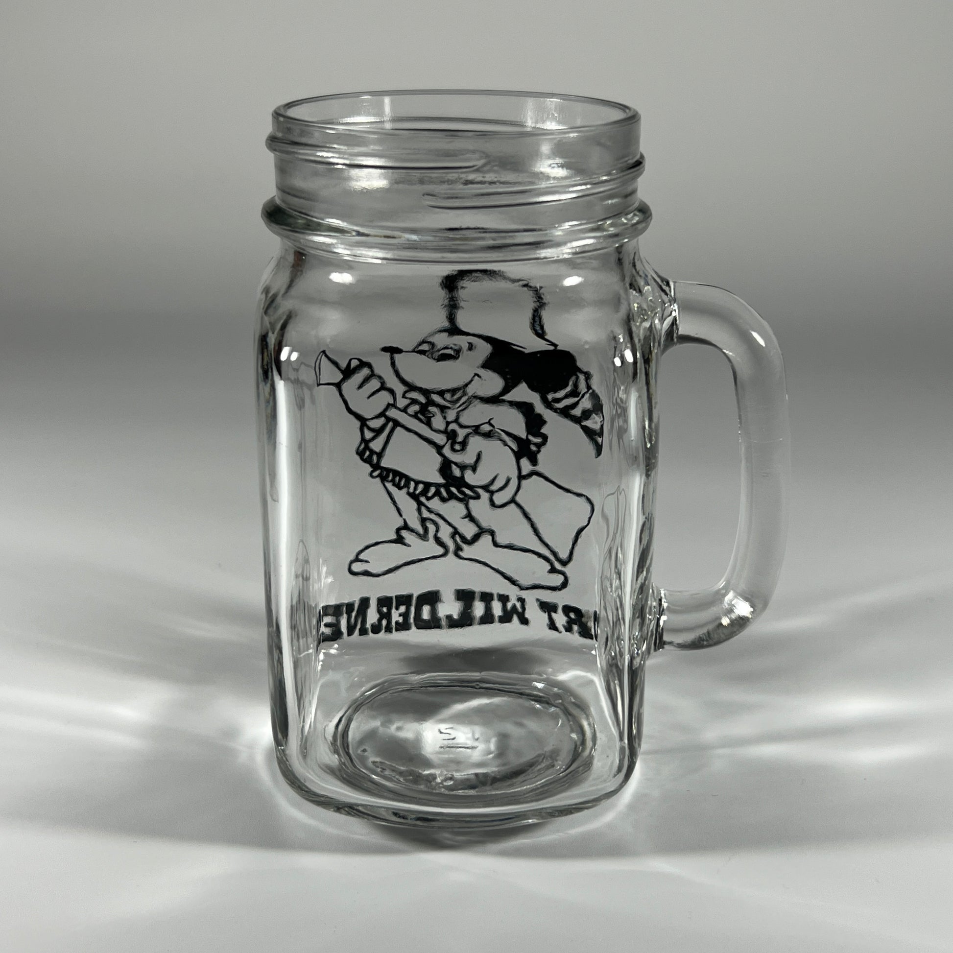This Disney’s Fort Wilderness mason jar features Mickey Mouse wearing a coonskin cap, capturing the rustic charm of the beloved resort. The jar is pre-owned and in good condition, showing minor wear consistent with age. Please see photos for details.