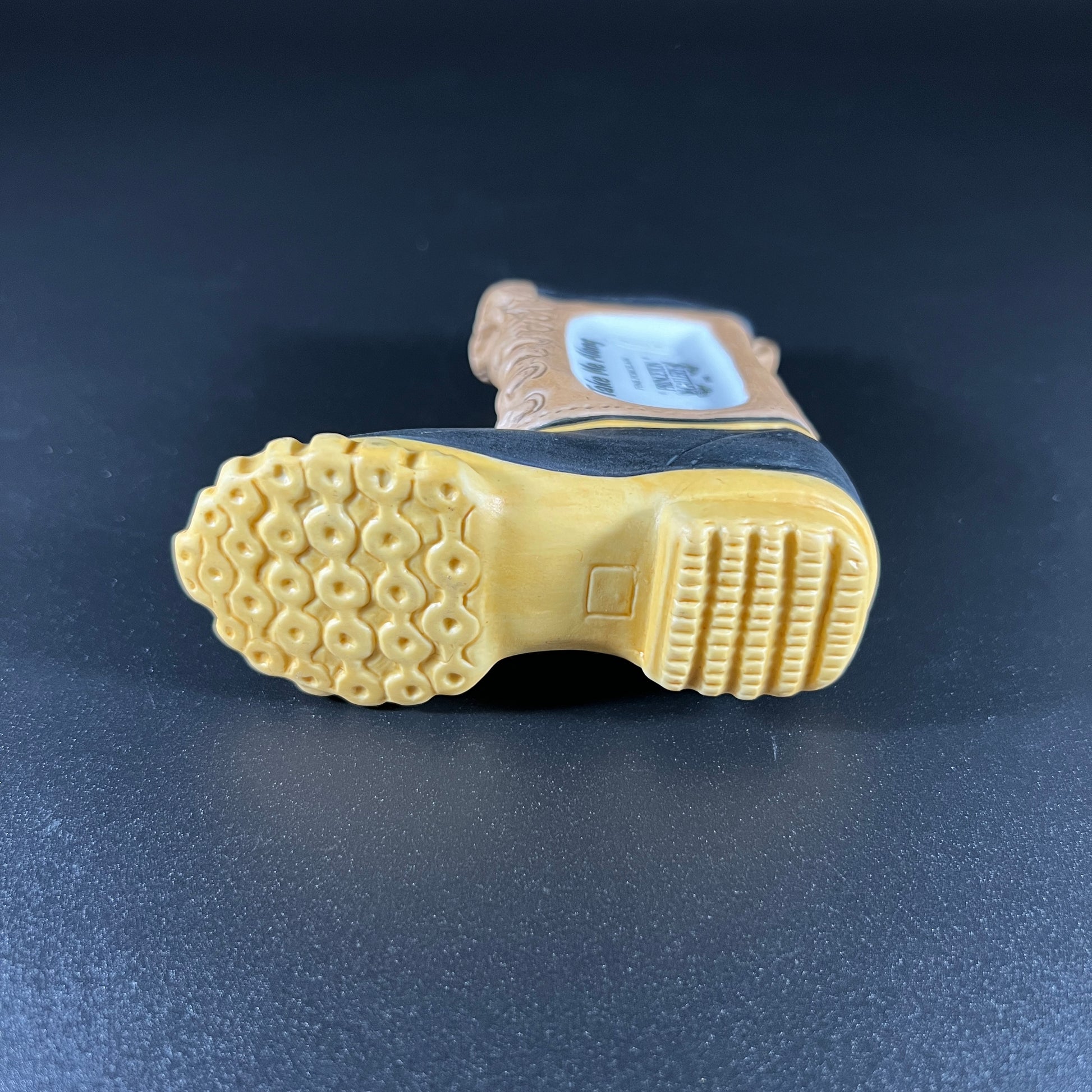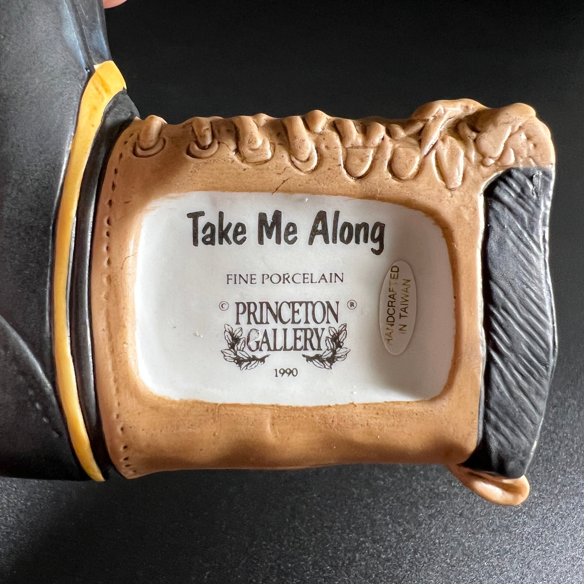 This unique duck boot figurine is titled "Take Me Along" and was crafted by Princeton Gallery in 1990. Made of fine porcelain, it features exquisite detailing. The label on the side adds to its authenticity as a collectible piece.