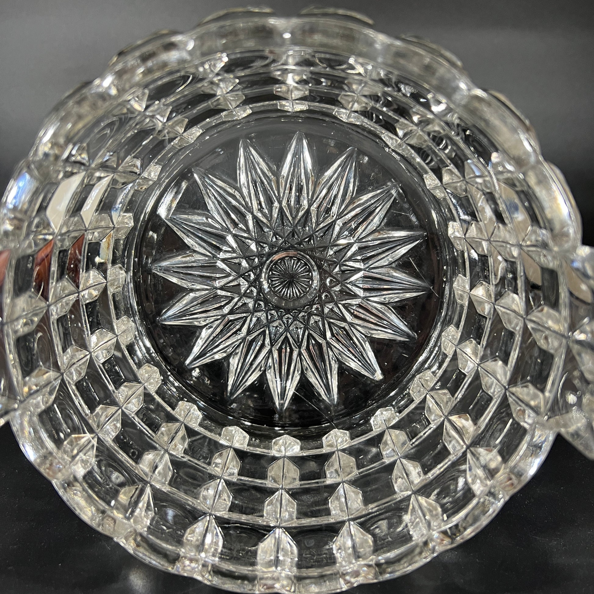 This early American patterned glass (EAPG) design from Duncan Miller (1889-1904) features a striking design, perfect for adding a touch of class to any gathering. This ice tub is spacious enough to chill champagne or wine, it’s a functional yet stylish piece. In great vintage condition with minimal wear, this ice bucket is a true collectible. Please refer to the pictures for more details. It measures approximately 5.5" H x 6.75" in diameter.