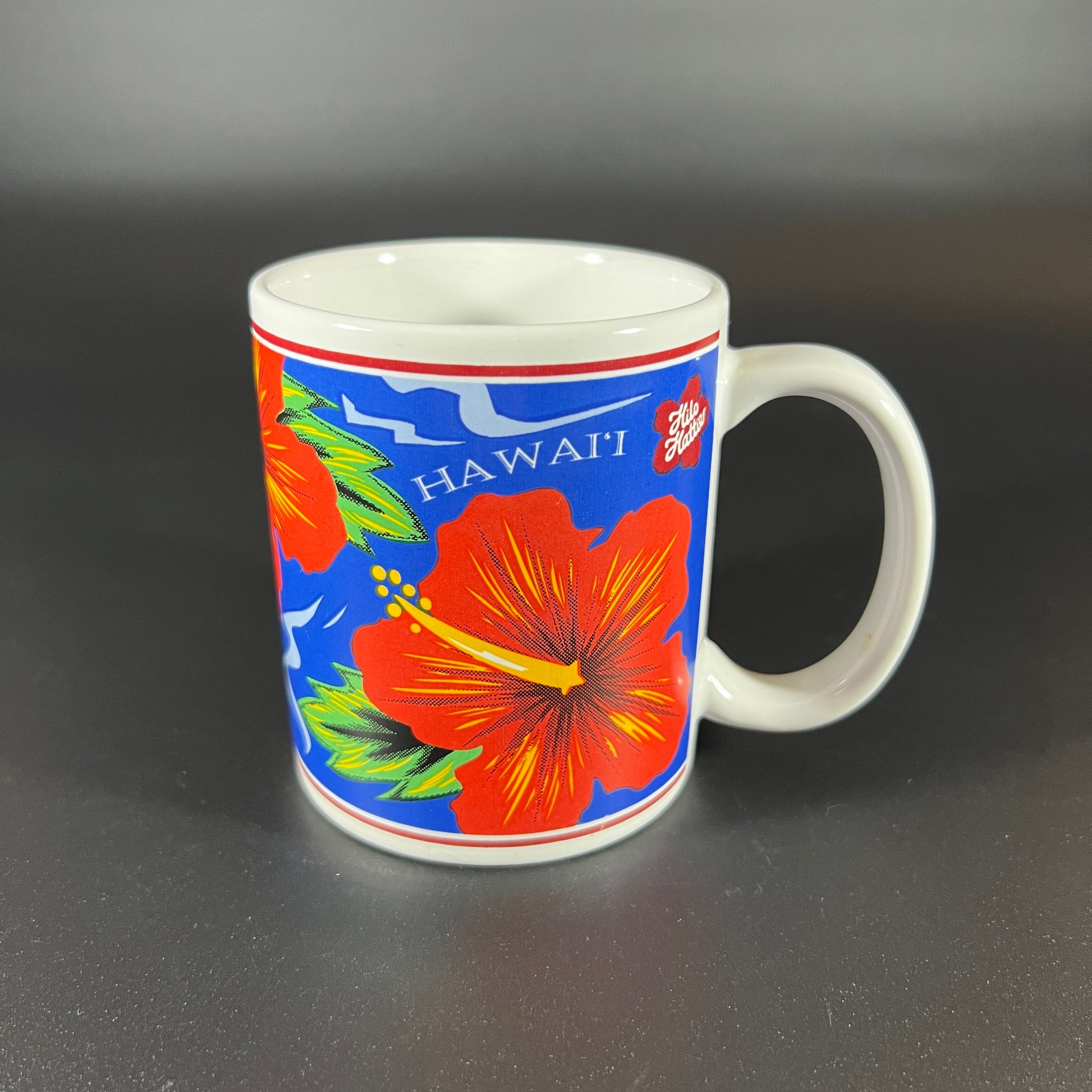 This 1997 Hilo Hattie Hibiscus mug is a charming souvenir from "The Store of Hawaii." In excellent vintage condition, it captures the vibrant spirit of the islands. The mug measures approximately 3.75" H x 4.75" W (with handle) x 3" opening, making it a perfect addition to any collection or as a keepsake from Hawaii.