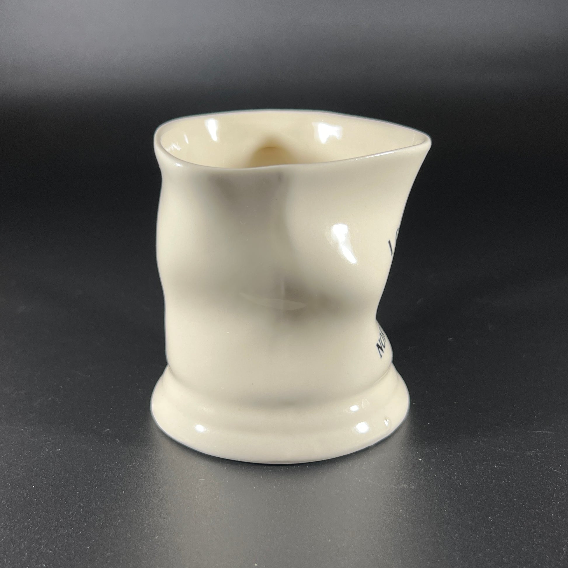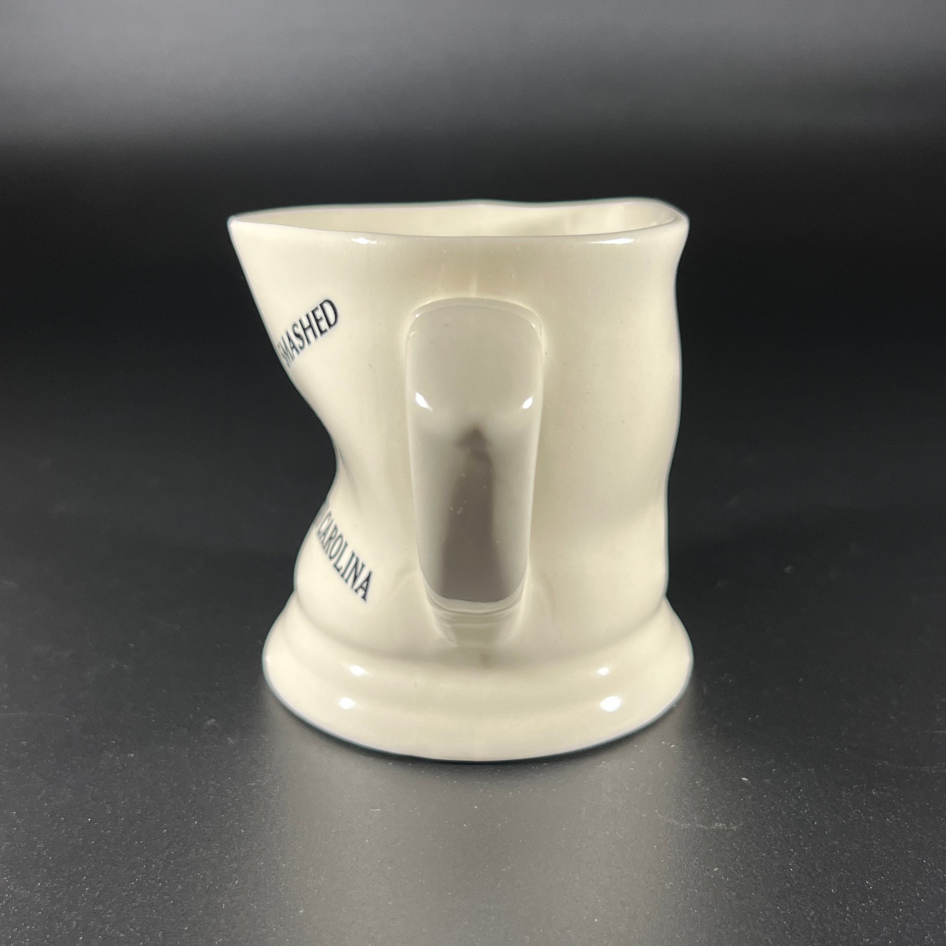 This vintage 1970s souvenir mug from the state of North Carolina features a playful and humorous design—shaped to look crushed or dented, with the cheeky inscription "I Got Smashed in North Carolina" across the front. A fun conversation piece, it perfectly captures the quirky charm of vintage travel memorabilia. The mug is in great vintage condition with only minor signs of age. It measures approximately 3.75 inches in height, 5 inches wide including the handle, and has a 3.25-inch opening. A must-have for collectors of novelty mugs or retro souvenirs.