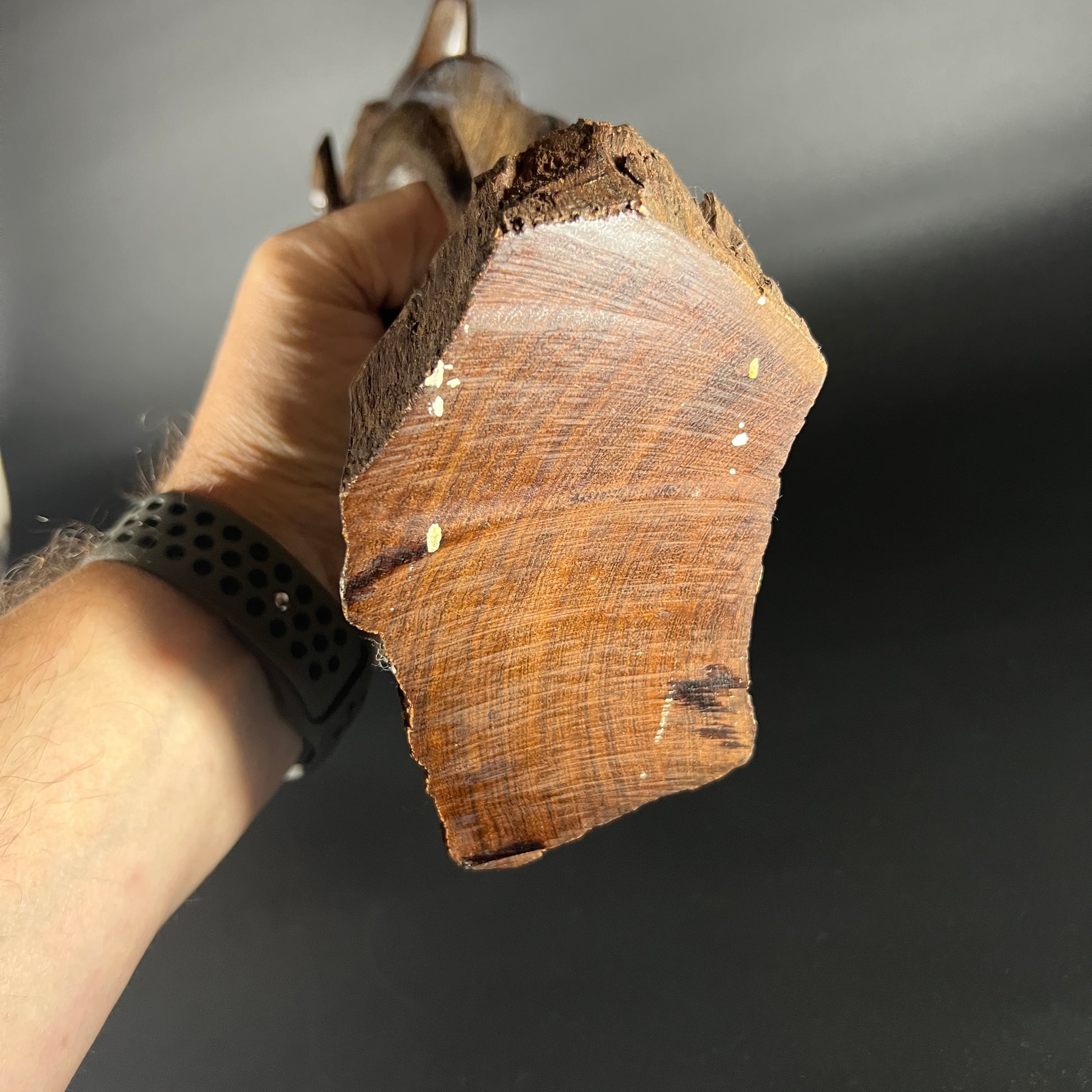 This beautiful hand-carved wooden figurine of a Bighorn Sheep Ram dates back to the 1980s. Crafted from solid ironwood, the piece has a substantial weight and is finished with a satin sheen that highlights the rich, dark wood grain. In very good vintage condition, though the horns appear to have been professionally repaired at some point, with the restoration being barely noticeable (see photos). The figurine measures 11.5" high, 3.5" wide, and 7" deep, making it a striking addition to any collection.