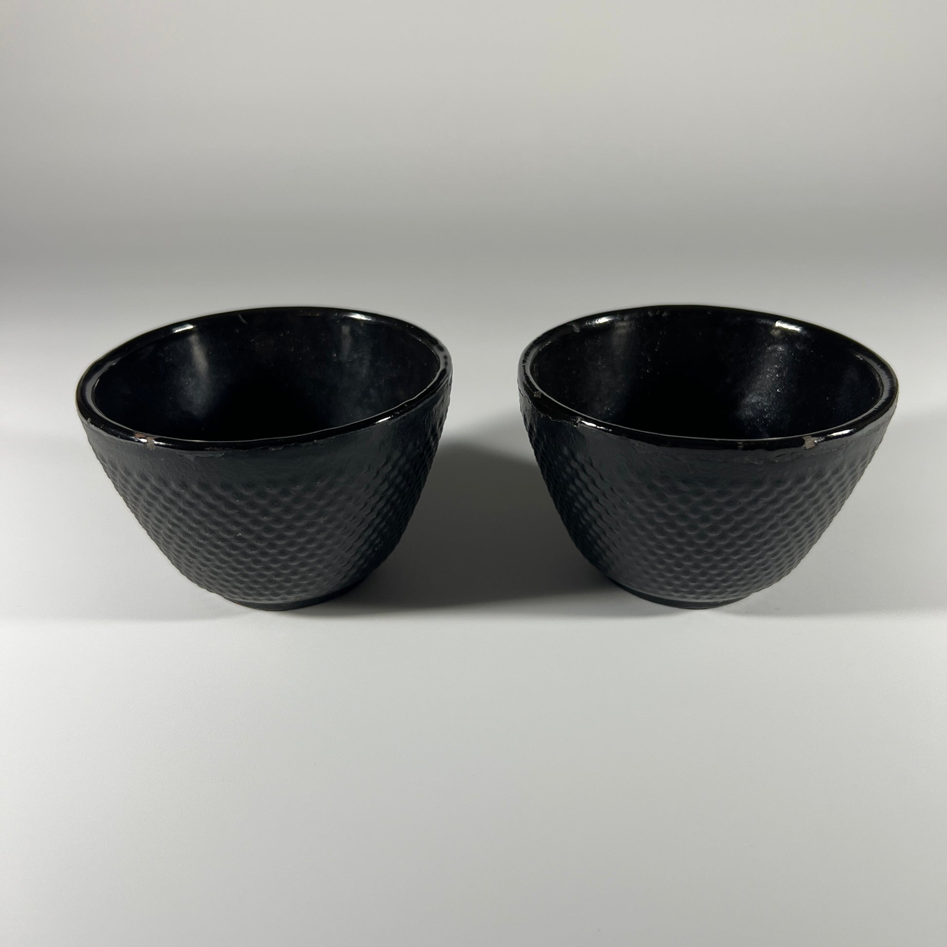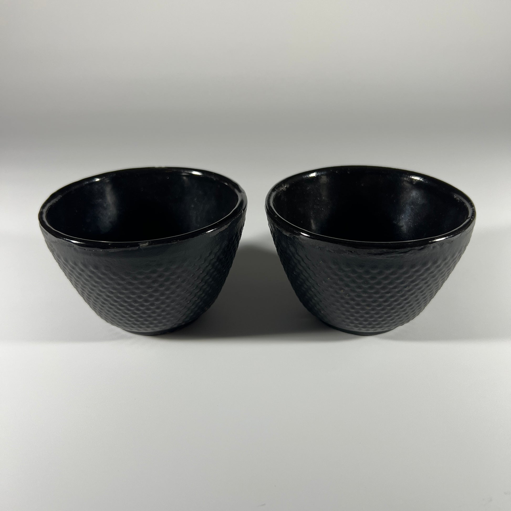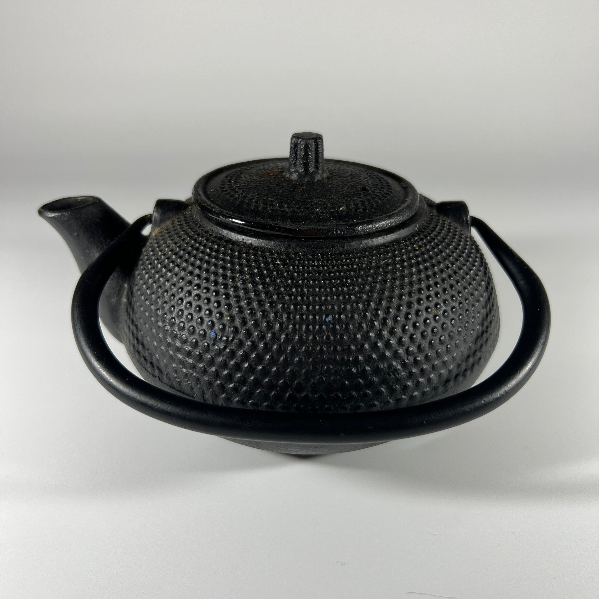 A vintage Japanese cast iron tea set, beautifully crafted with meticulous attention to detail. The timeless design features a sleek, sophisticated aesthetic, while offering exceptional heat retention. The set strikes the perfect balance between captivating beauty and functional comfort. It is in good vintage condition, with minor wear consistent with its age. Please refer to the photos for more detail. The teapot measures approximately 6 inches in height, 5.5 inches in width, and 6.25 inches in depth, while each cup measures 2 inches in height and 3.25 inches in diameter.