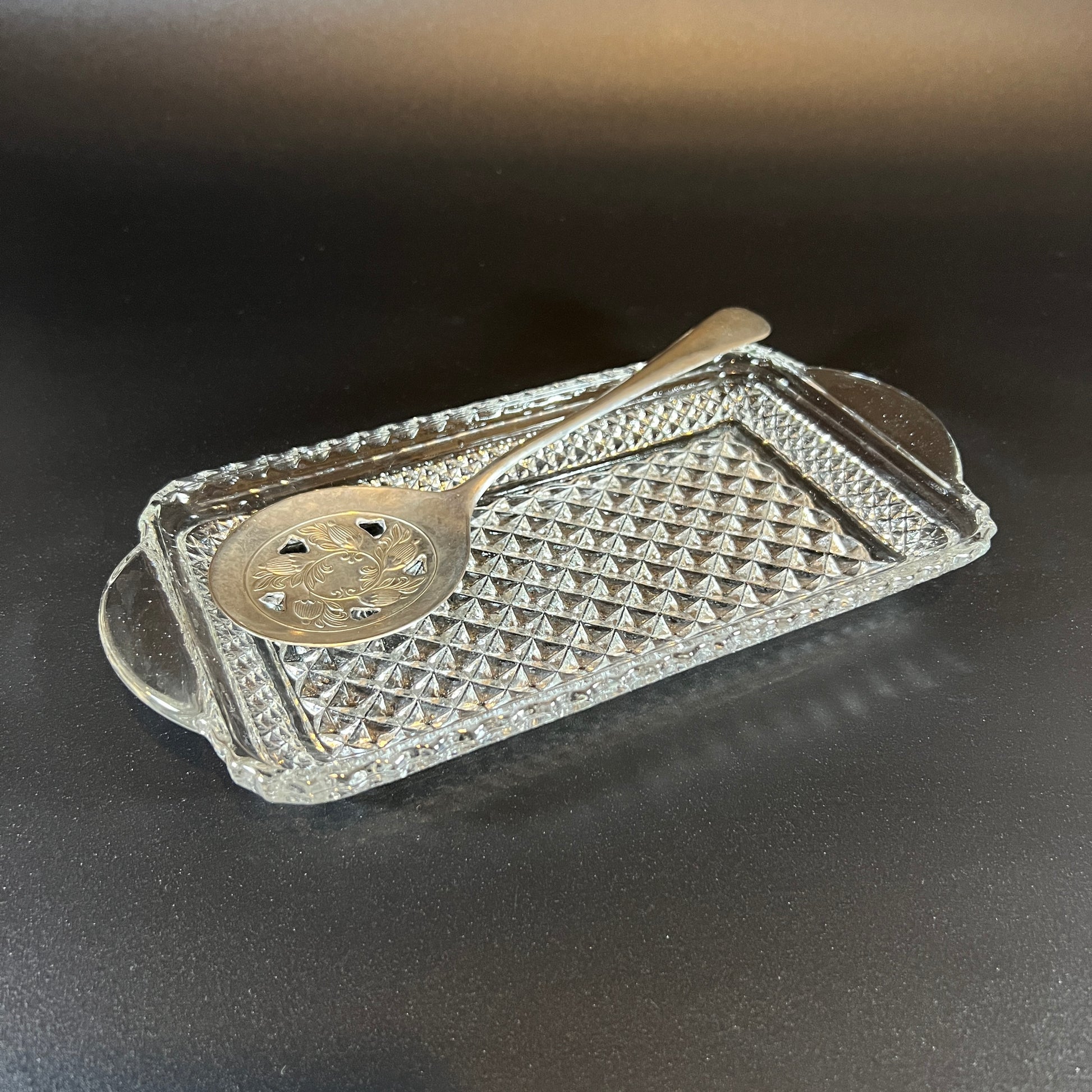 This beautiful serving set from the 1970's is perfect for enhancing your dining table during the holidays. Crafted by Leonard Silver Manufacturing, this set includes the cranberry dish and a silver-plated spoon, both in good condition with no chips or cracks. The original box is included, though it is in poor condition (see photo). The dish measures 10 inches in length and 5 inches wide, making it a lovely addition to your festive table settings!
