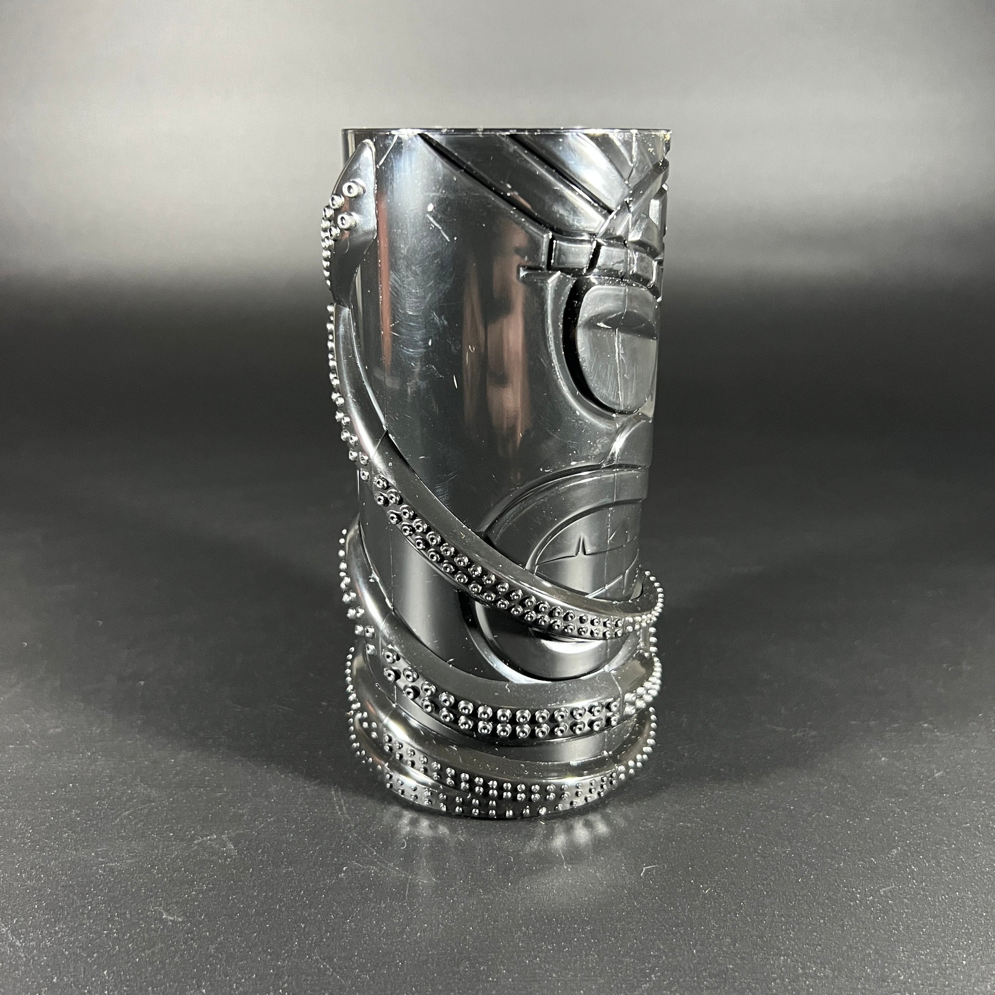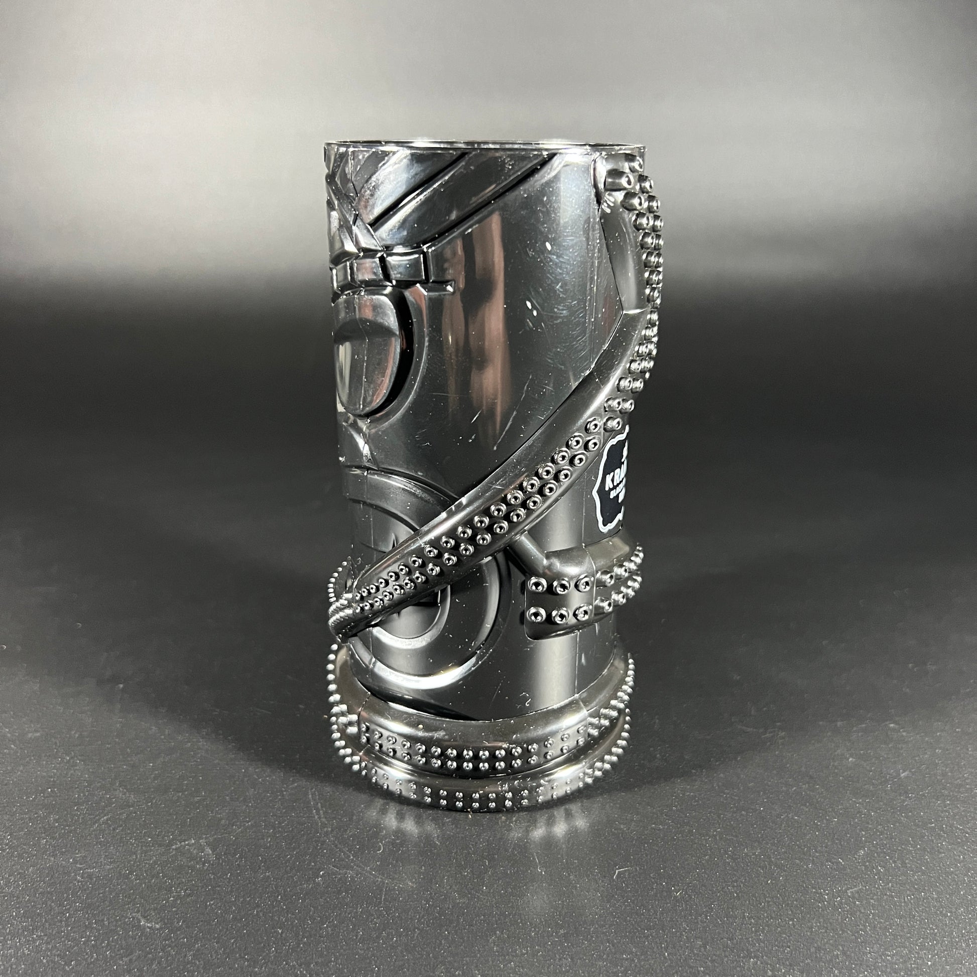 This Kraken Black Spiced Rum plastic tiki mug was part of a limited edition holiday gift package. Featuring a tiki design with tentacles wrapped around it, the mug also showcases the Kraken logo on the back. Brand new and unused, it measures 5.75" in height, 3" in width, with an opening of 2.75". A fun and collectible piece for rum enthusiasts and tiki lovers alike!