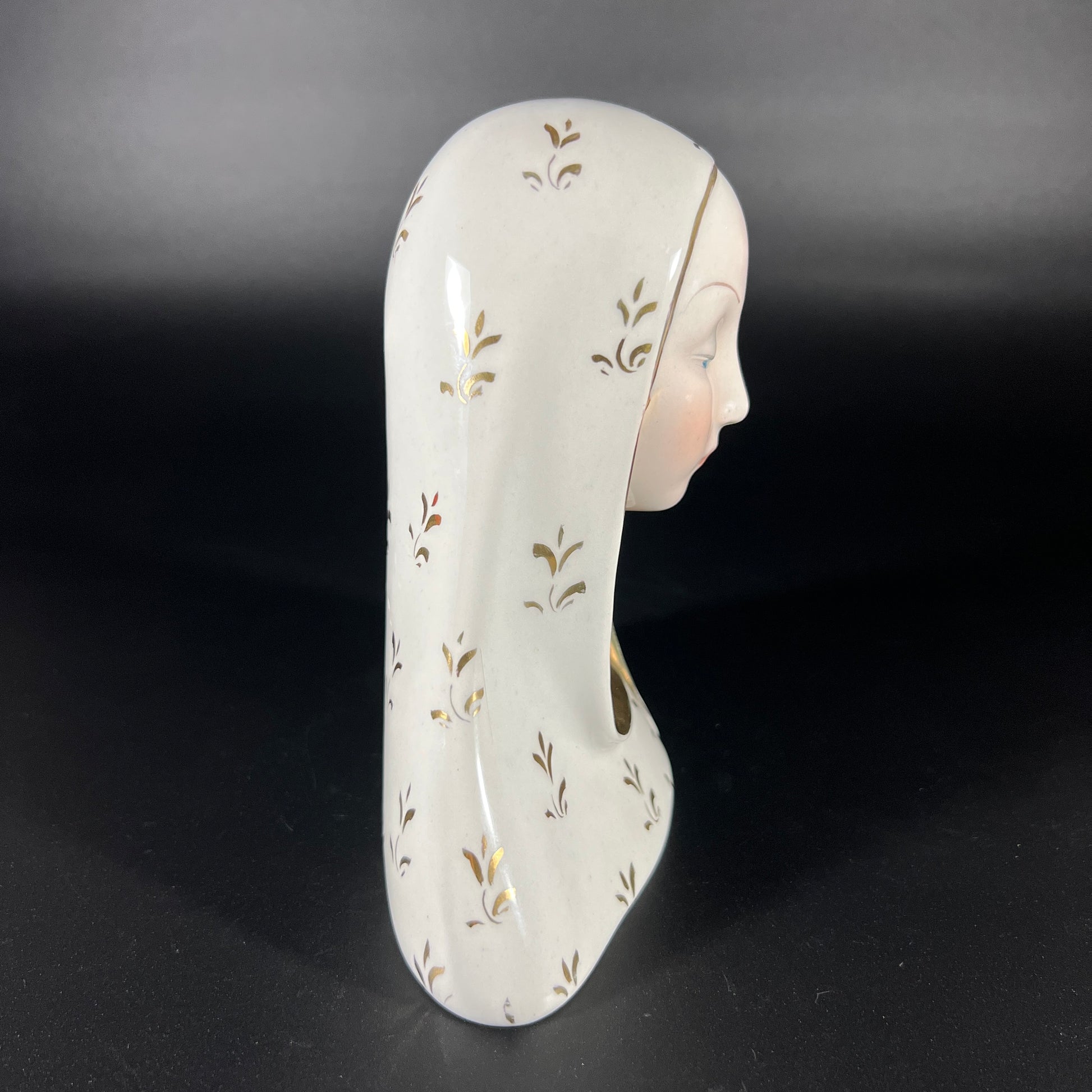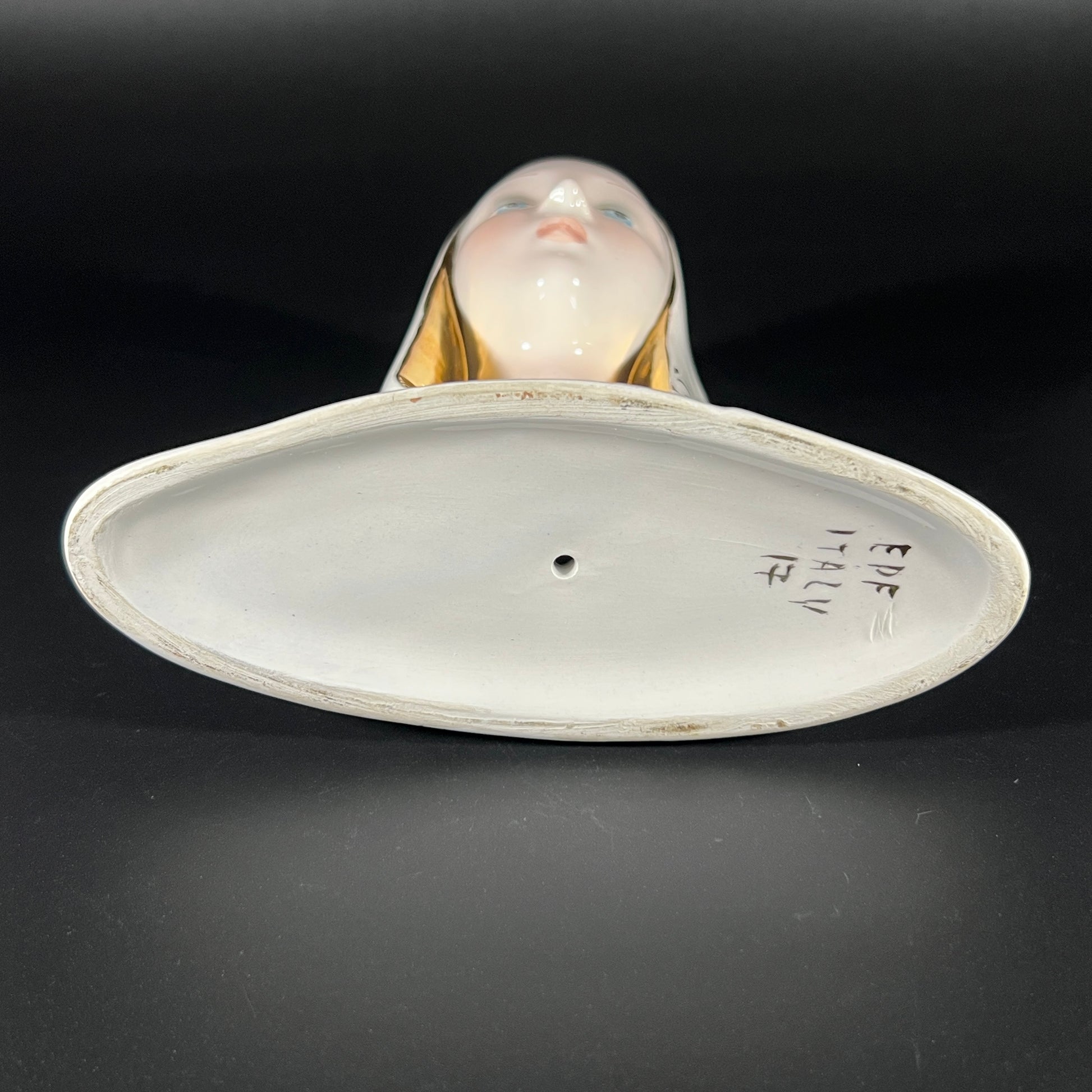 This Madonna design is rare, as most of his pieces in this style feature a tilted head. Pattarino retired in 1966 after a flood destroyed much of his studio's work.