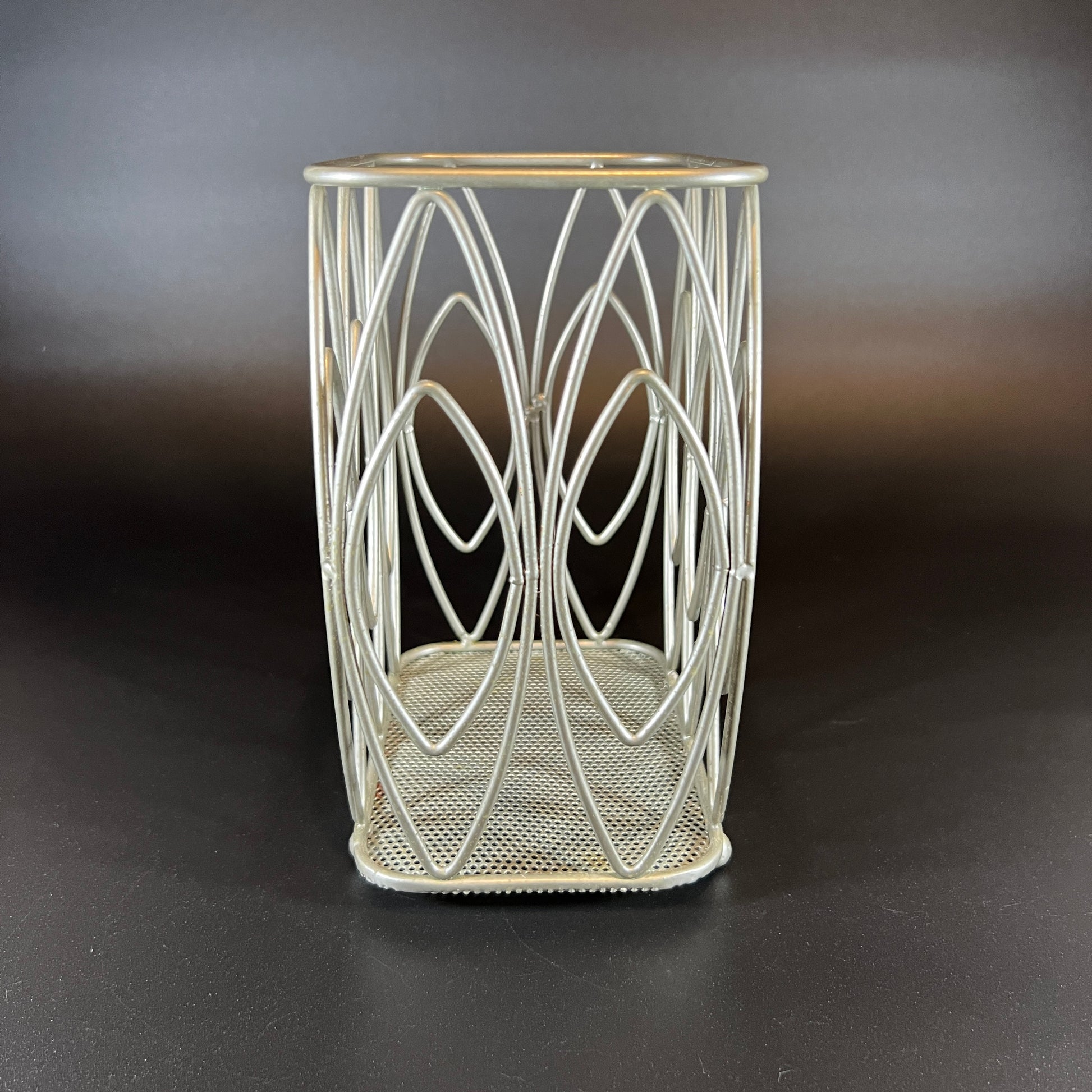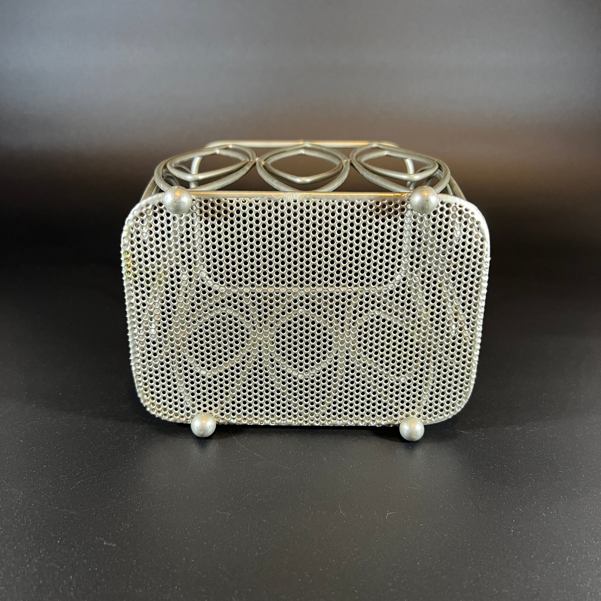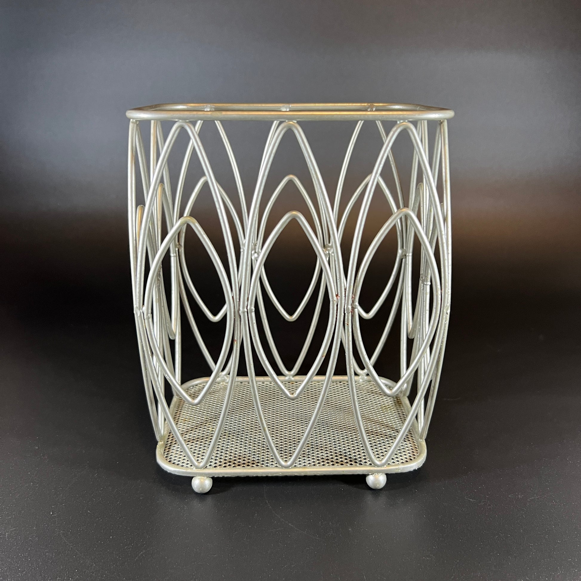This vintage Mid-Century Modern utensil drying rack is a charming and functional piece that captures the essence of 1950s design. With its clean lines and minimalist aesthetic, it adds a retro touch to any kitchen or dining space. The rack is in good vintage condition, with some gentle wear that’s consistent with its age, adding character and history to the piece. Measurements: Approximately 6" W x 7.5" H x 4" D. A lovely addition to any collection of retro kitchenware or as a decorative statement in a vintage-inspired home.