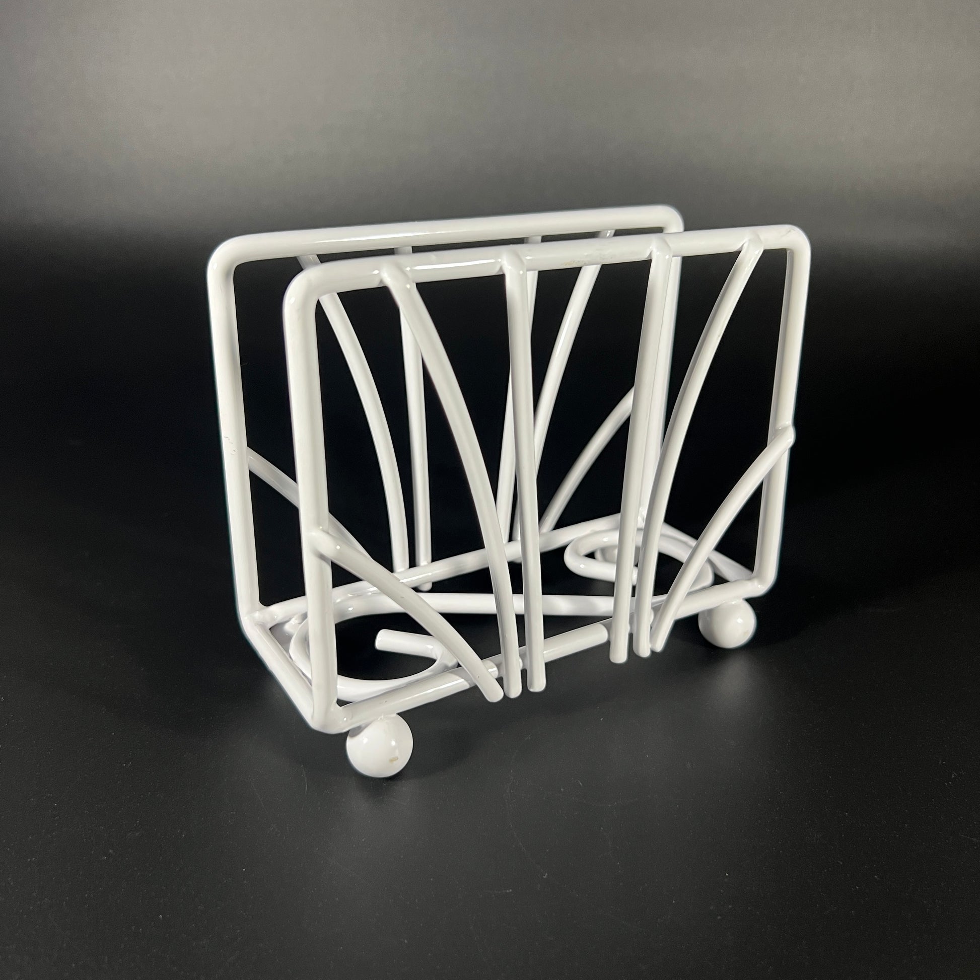 This mid-century modern napkin holder is the perfect addition to any vintage-inspired tablescape. With its sleek design and timeless appeal, it is in excellent vintage condition, showing minimal signs of wear. The piece measures approximately 4.75" in height, 5.75" in width, and 2.75" in depth, making it both functional and stylish for your dining space.