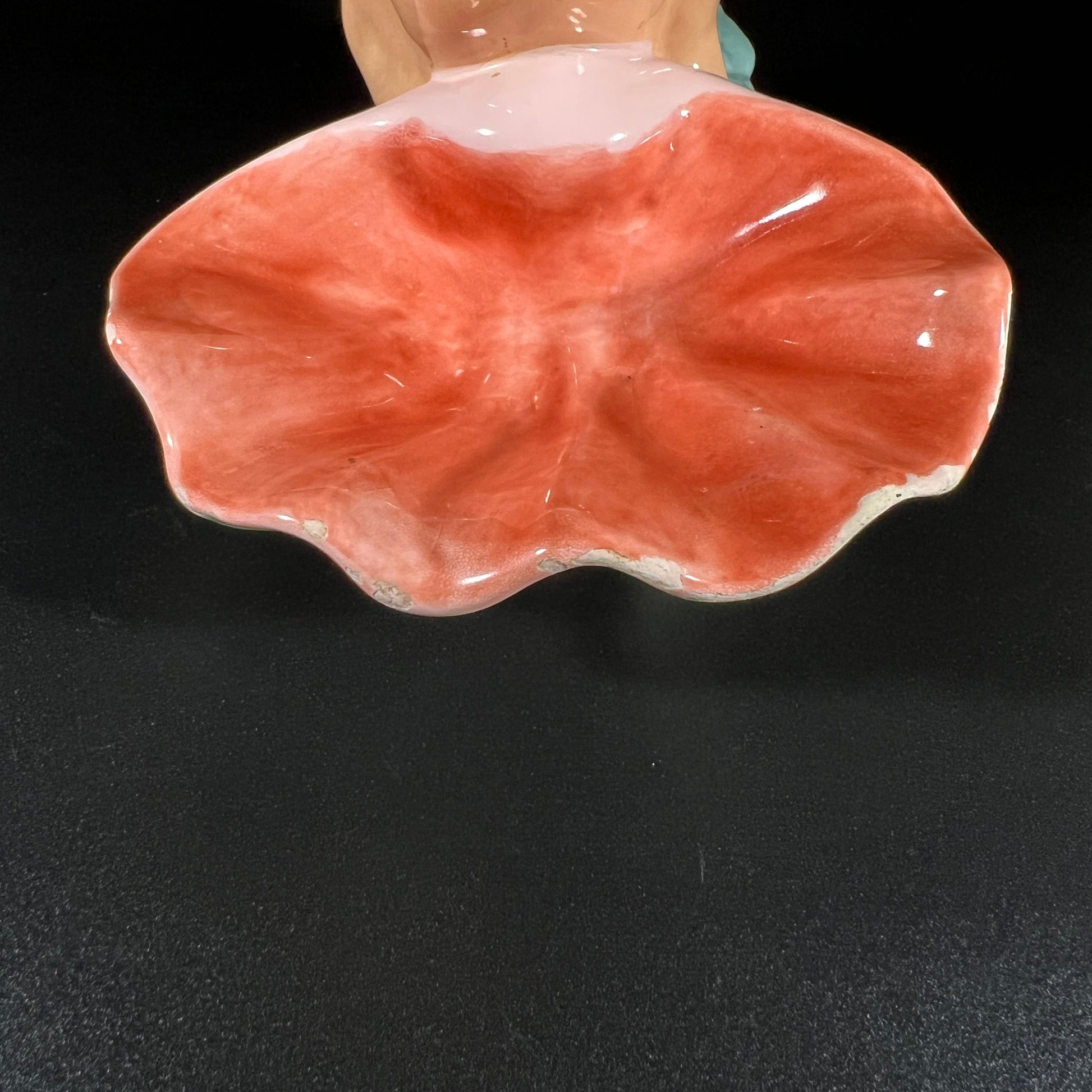 Kitschy Ceramic Mermaid Soap Dish! Likely produced by Freeman-McFarlin in the 1950s, though unmarked, this charming piece features vibrant hand-painted details—teal tail and a pink clam shell—making it a rare and colorful variation of their signature mermaids. In good vintage condition, with typical age-related crazing and some wear on the front of the clam shell. The vibrant glaze and colors remain striking. Please refer to the photos for more details. It measures 8" high, 5" wide, and 8.5" deep, making it a delightful addition to any collection of vintage ceramics or mermaid-themed decor.