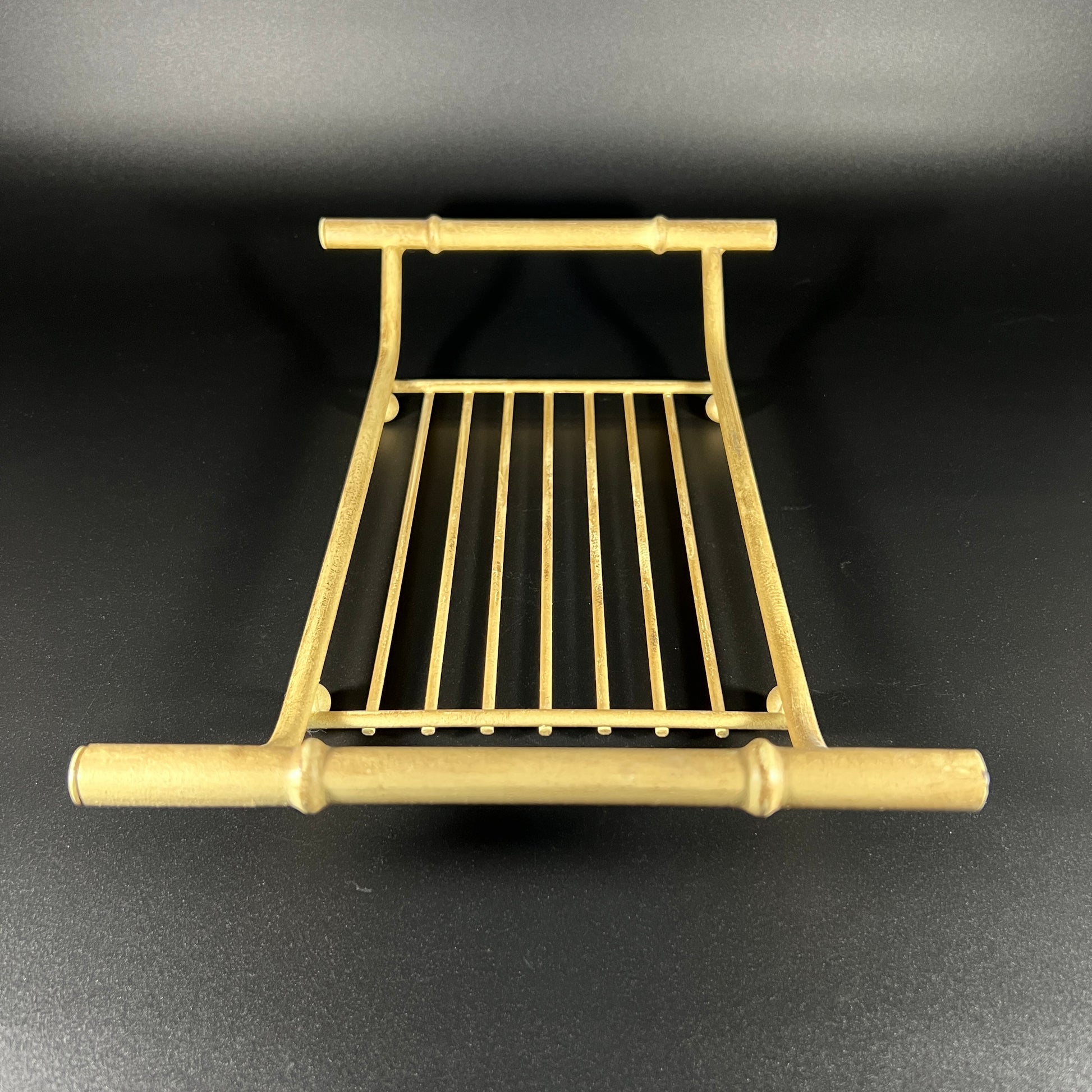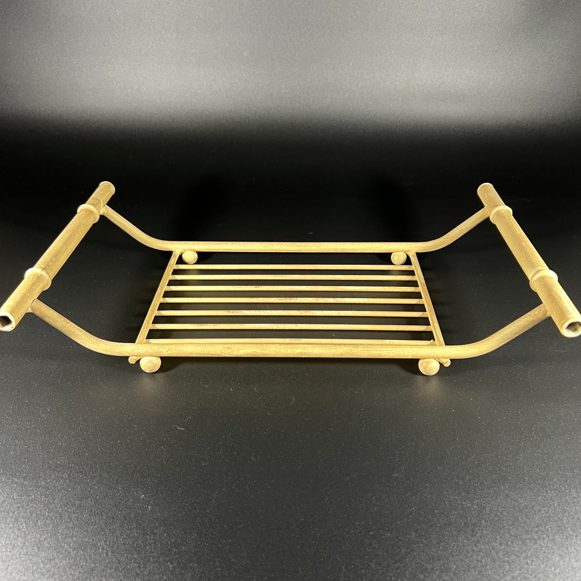 This charming rack features a metal frame with a bamboo-inspired design, offering both functionality and style. It could be used for drying items or as a holder for casseroles or other kitchenware. Measures 13.25" W x 2.75" H x 8" D.