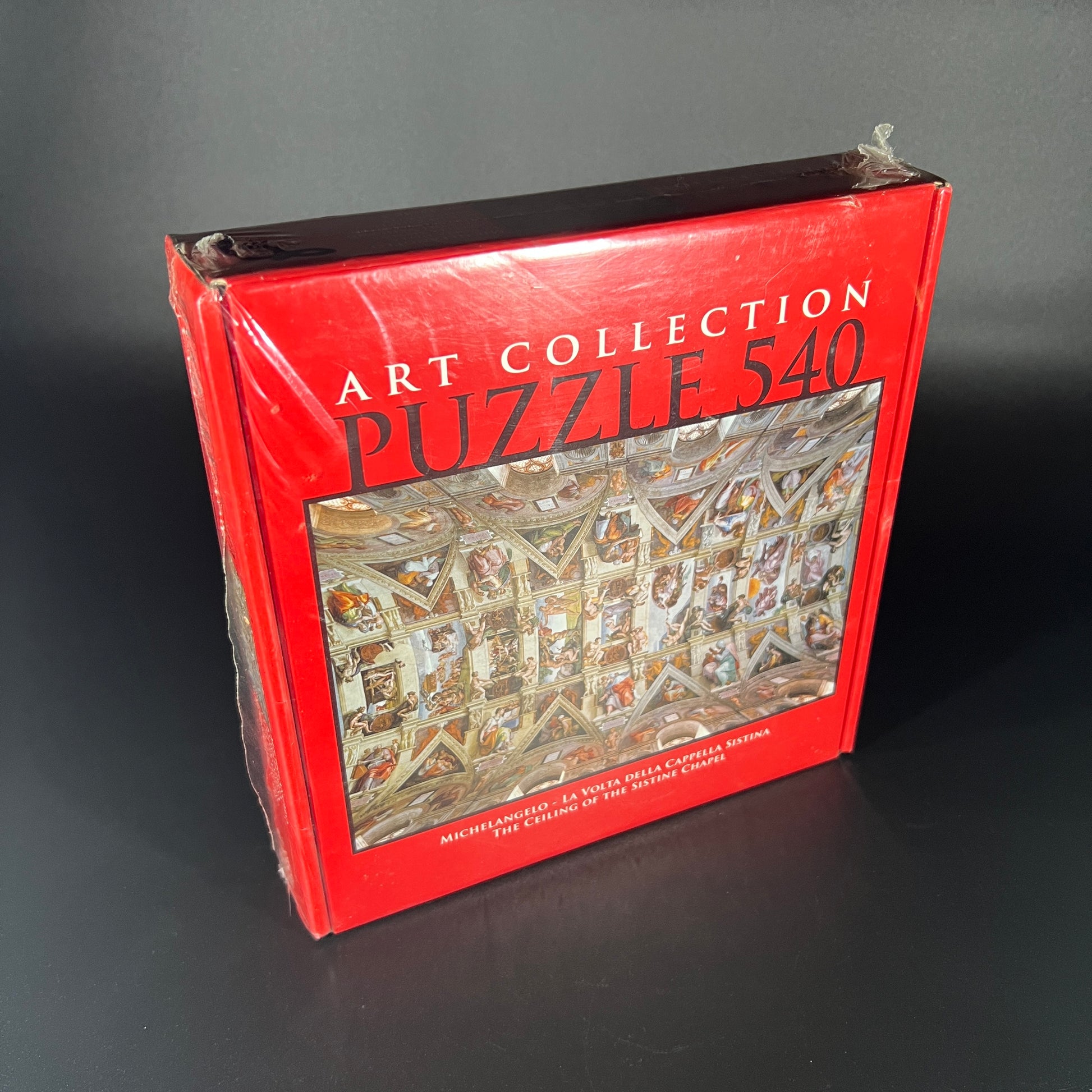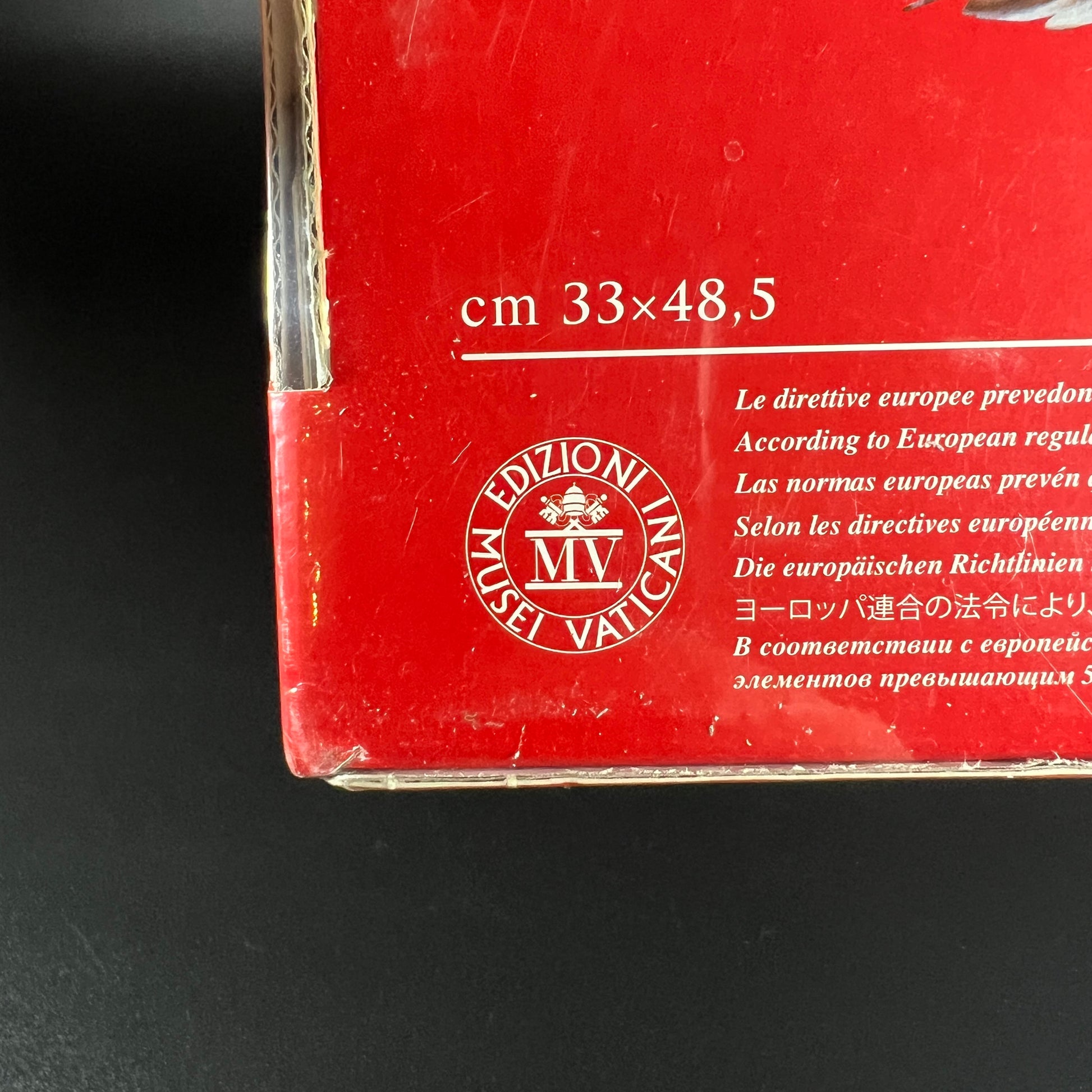 Experience the magnificence of Michelangelo’s masterpiece with this 540-piece puzzle. Made in Italy and sold in the Vatican Gift Shop, this puzzle beautifully captures the intricate details of the Sistine Chapel’s iconic ceiling. Ideal for puzzle enthusiasts and art lovers, it promises hours of engaging enjoyment. The puzzle is in excellent preowned condition, still sealed in its original plastic wrap and unopened. The box measures 8.5" high, 8.5" wide, and 2" deep.
