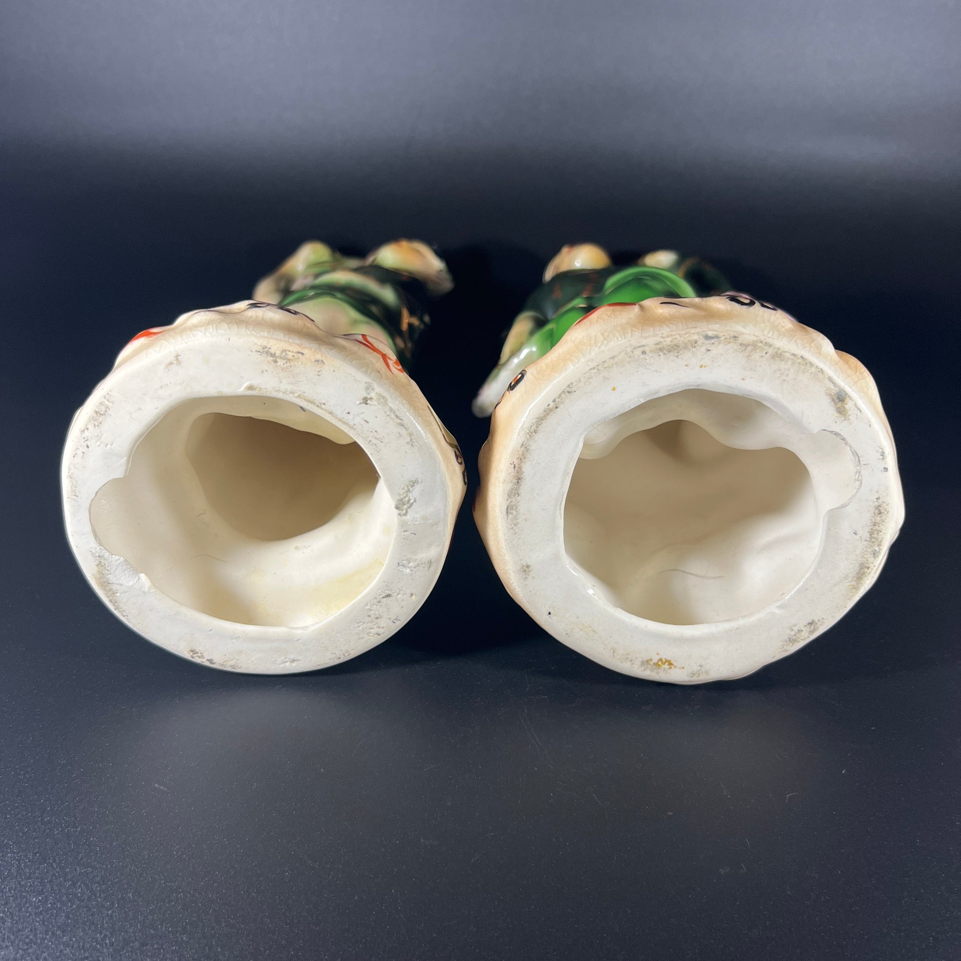 This vintage Asian dancer figurine set is beautifully painted in a serene jade green color. In good vintage condition, they show some wear consistent with age, adding character to their graceful design. Please review the photos for further details. The woman figurine measures approximately 12.5" H x 4.5" W x 4.5" D, while the man stands at 13" H x 6" W x 4.5" D. A charming addition to any collection of kitsch, Mid-century modern or Asian-inspired décor!
