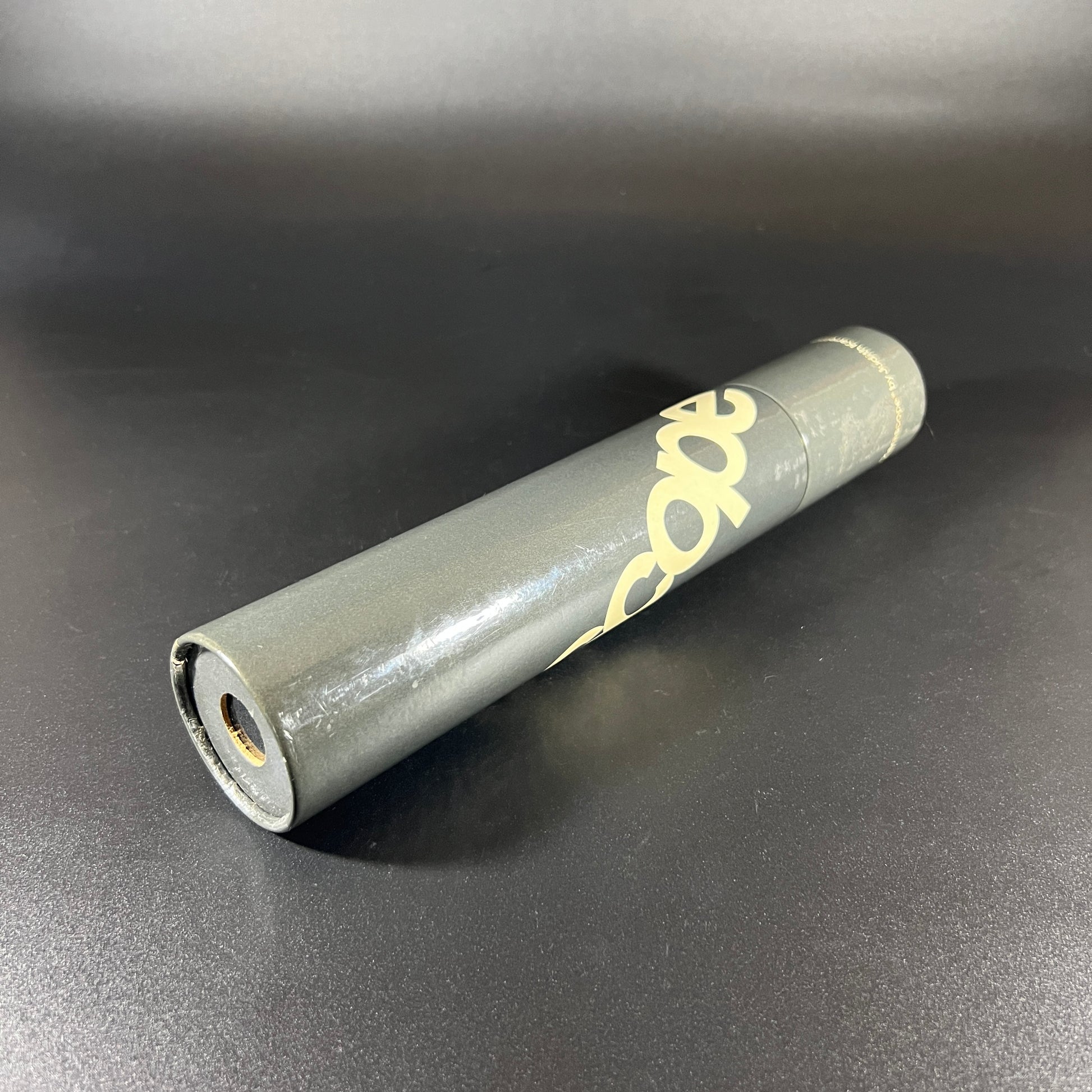 Dimensions of the kaleidoscope are approx 11 1/4 by 2 1/16 inches in diameter. Exterior is a cardboard tube.