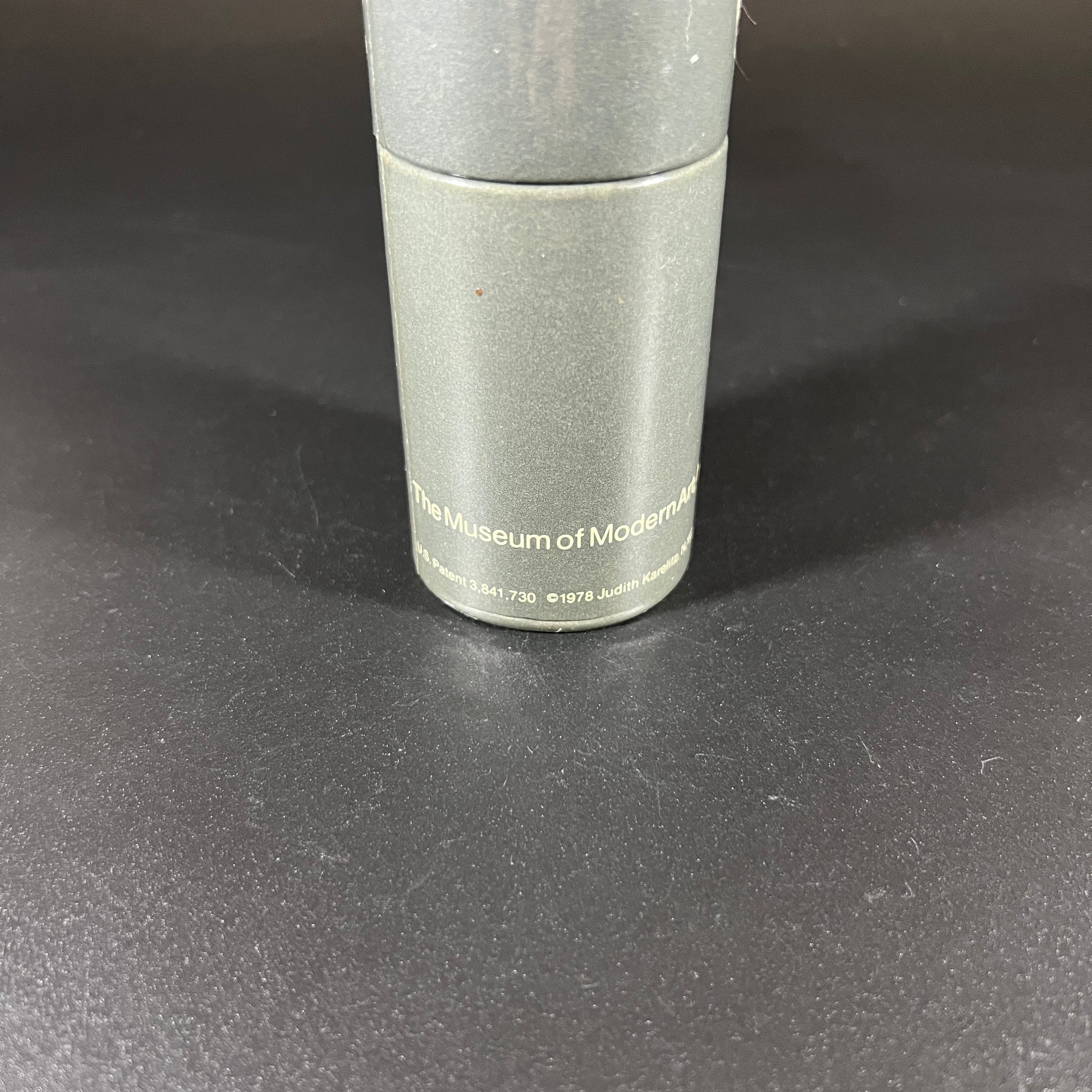 Hold the Karascope toward the light, rotate the base, and the image changes. A twist of the eyepiece alters the colors of the image and causes the pattern to Swirl to or from the eye. The Spectrum also shifts as the karascope is pointed toward different light sources. Copyright Judith Karelitz 1978 N. Y. C. The kaleidoscope itself says the Museum of Modern Art, New York. Karascope TM By Judith Karelitz patent 3,841730 Copyright 1978 Made in U.S.A.