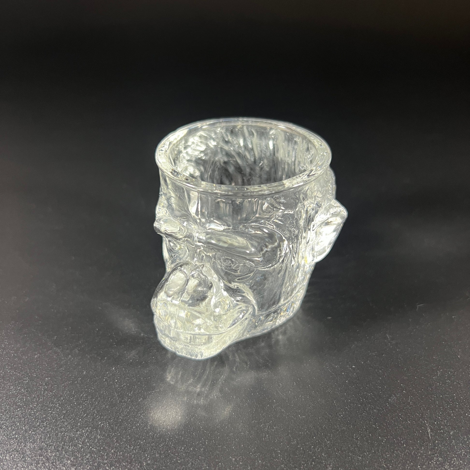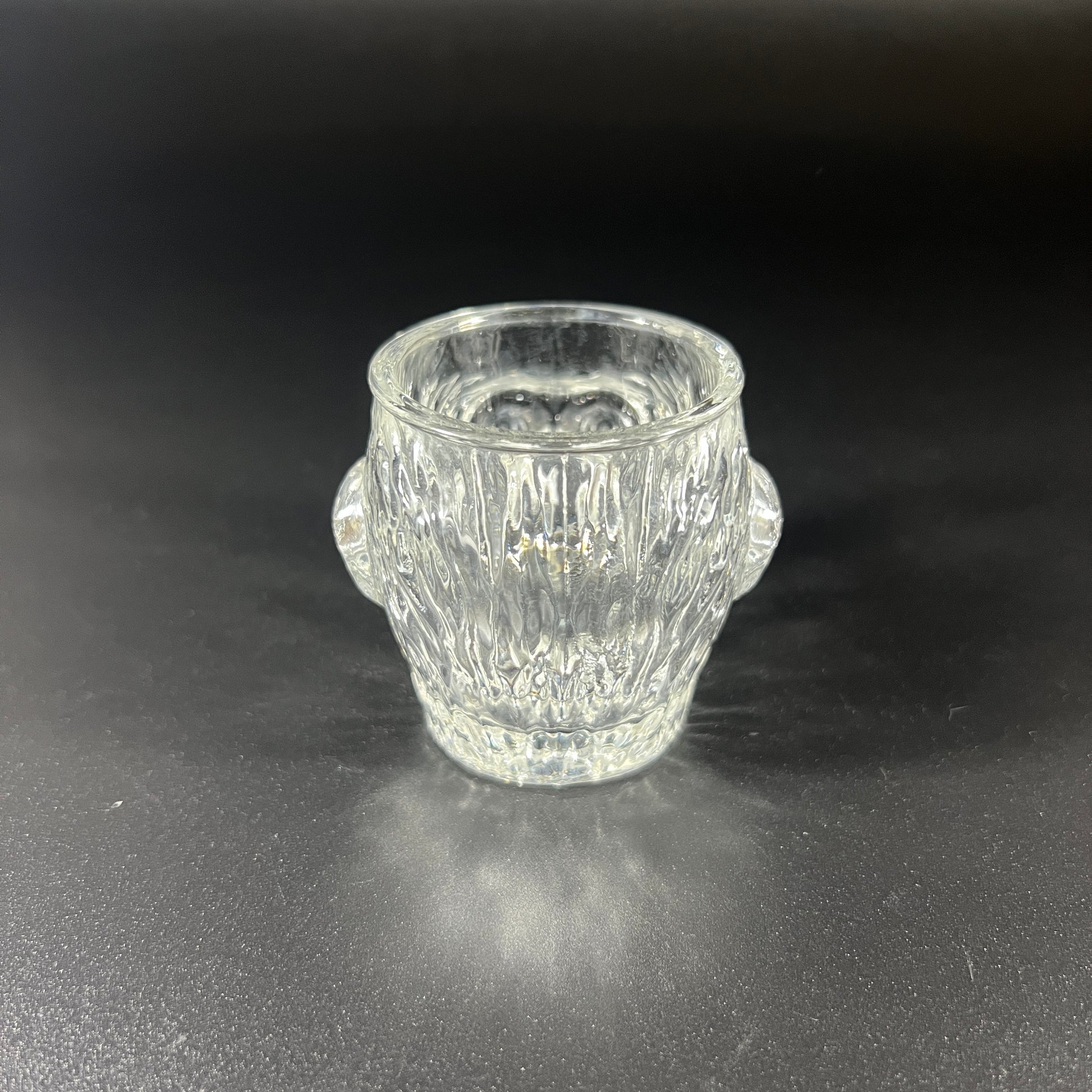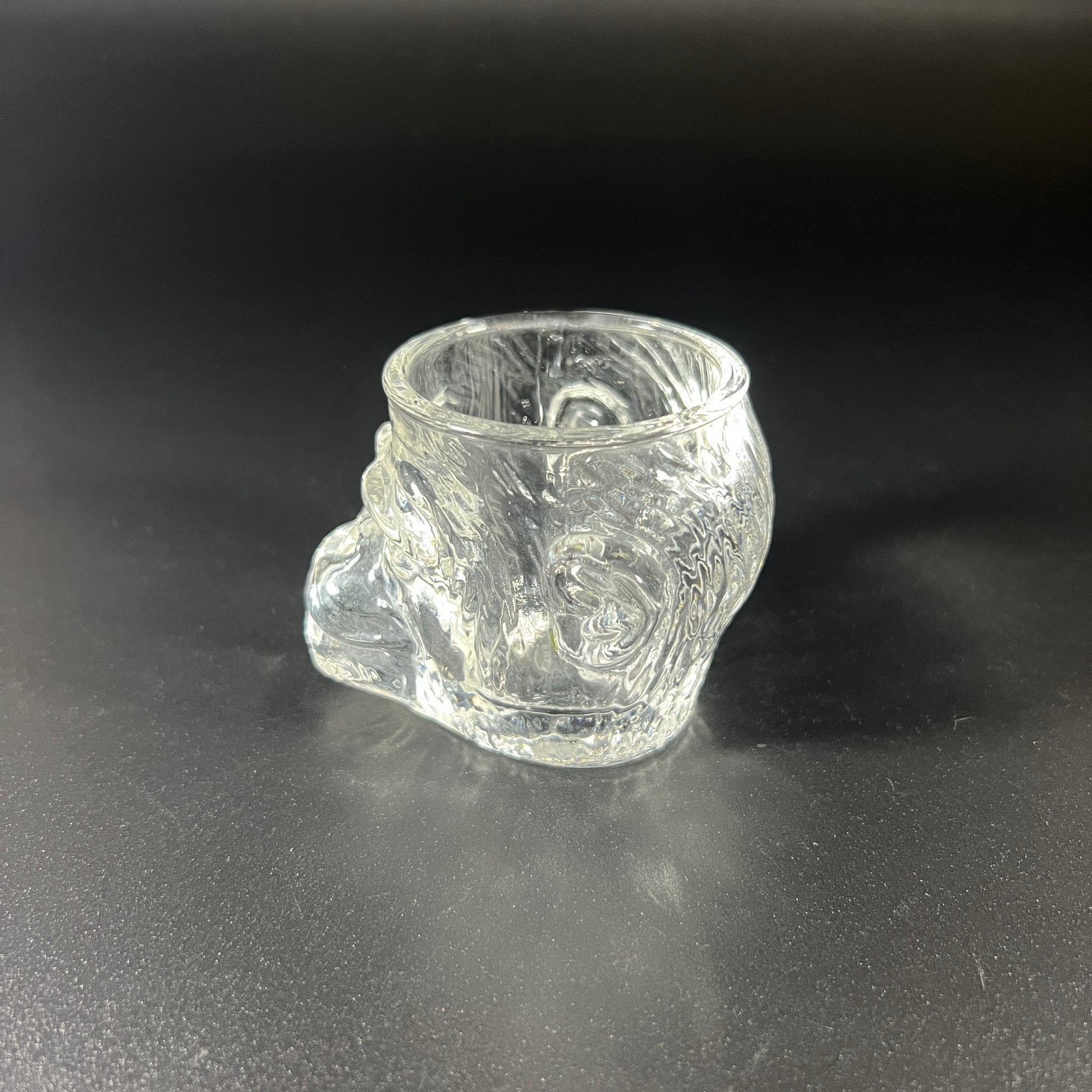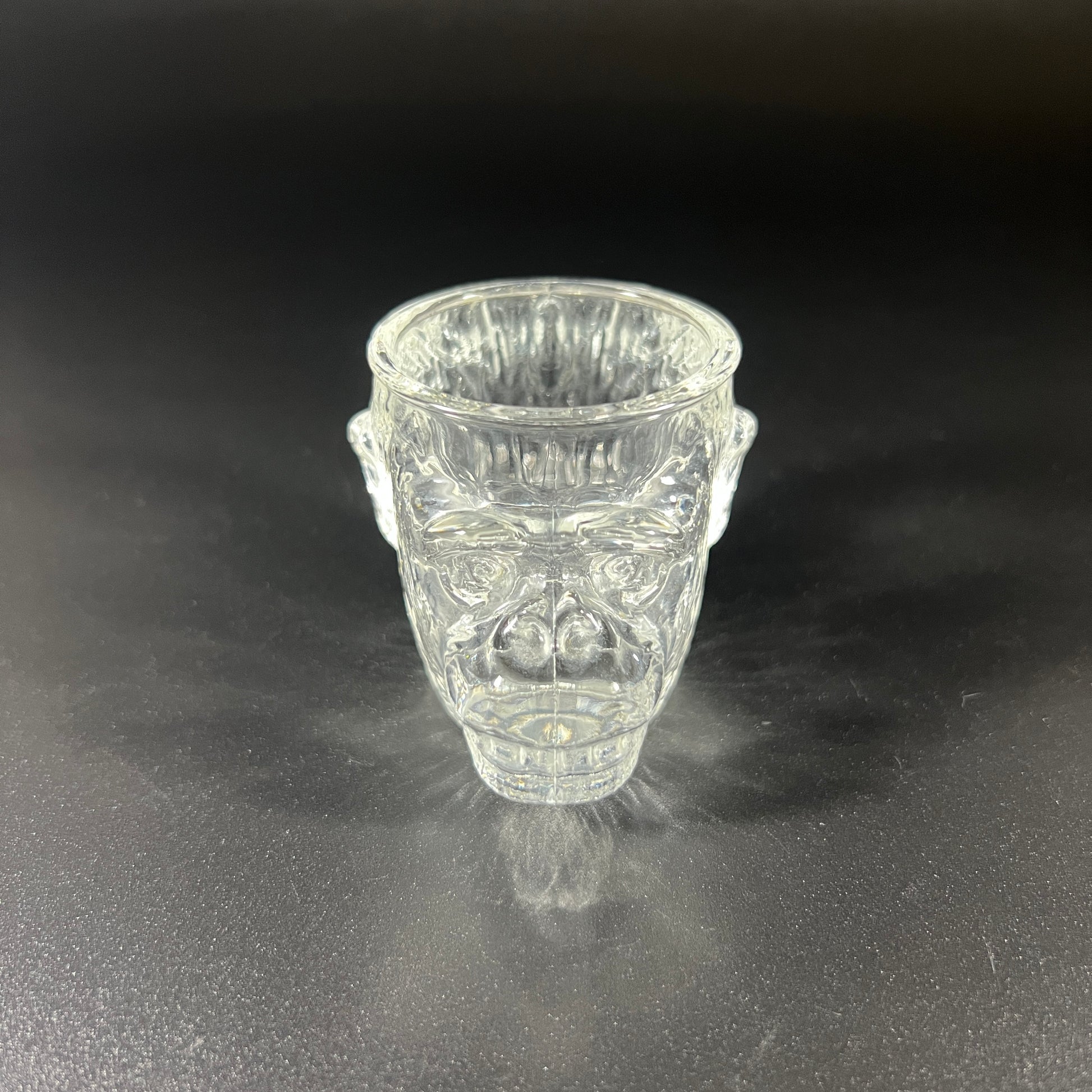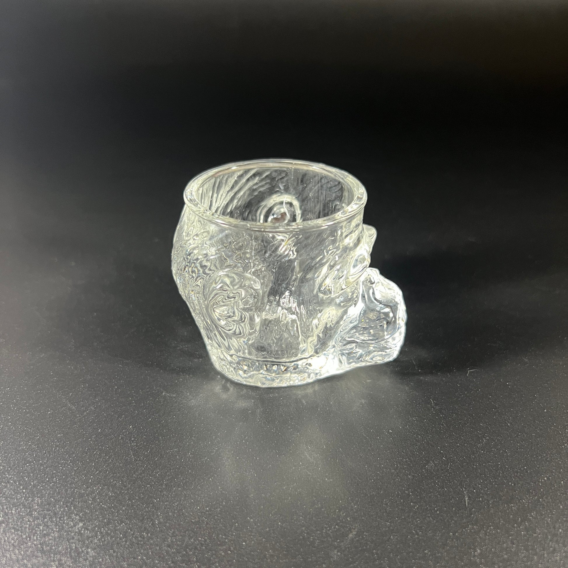 This Monkey Head Vodka shot glass originally came as part of a gift set with a larger Monkey Head decanter. In good pre-owned condition, it features the same playful design as the decanter. The shot glass measures approximately 2.25 inches in height, 2.5 inches in width, and 2.75 inches in depth, making it a fun and quirky addition to any barware collection.