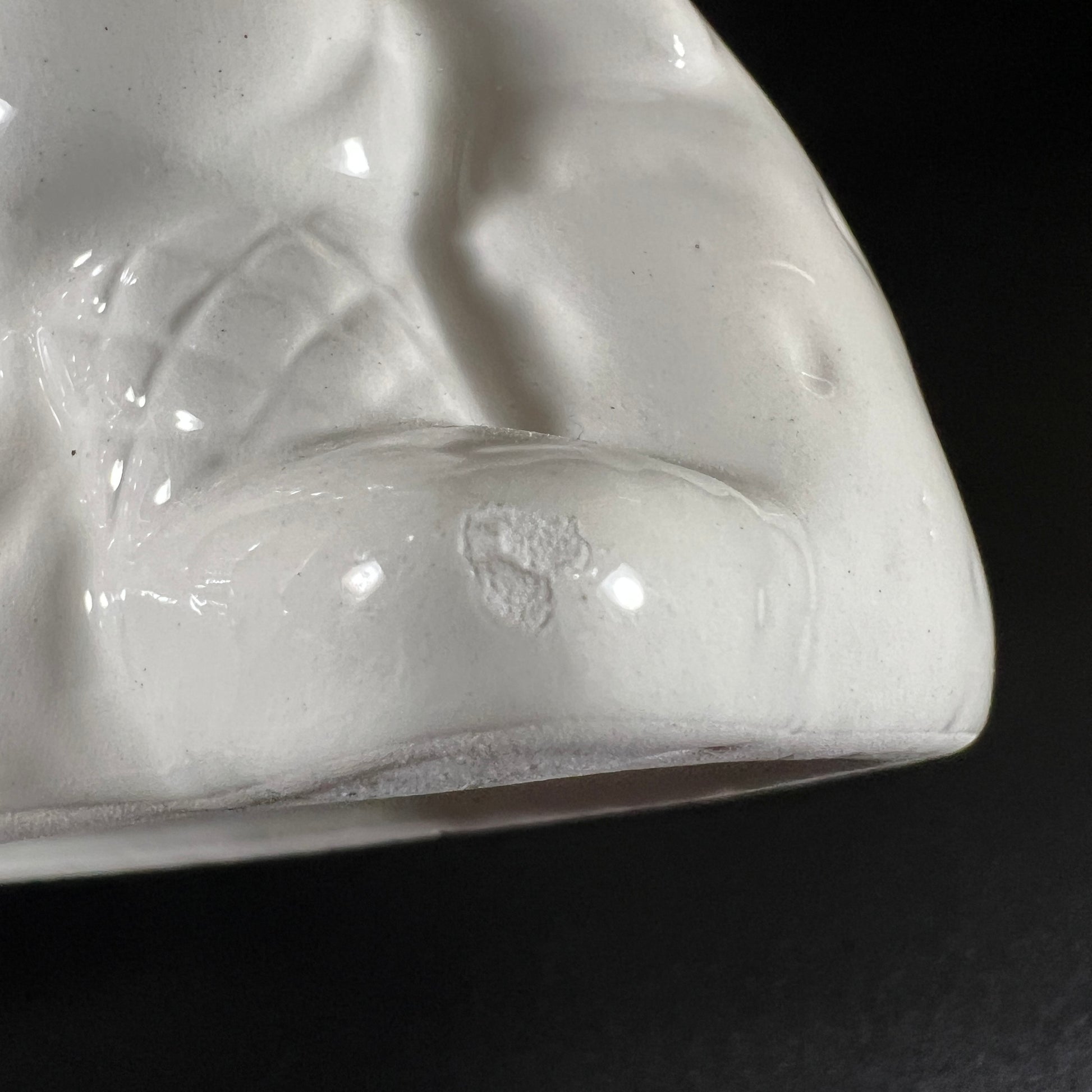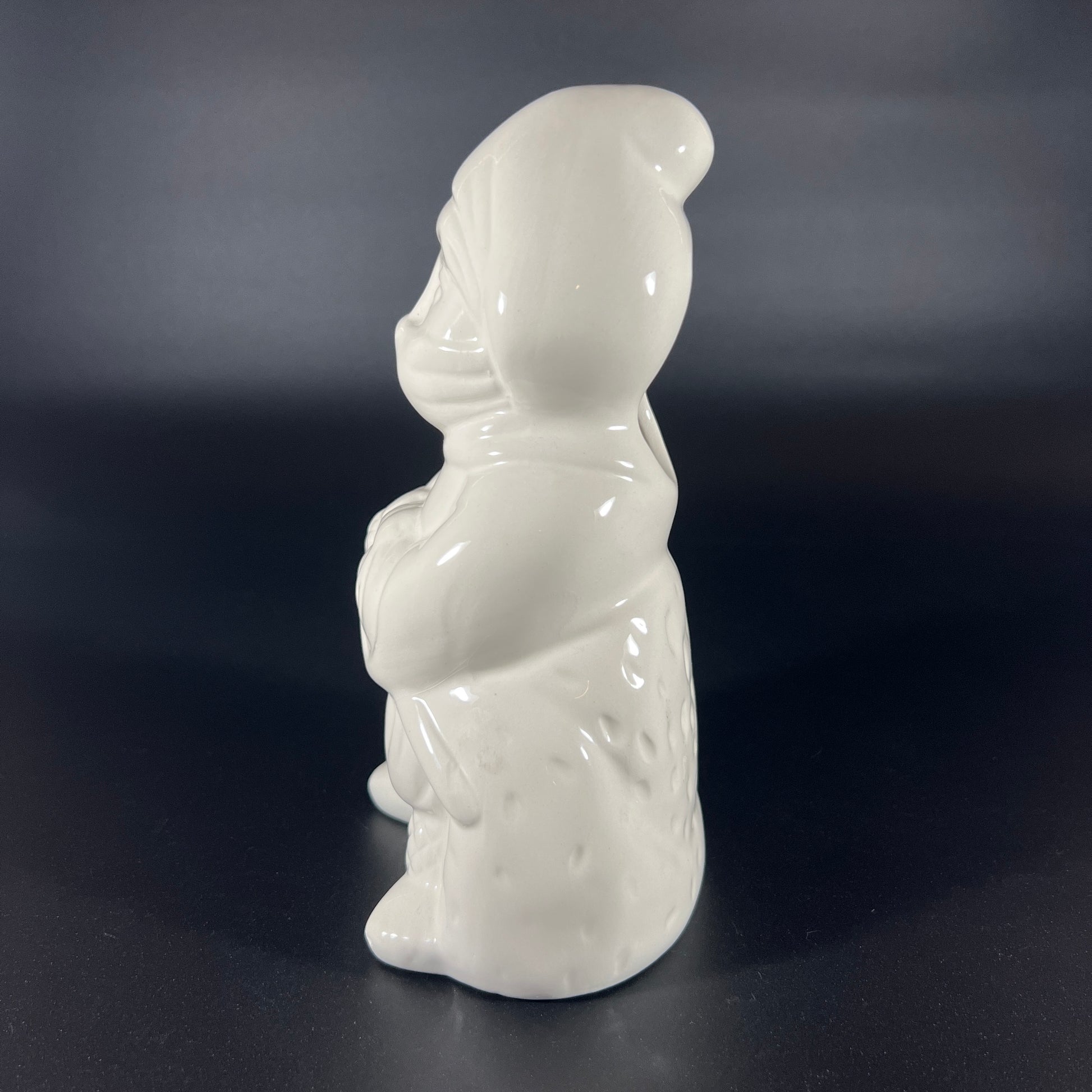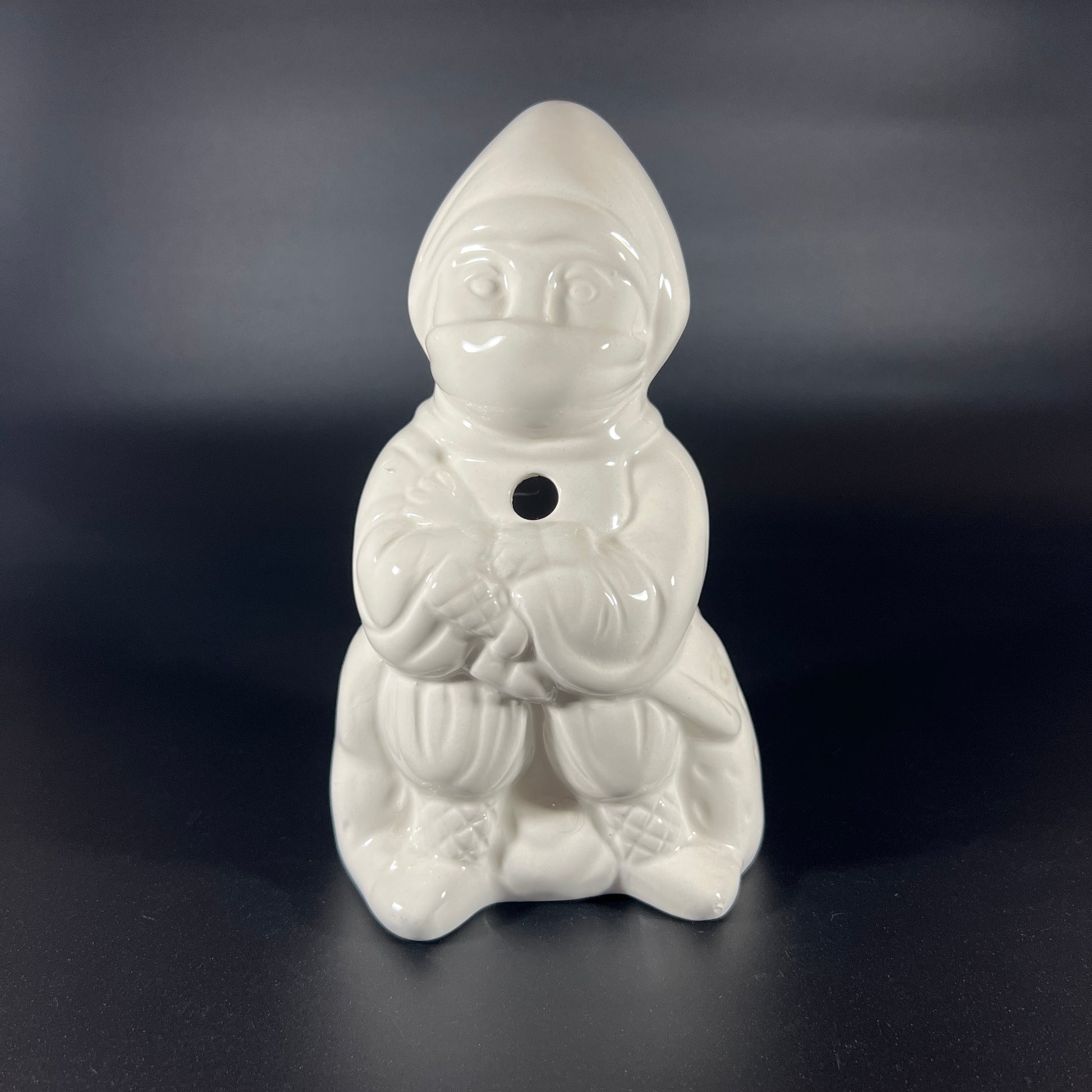 This vintage Ninja Restaurant mug, numbered DW131, features a unique design with a hole in the front for a straw. It is in good vintage condition, with only a tiny chip on the left toe, as shown in the photos. Measuring approximately 7.5" H x 4.5" W x 3.5" D, this mug is a fun and collectible piece with a charming, nostalgic appeal. Please refer to the photos for more details.