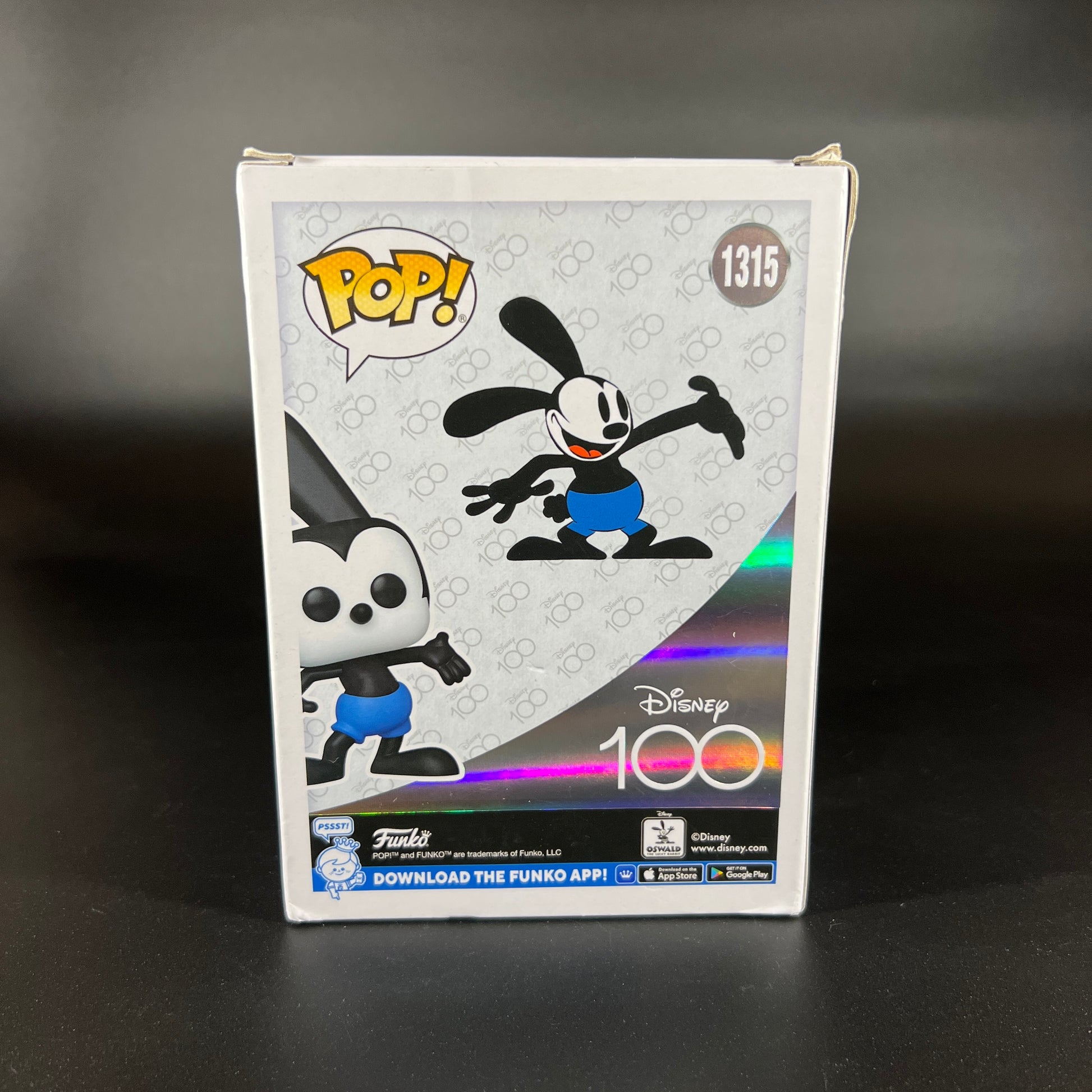Funko Pop! Disney 100 Oswald The Lucky Rabbit #1315 NIB. This item is brand new and unopened, with minimal wear to the box. Please refer to the photos for more details. Box dimensions: 4.75" W x 6.5" H x 3.5" D.
