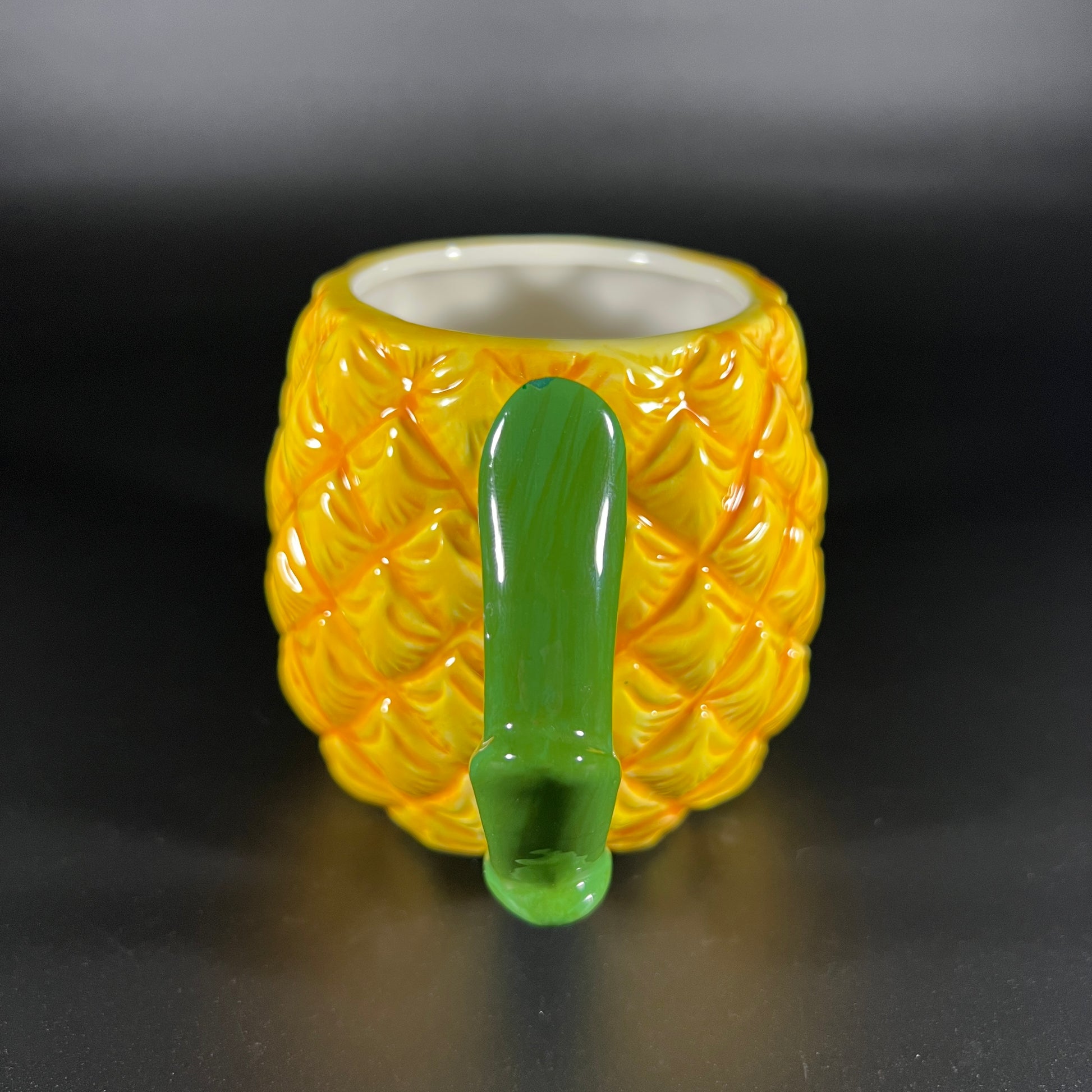 Bright and vibrant 3D textured pineapple mug, featuring a playful and eye-catching design. In good pre-owned condition with wear consistent with age. Please refer to the photos for more details. The mug measures approximately 4" H x 6" W (including the handle) x 4.25" D.