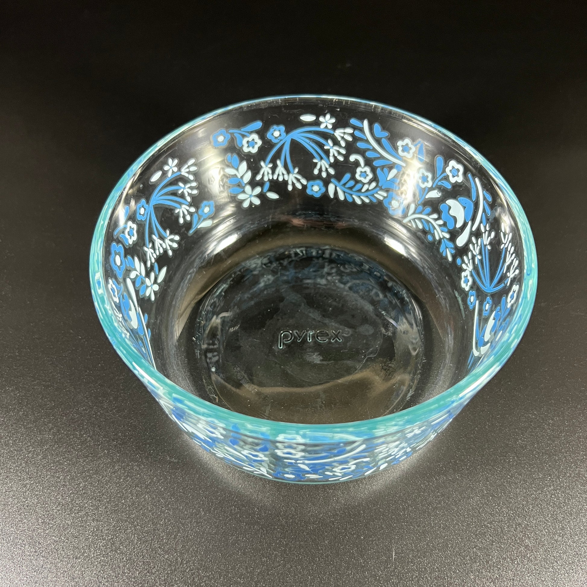 This listing features a clear Pyrex bowl adorned with a charming blue flower design. In very good condition, it shows no chips or cracks, making it a rare and sought-after piece. Don’t miss the opportunity to add this vintage gem to your collection! The bowl measures 6" in diameter at the opening and stands 3" tall.