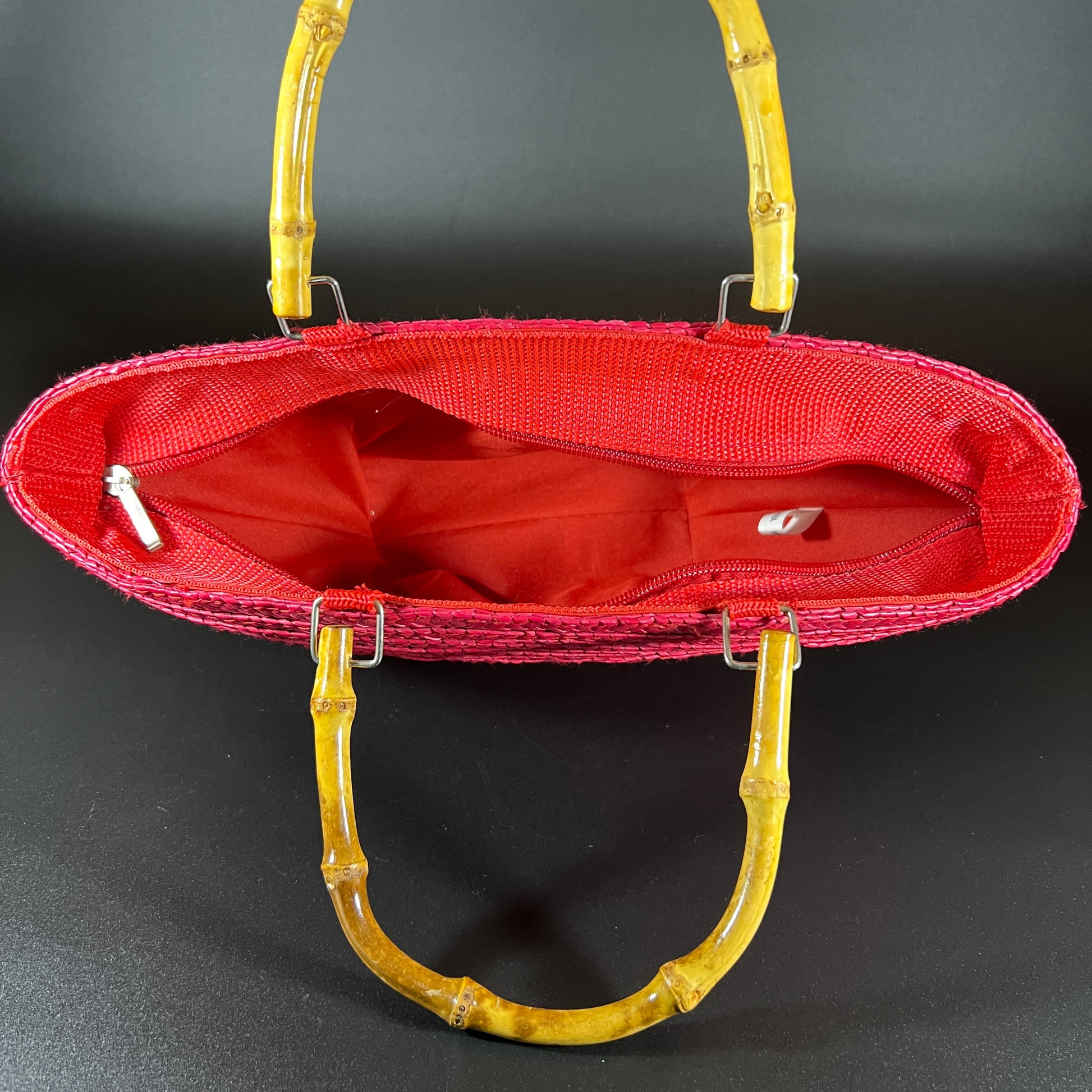 Red Woven Purse with Bamboo Handles