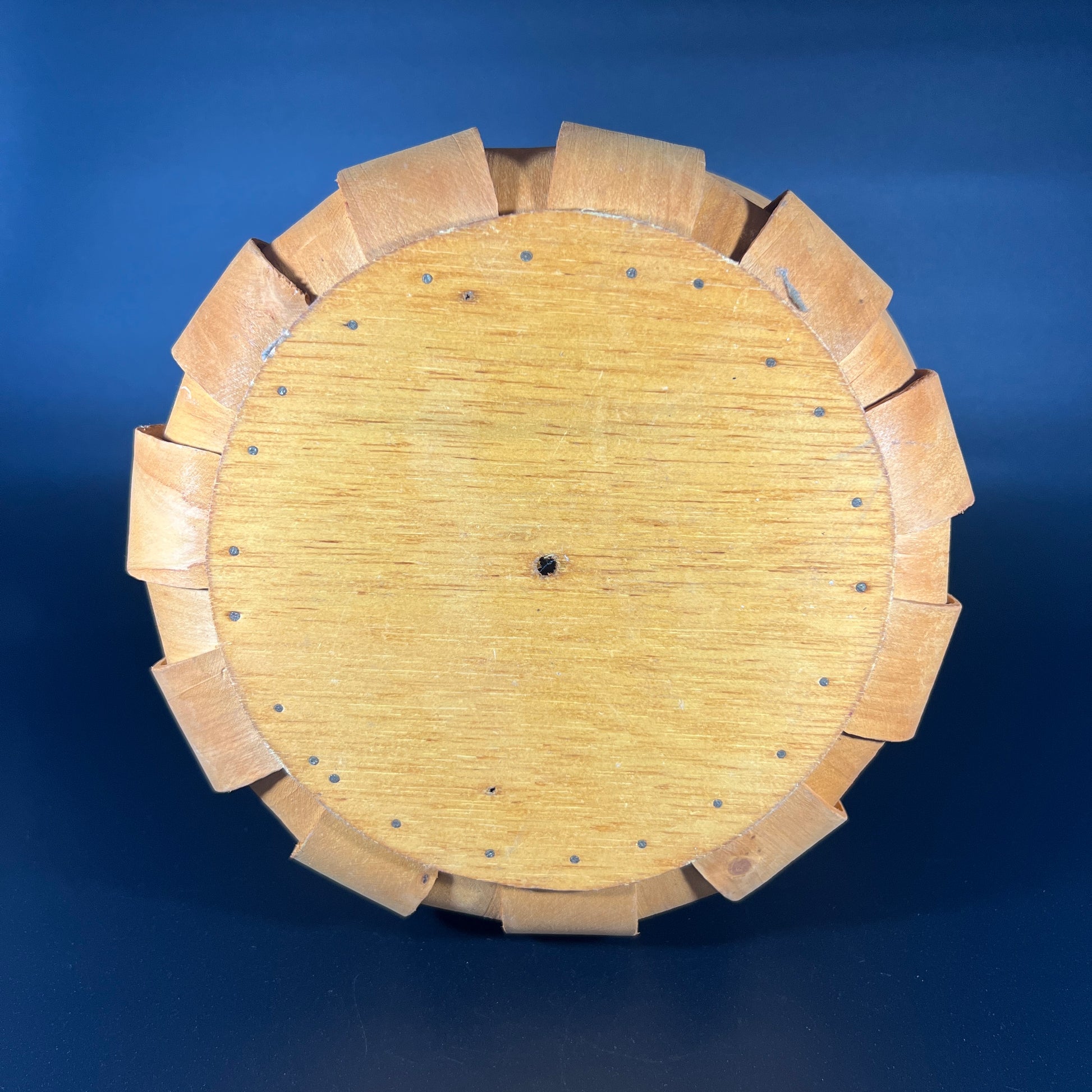This vintage round basket is in great condition, showcasing its timeless charm. It measures approximately 5.5 inches in height and 9.5 inches in diameter (including the handle), making it a versatile piece for both storage and decoration. A wonderful addition to any vintage collection or home decor.