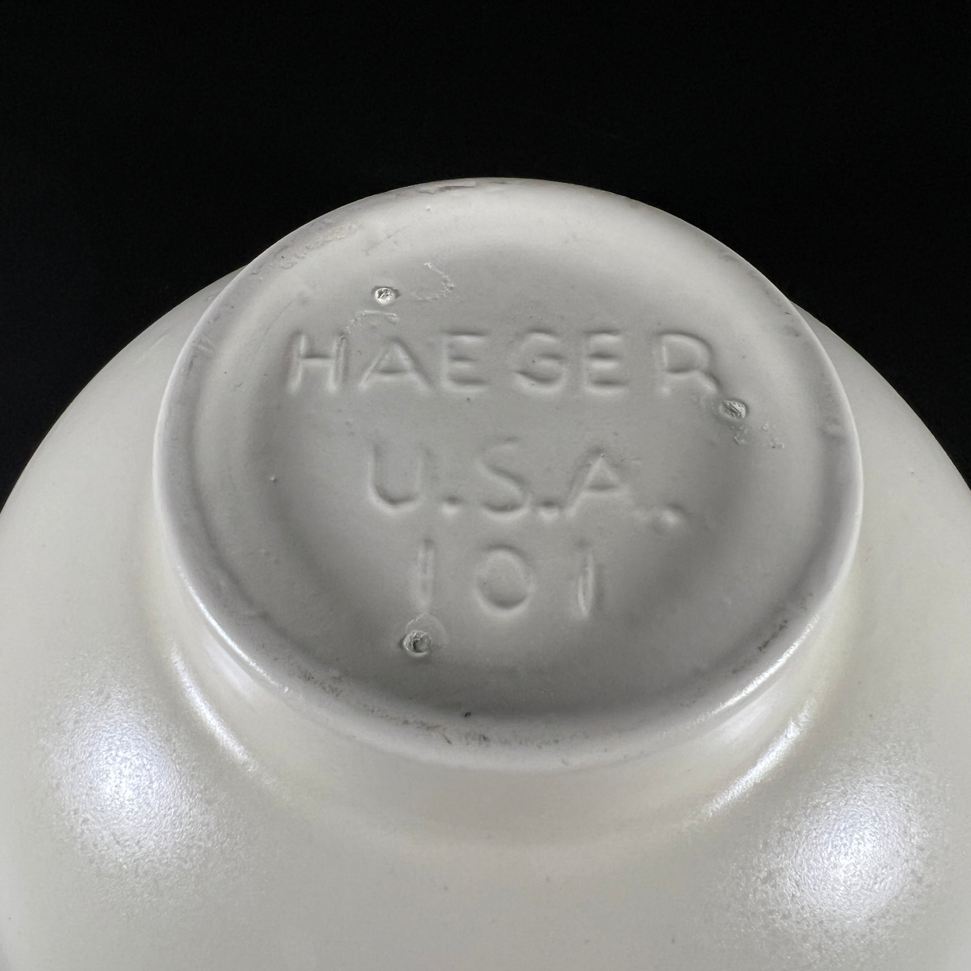 This vintage Haeger ivory-colored ceramic bowl, marked 101 on the base, makes a beautiful display piece. It’s perfect for a shallow floral arrangement or as a decorative catch-all for trinkets. In good vintage condition, it shows typical wear consistent with age. Please refer to the photos for more details. The bowl measures approximately 3.5" H x 8" in diameter.