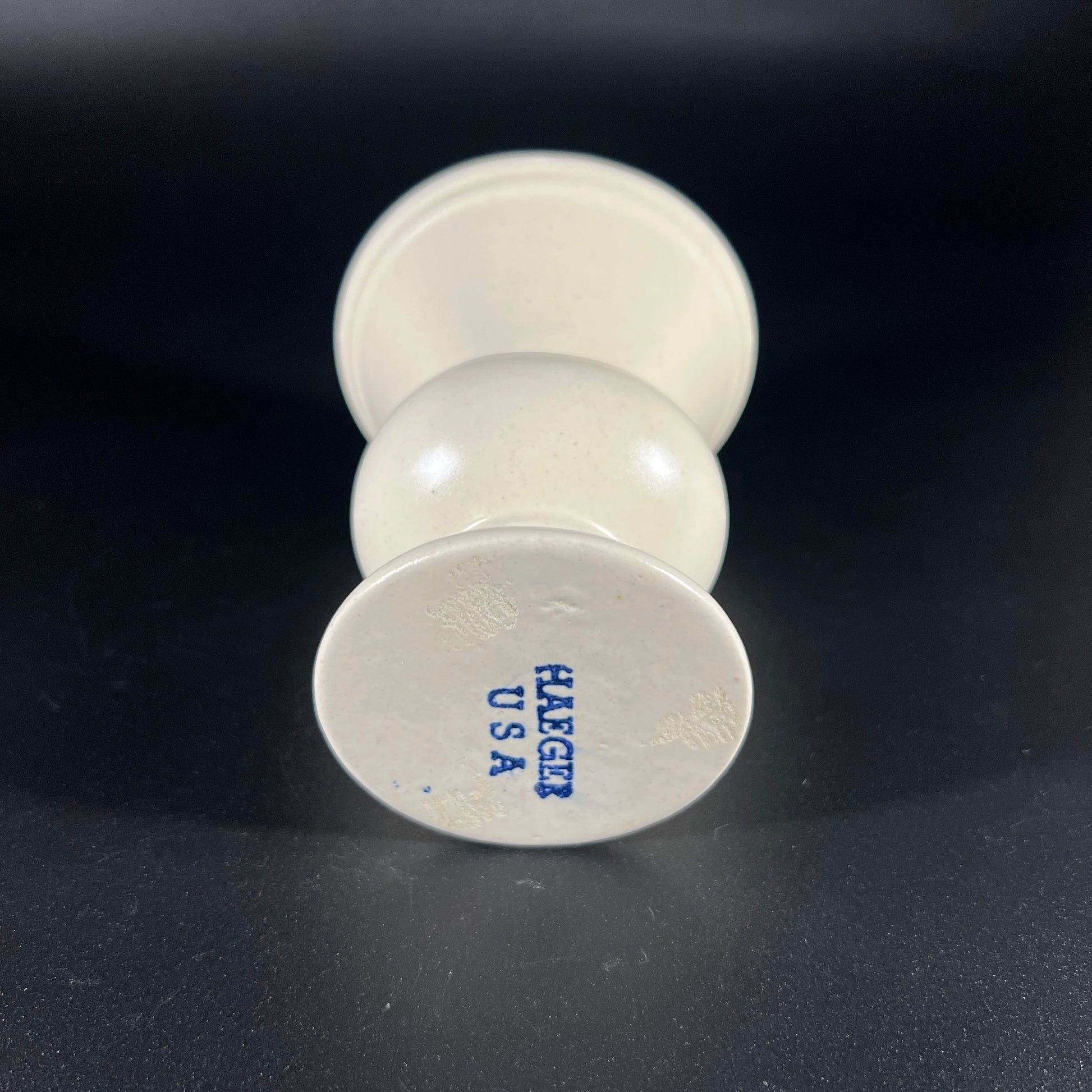 This charming small Haeger ivory colored vase from the 1930s is a beautiful example of vintage craftsmanship. In great condition for its age, it shows only light wear, adding to its character and timeless appeal. The elegant design and smooth glaze make it a standout piece for any collection. Please take a closer look at the photos for more details. The vase measures approximately 4.5" H x 3.5" in diameter.