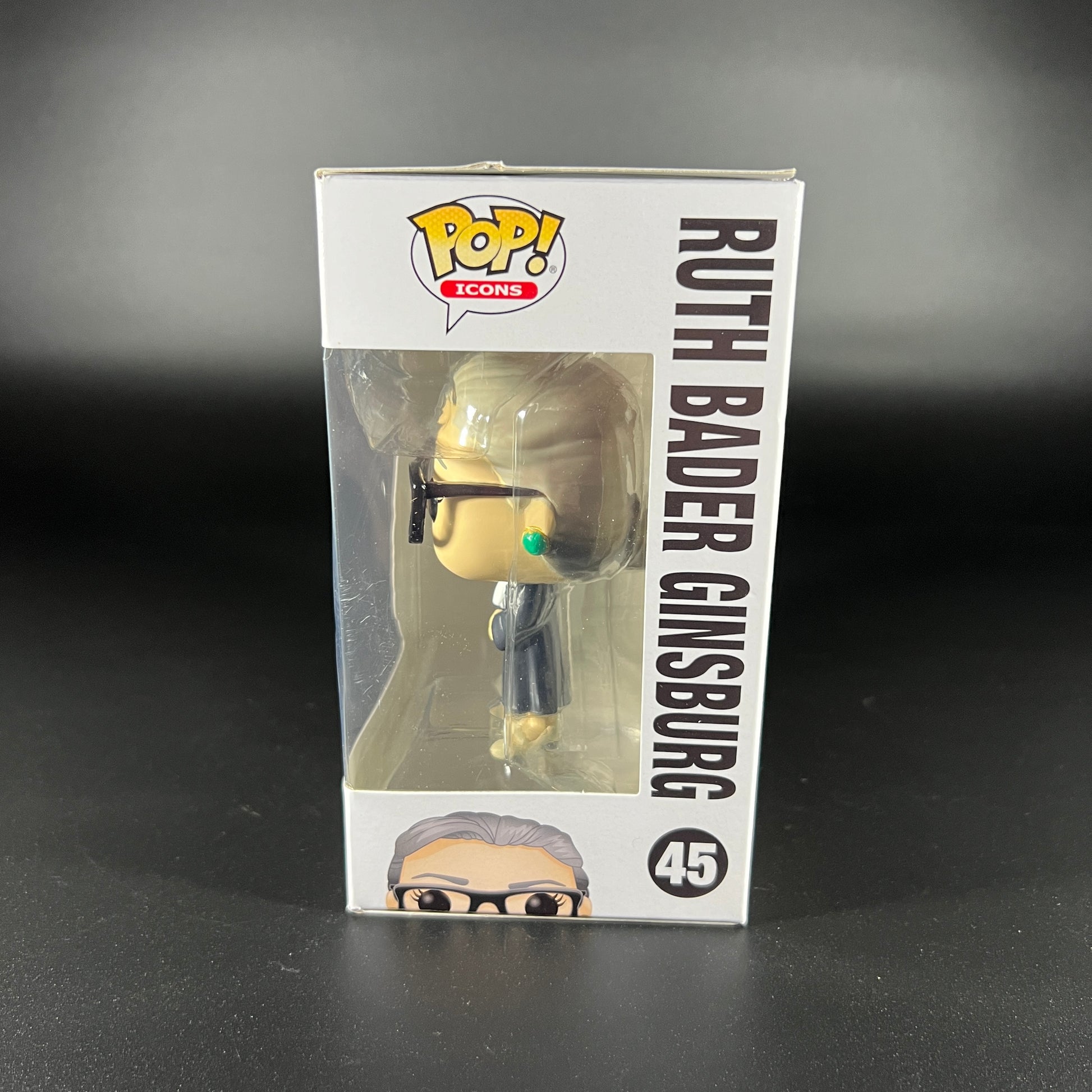 America History Ruth Bader Ginsburg FUNKO Vinyl POP, #45. This rare and out-of-production FUNKO figure features Ruth Bader Ginsburg from the Supreme Court. The item is new in box, and the box is in great condition overall. Box Dimensions: 4.75"W x 6.5"H x 3.5"D