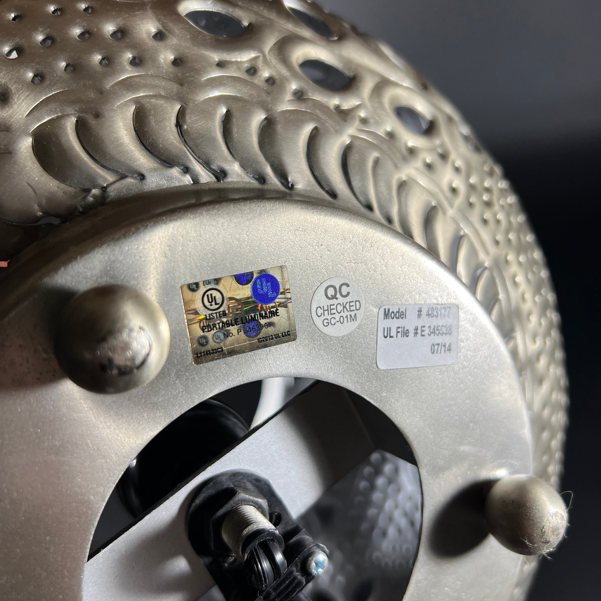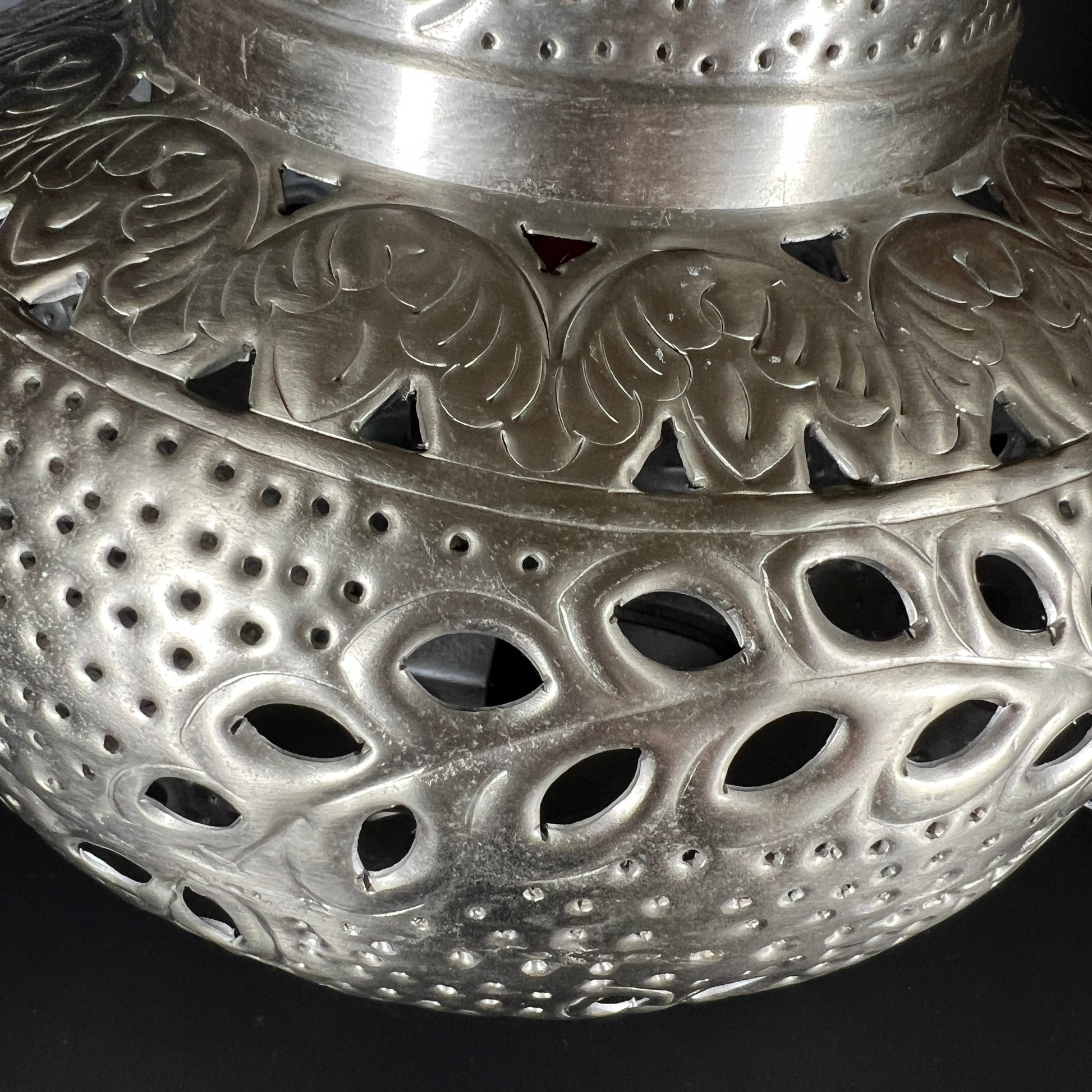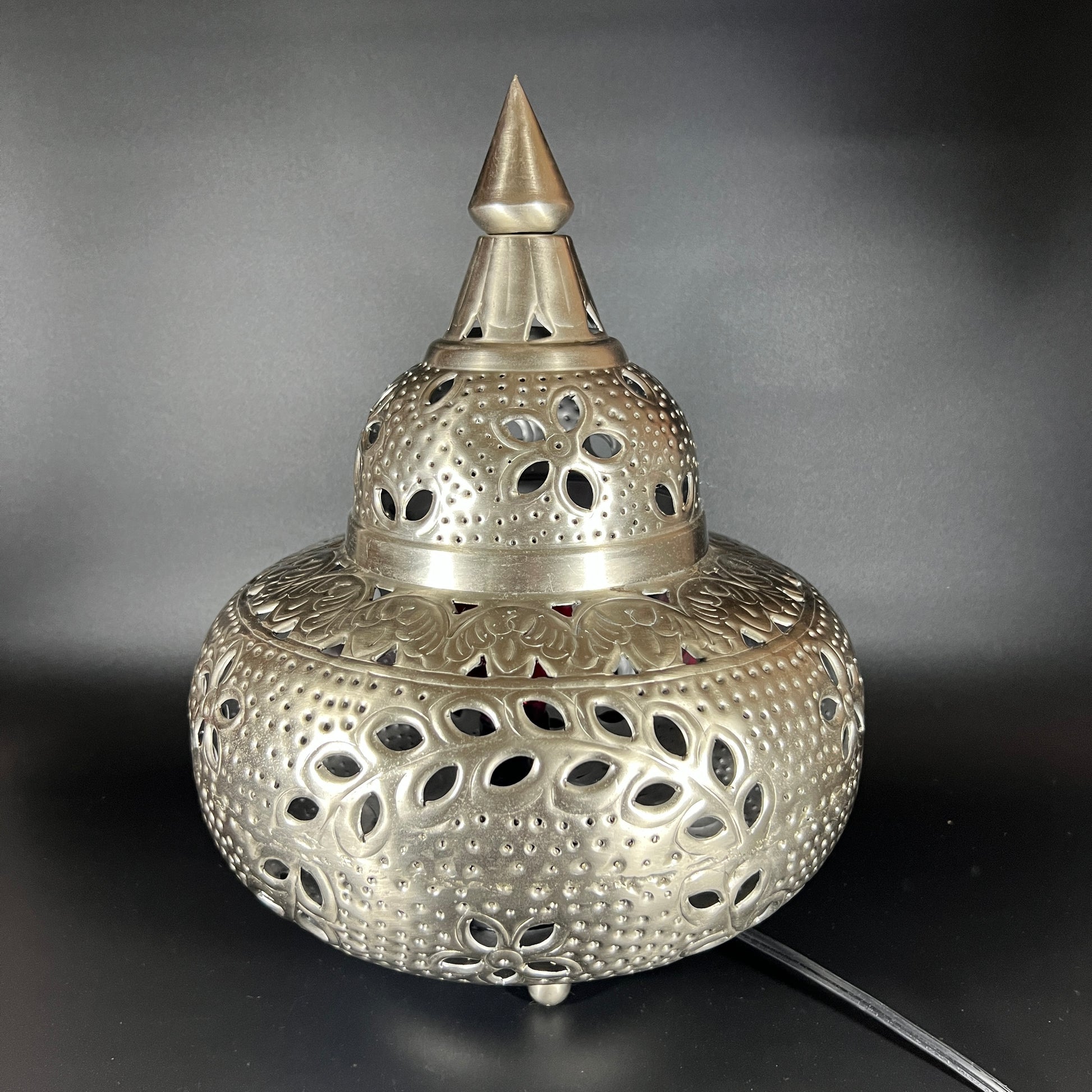Bring a touch of exotic elegance to your home with this beautifully crafted Moroccan metal tabletop lamp. Featuring intricate cut-out patterns that cast mesmerizing shadows when lit, this lamp creates a warm, ambient glow perfect for cozy corners, bohemian spaces, or global-inspired décor.