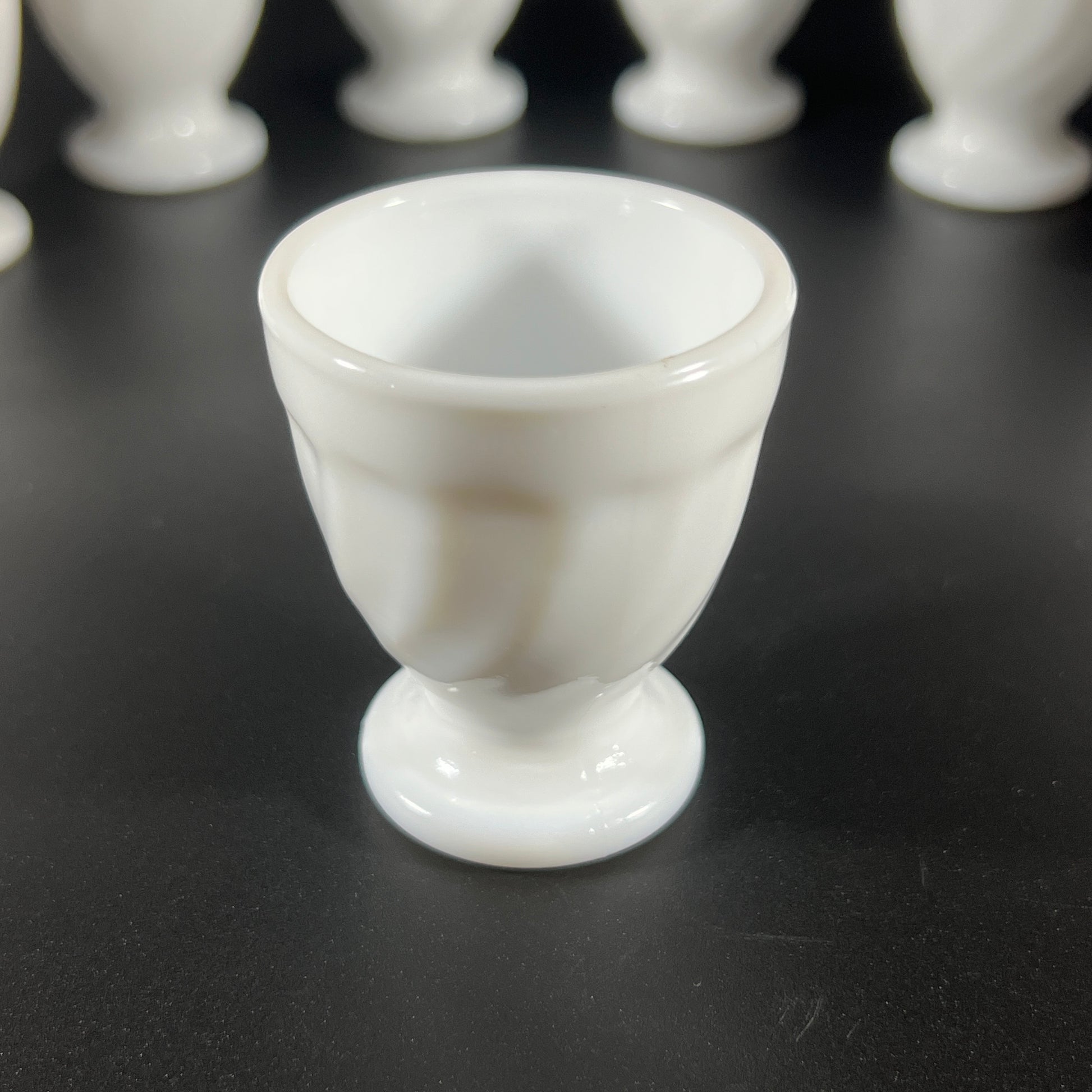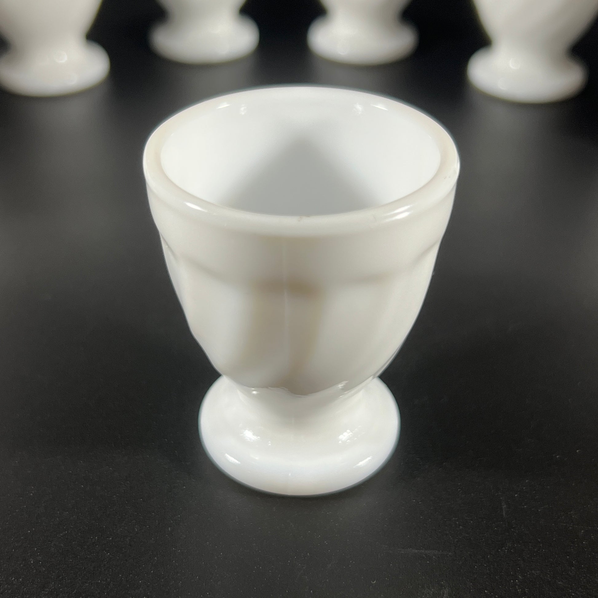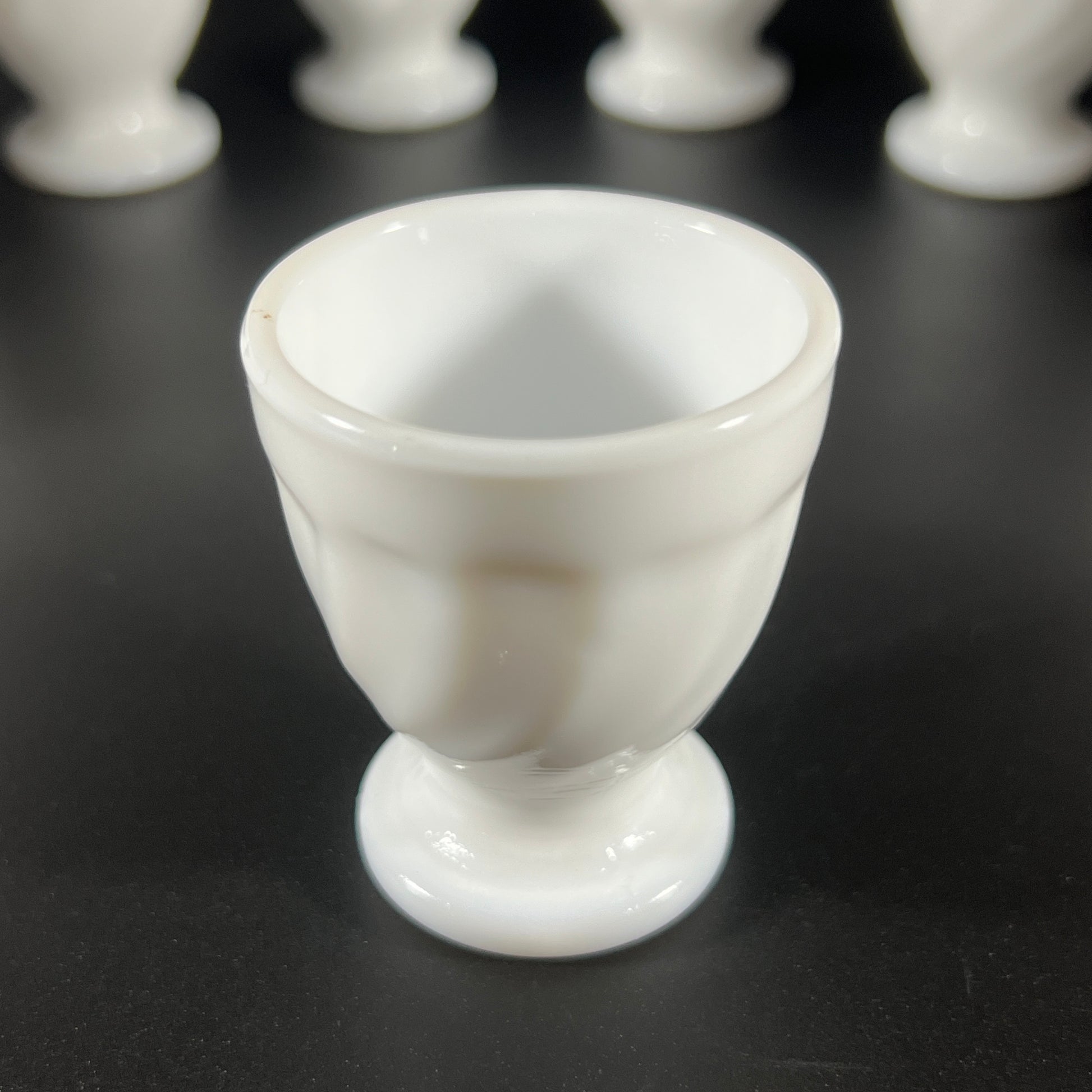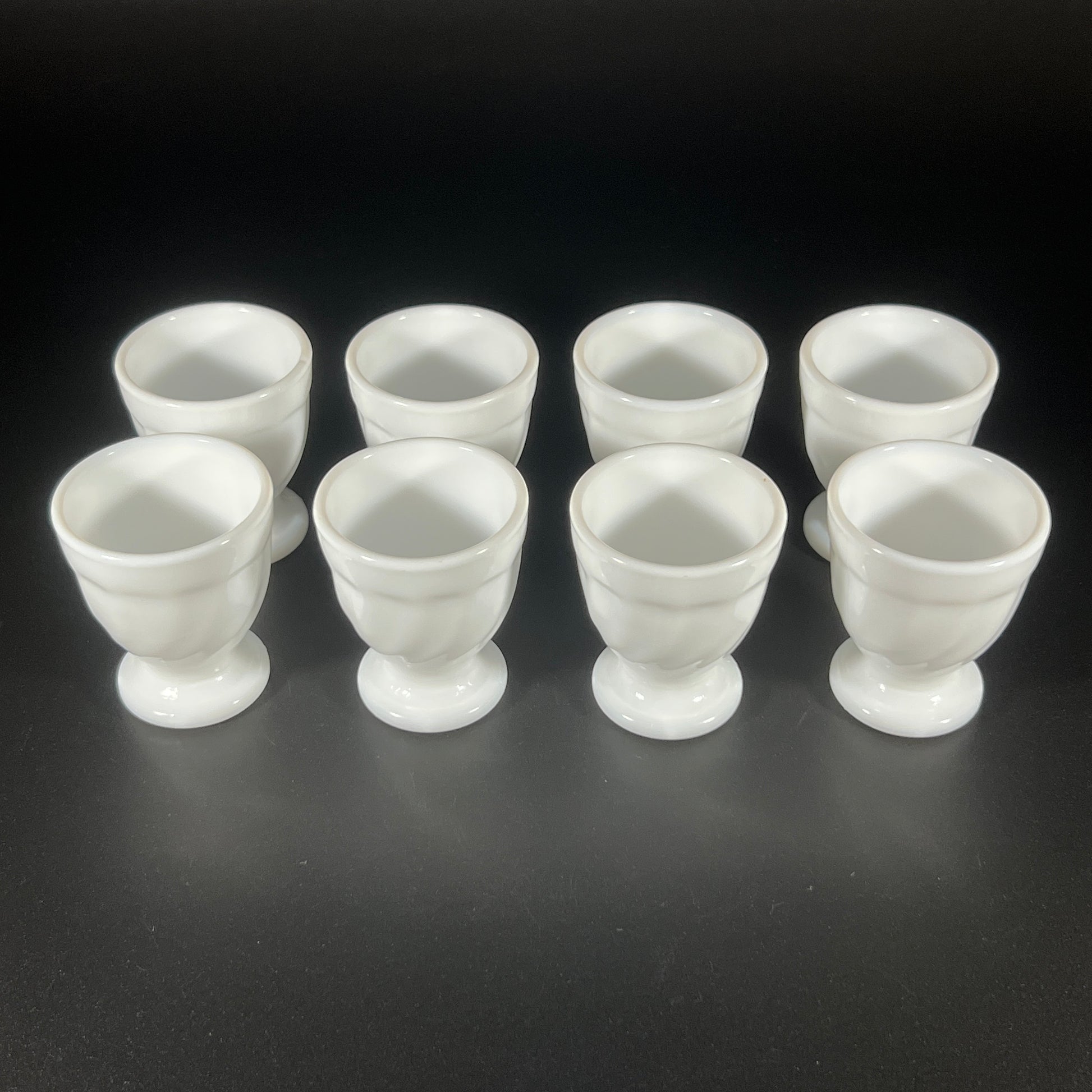 Vintage 1970s Arcopal Milk Glass Egg Cups – Set of 8 – Made in France