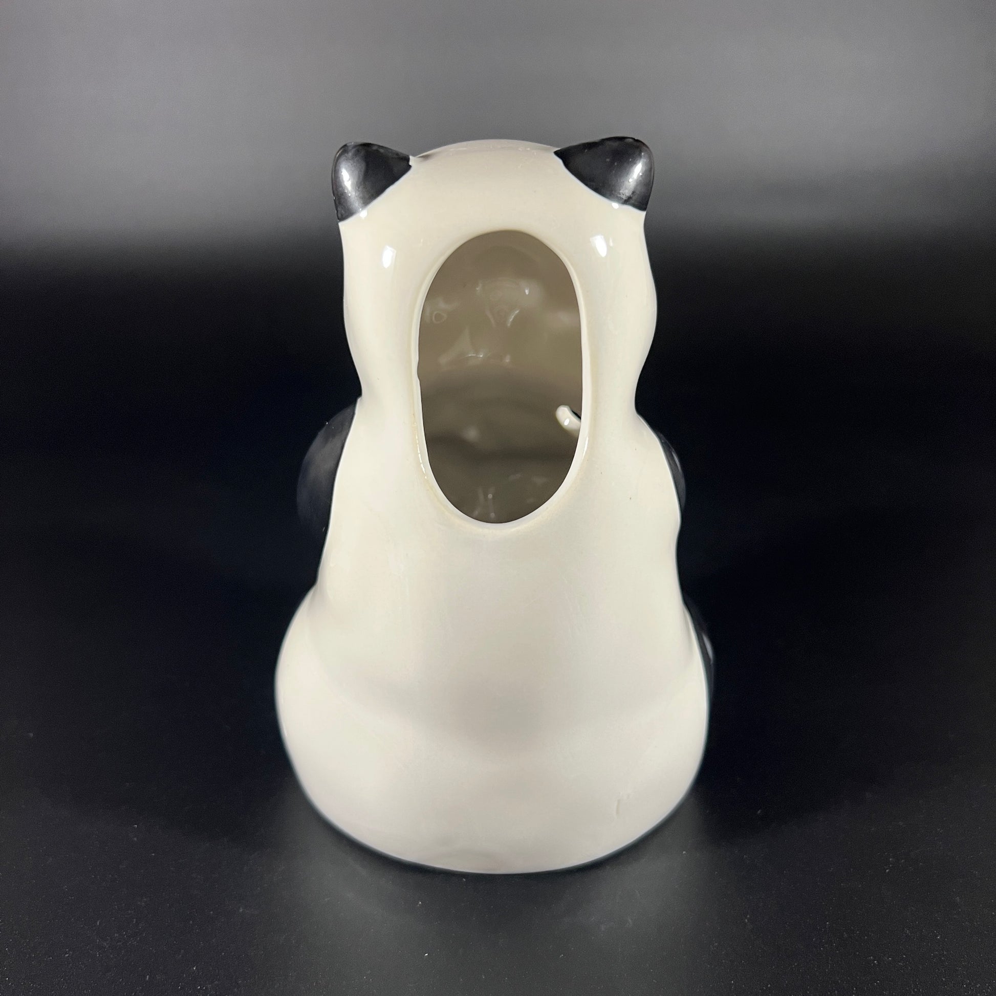 This vintage Benihana Panda restaurant mug, marked DW129, features a charming hand-painted panda in black with a green bamboo shoot. It includes a hole in the front, perfect for inserting a straw. In good vintage condition, it shows some wear consistent with its age, adding to its nostalgic charm. Please see the photos for more details. The mug measures approximately 6" H x 4" W x 4" D.
