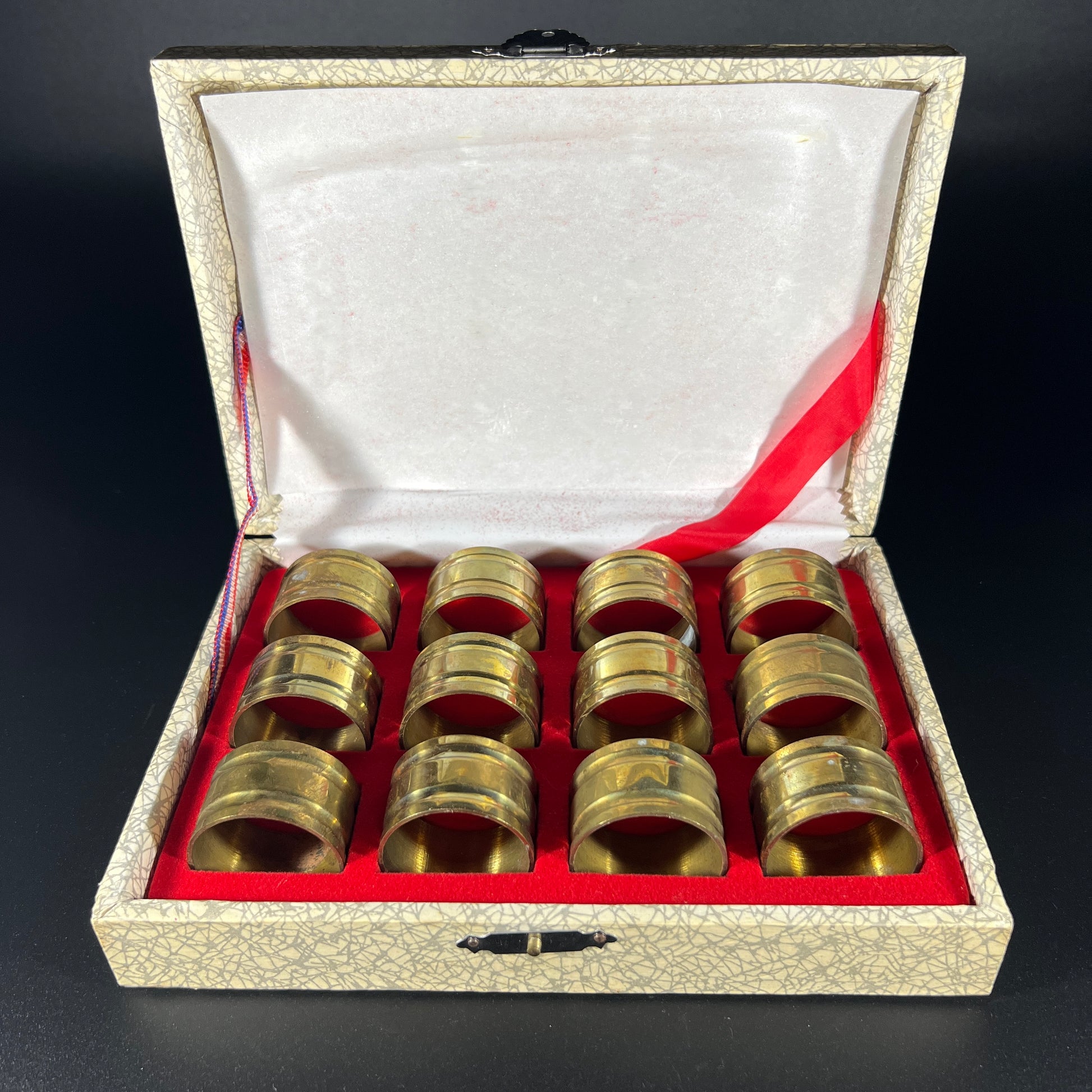 Vintage Brass Napkin Rings Holders In Original Case (set of 12)