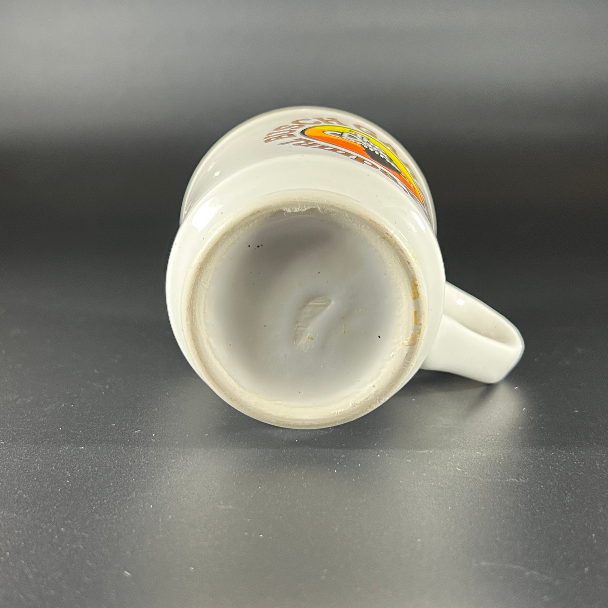 This 1980s vintage Busch Gardens Tampa souvenir mug features a design inspired by "The Dark Continent" theme, once a central attraction at the park. It has a footed base, a rich brown glazed rim, and a speckled finish that adds to its retro charm. The mug is in great vintage condition, with a few minor imperfections from the original manufacturing process—please see photos for details. It measures approximately 4 inches in height, 4.5 inches wide including the handle, and has a 3.25-inch opening. A fantastic collectible for theme park enthusiasts or vintage mug collectors.