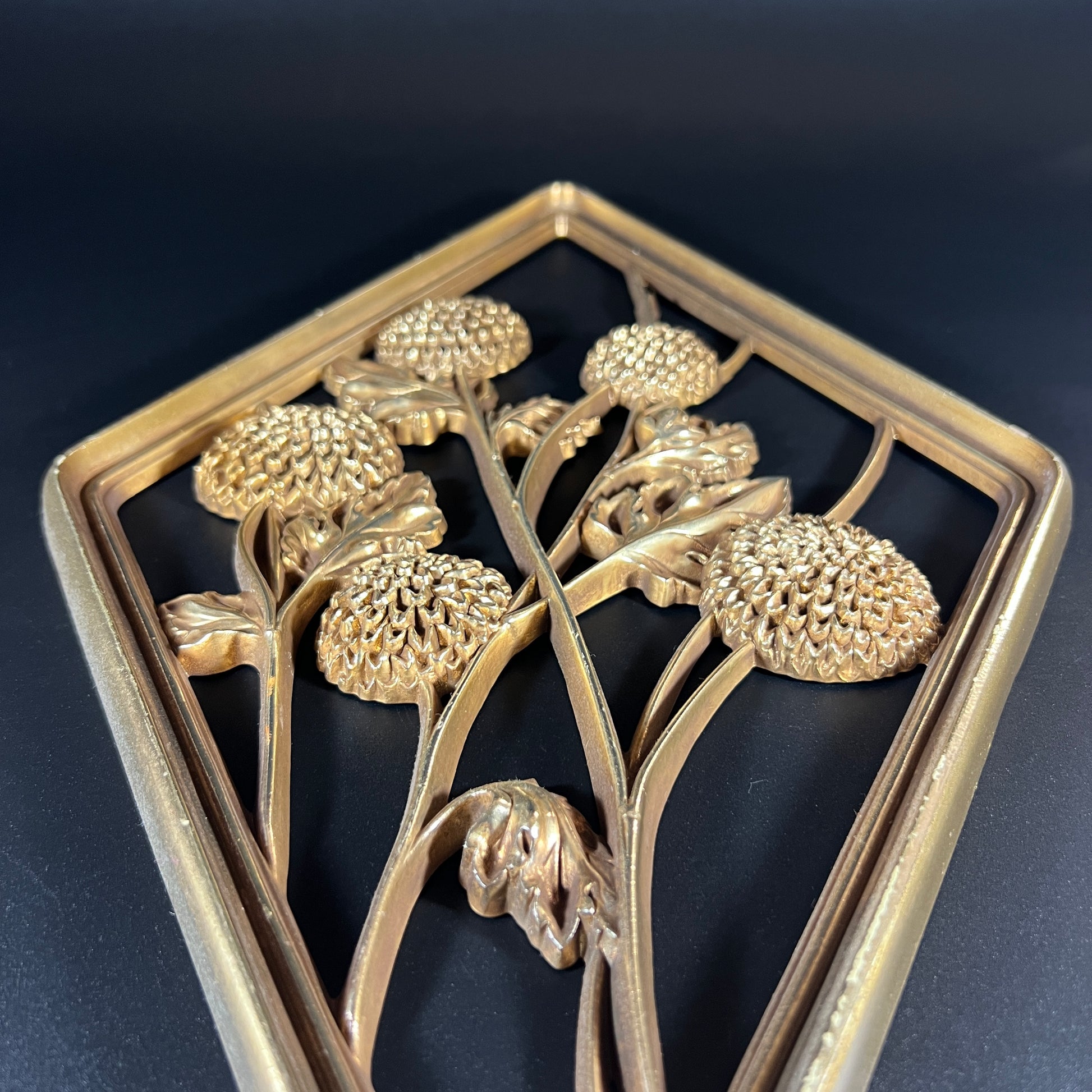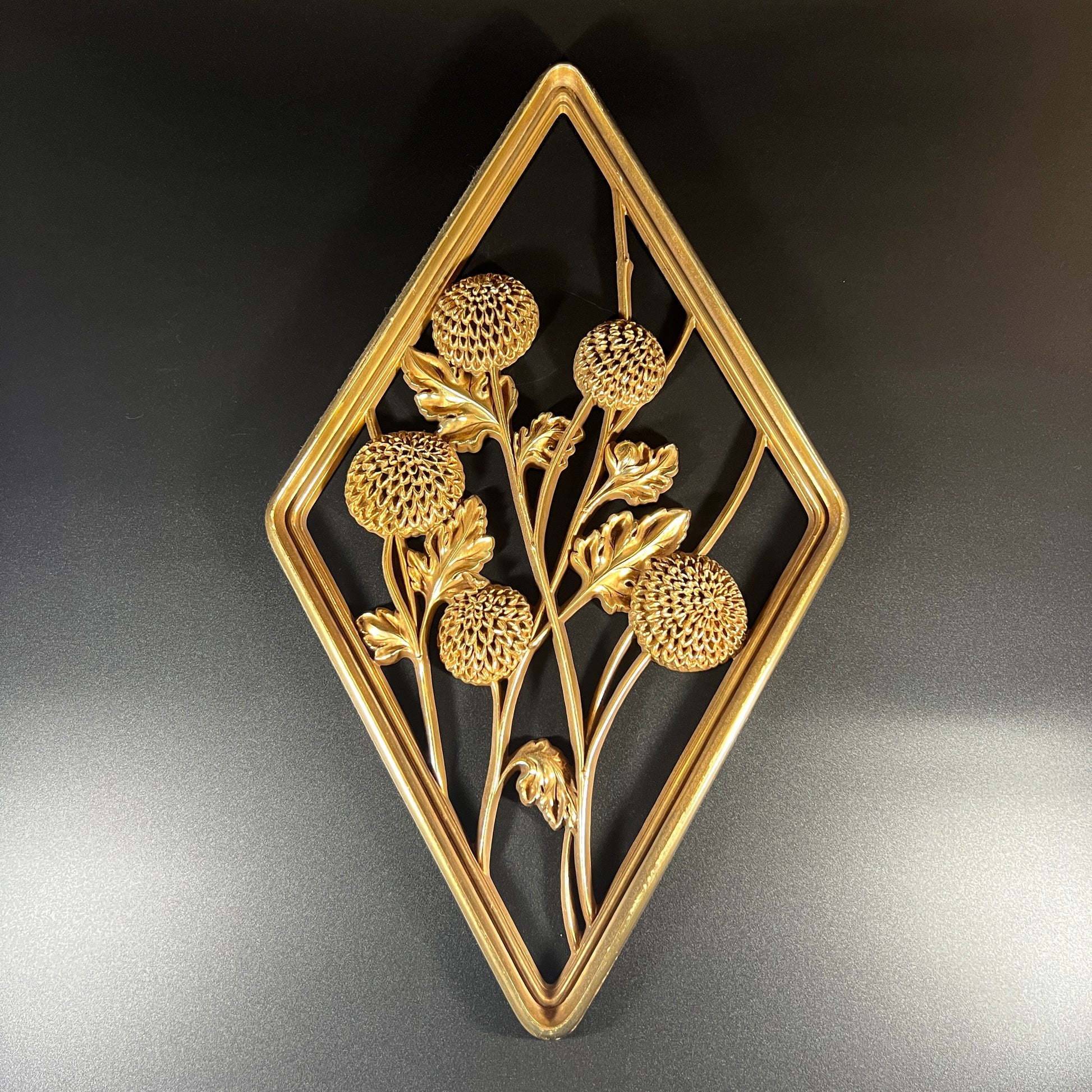 Vintage Diamond-Shaped Gold Syroco Flower Wall Plaque