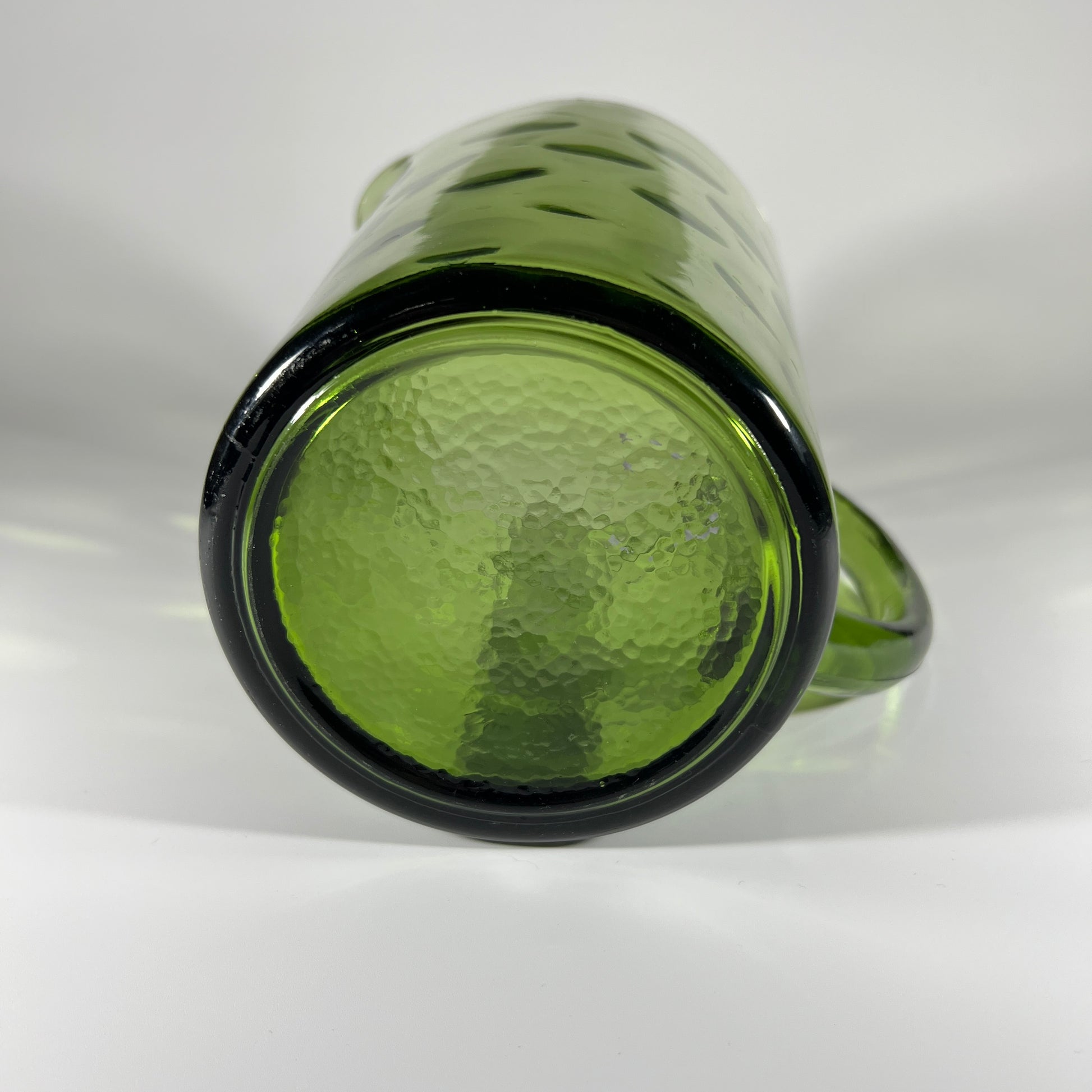 Vintage Hazel Atlas El Dorado Avocado Green Glass Pitcher, circa 1960s. This striking mid-century piece features the iconic avocado green hue and sleek lines that define the era’s glassware design.