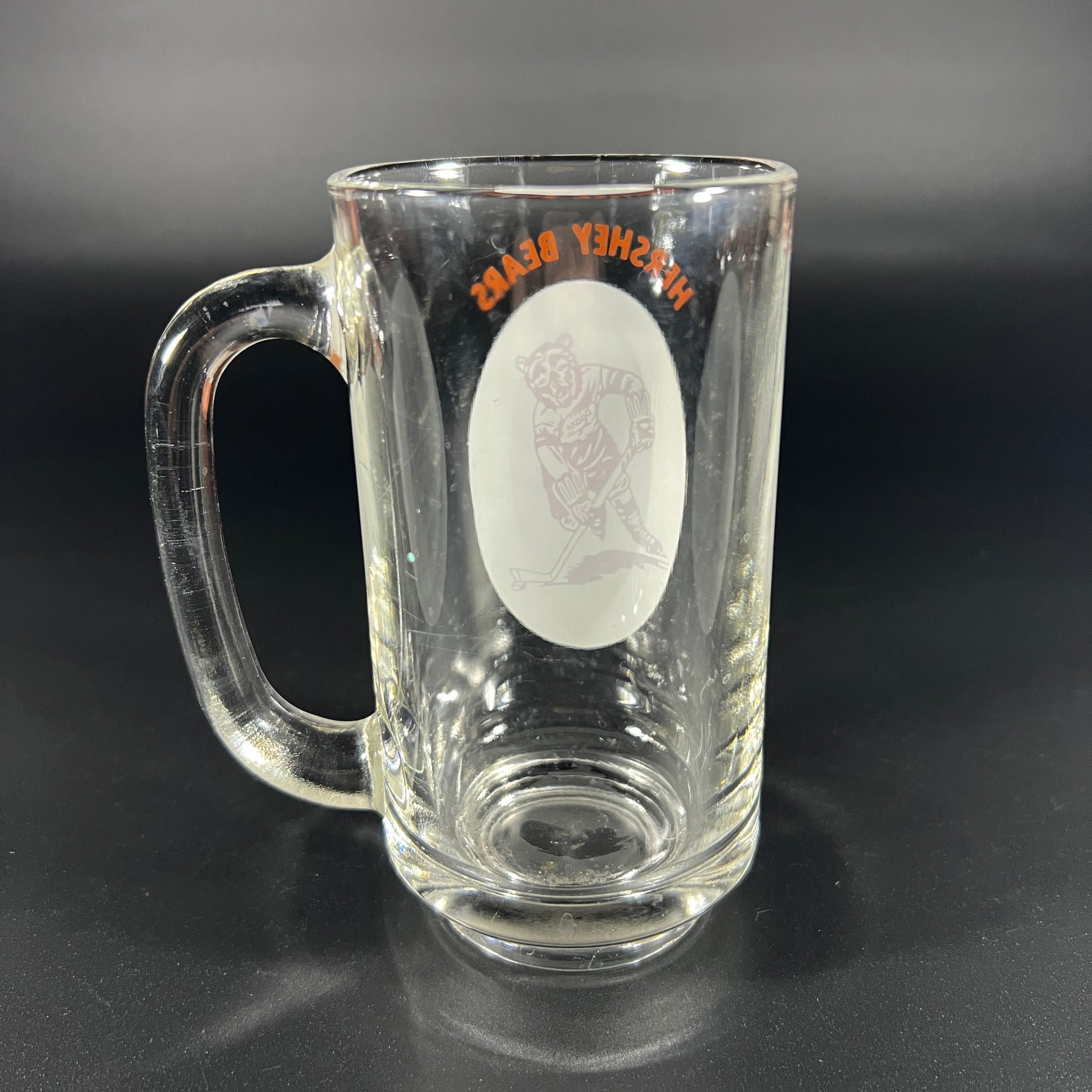 This vintage beer stein features the Hershey Bears, a beloved minor league hockey team from the AHL. In good vintage condition, with wear consistent with its age. Please review the photos for more details. The stein measures approximately 5.5" H x 4.25" W (with handle) x 2.75" at the opening. A fantastic piece for any hockey fan or collector of vintage sports memorabilia!