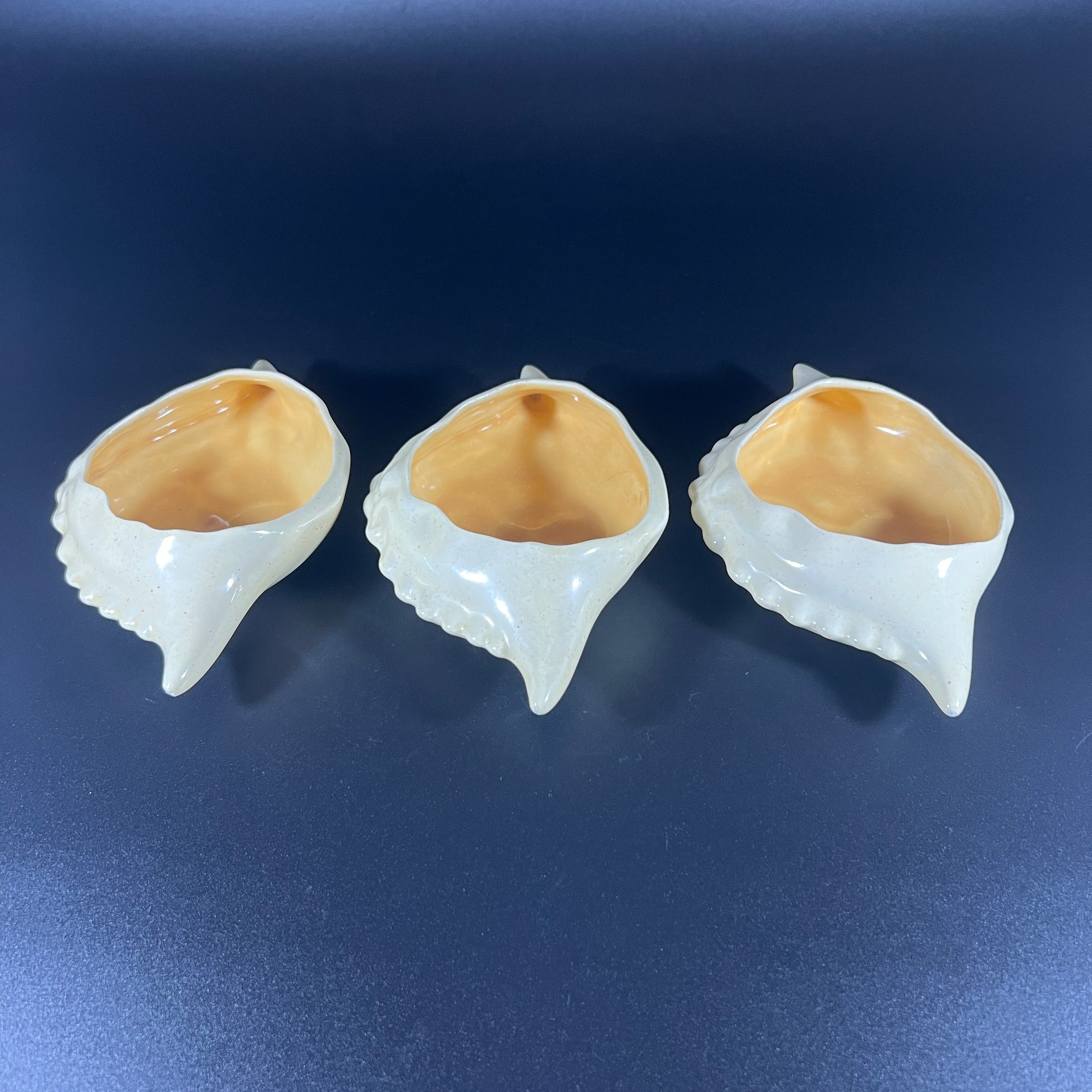 This delightful set of 3 vintage Imperial crab dishes boasts a beautifully glazed interior, perfect for serving individual portions or as whimsical coastal trinket holders. With their charming crab design, these dishes add a touch of seaside elegance to any space. In good vintage condition, they show some wear consistent with age. Please see the photos for further details. Each dish measures approximately 7" L x 4" W x 1.75" H, making them the perfect size for both functionality and decoration.