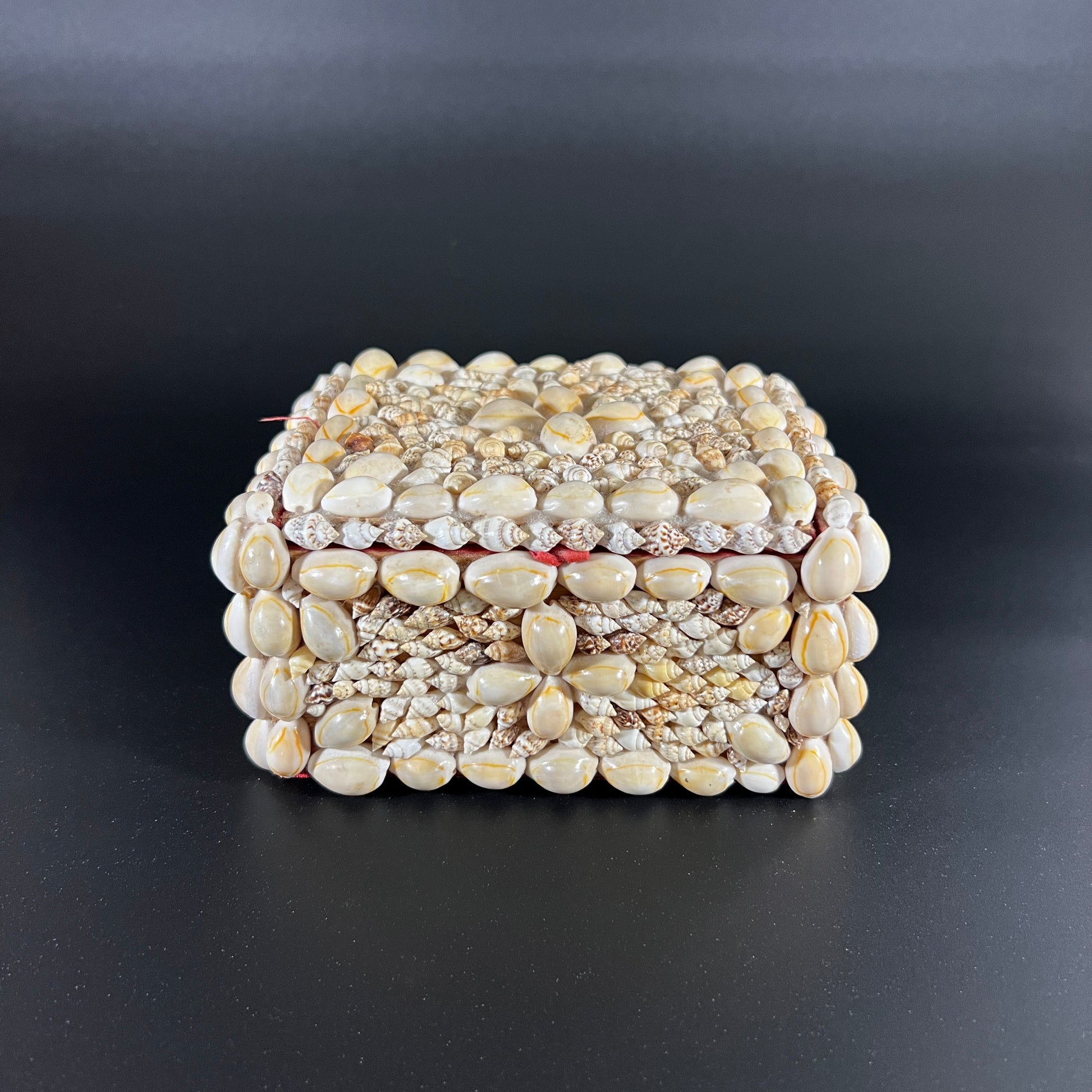 Vintage Shell Art Jewelry Trinket Box from the Philippines. In nice condition overall. There are a few broken/missing shells, but it still displays beautifully! See photos. 6" W x 5" D x 3" H