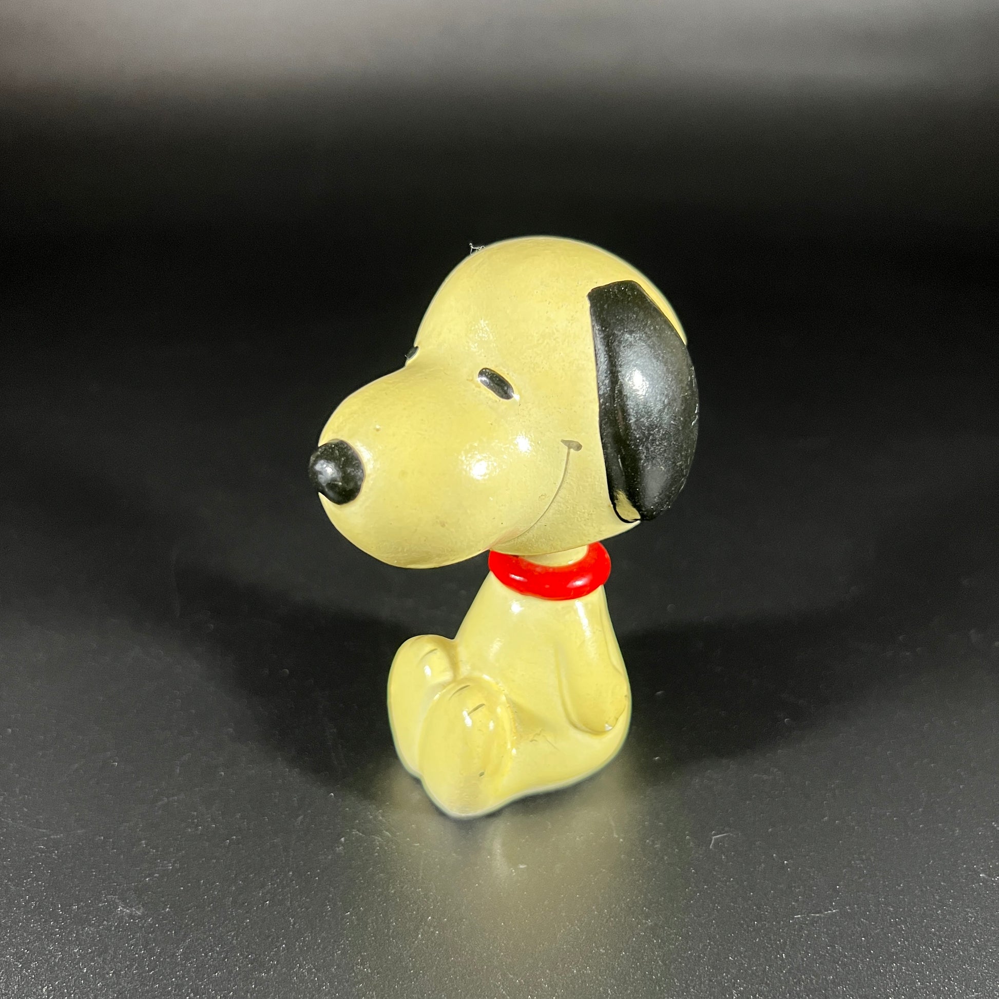 Charming vintage 1966 Snoopy mini bobblehead, still in perfect working condition and ready to add a playful touch to any collection. This delightful piece shows some expected wear, adding to its nostalgic character, as seen in the detailed photos. A must-have for Snoopy fans and collectors of classic memorabilia. Please refer to the images for more details. It measures approximately 3.75" H x 2" W x 2.75" D.