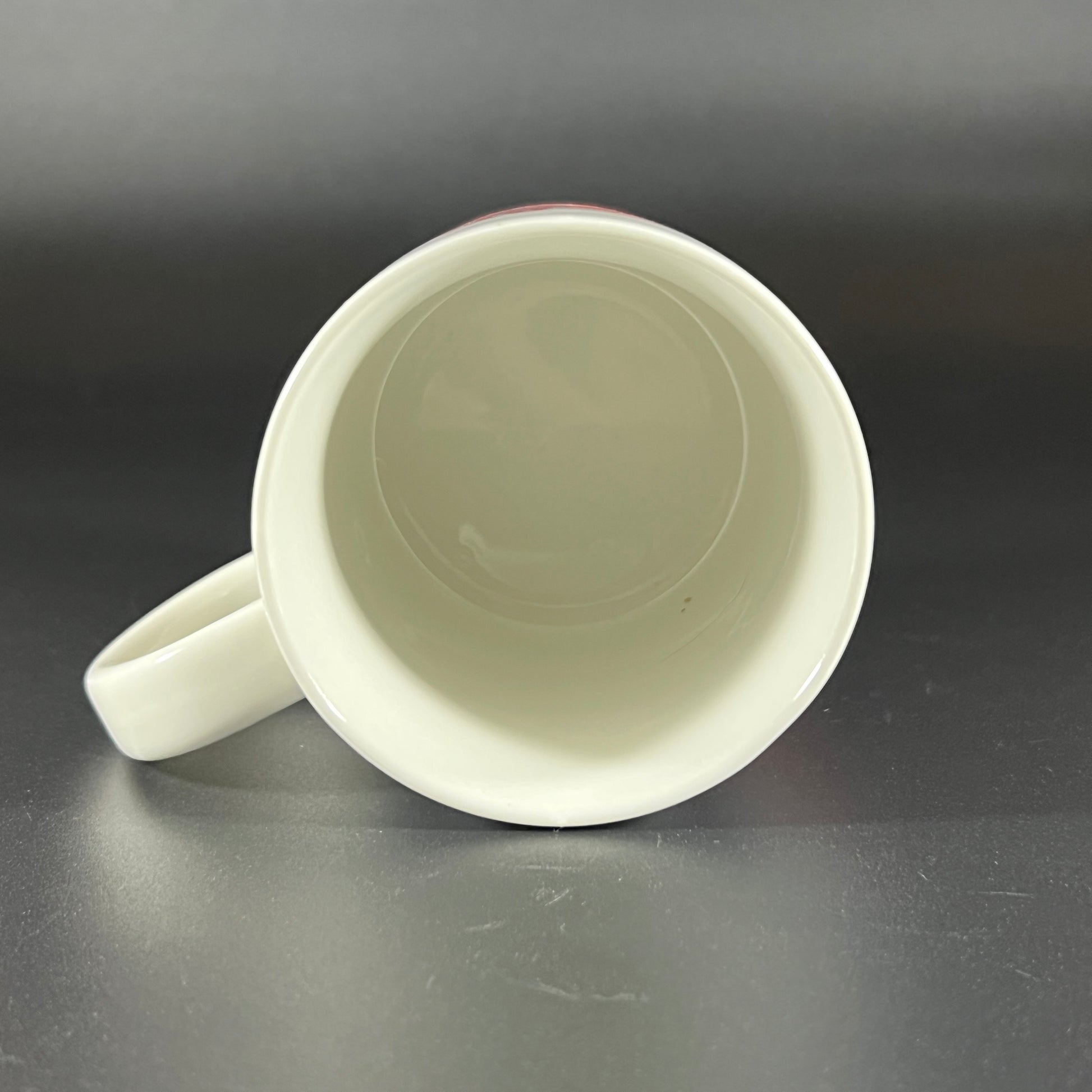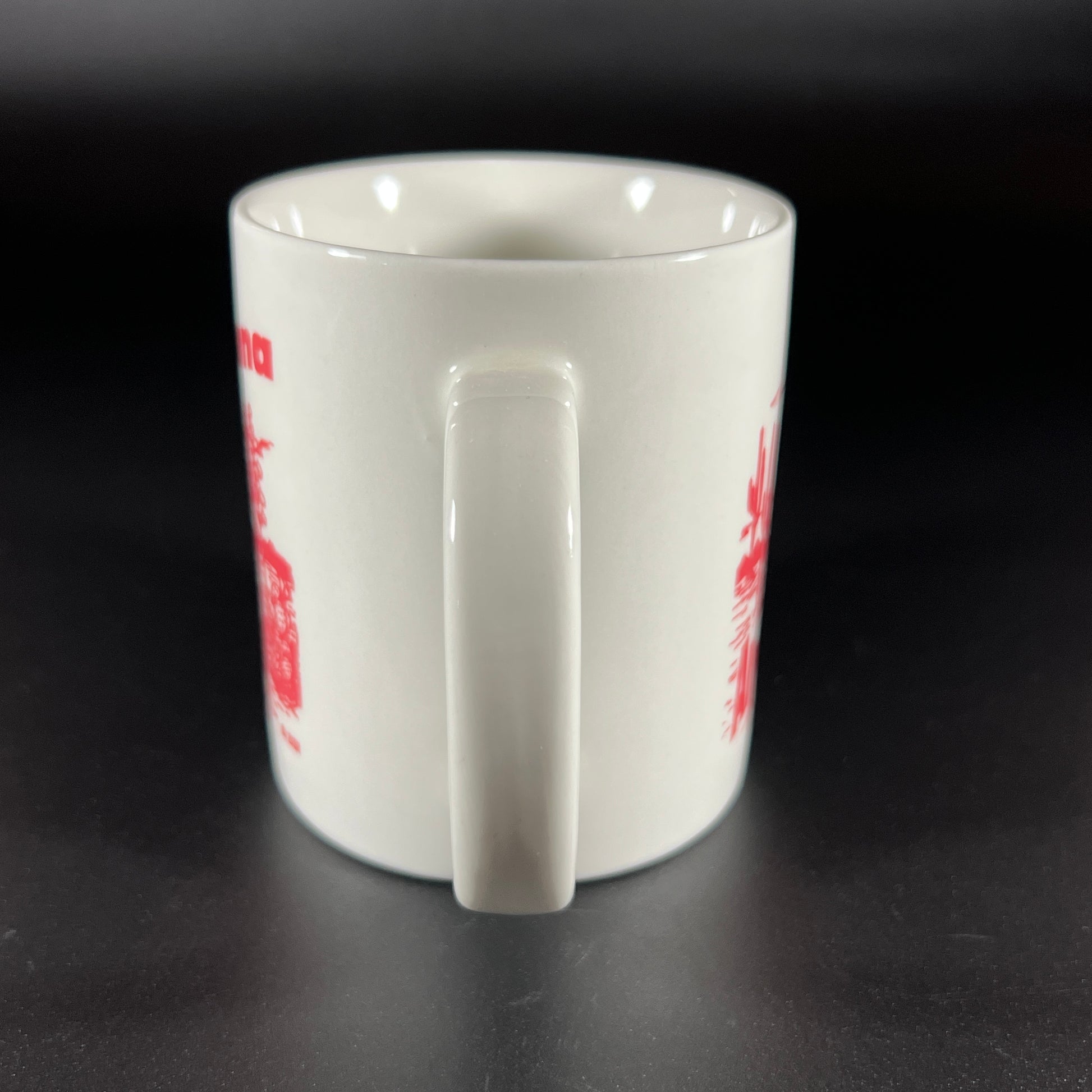 This vintage souvenir mug from the state of Arizona features a striking red desert scene graphic on a white background, capturing a classic Southwestern aesthetic. The bold contrast gives it a timeless, retro look. The mug is in excellent vintage condition with minimal signs of wear. It measures approximately 3.75 inches in height, 4.75 inches wide including the handle, and has a 3.25-inch opening. A perfect addition to any vintage mug or travel memorabilia collection.