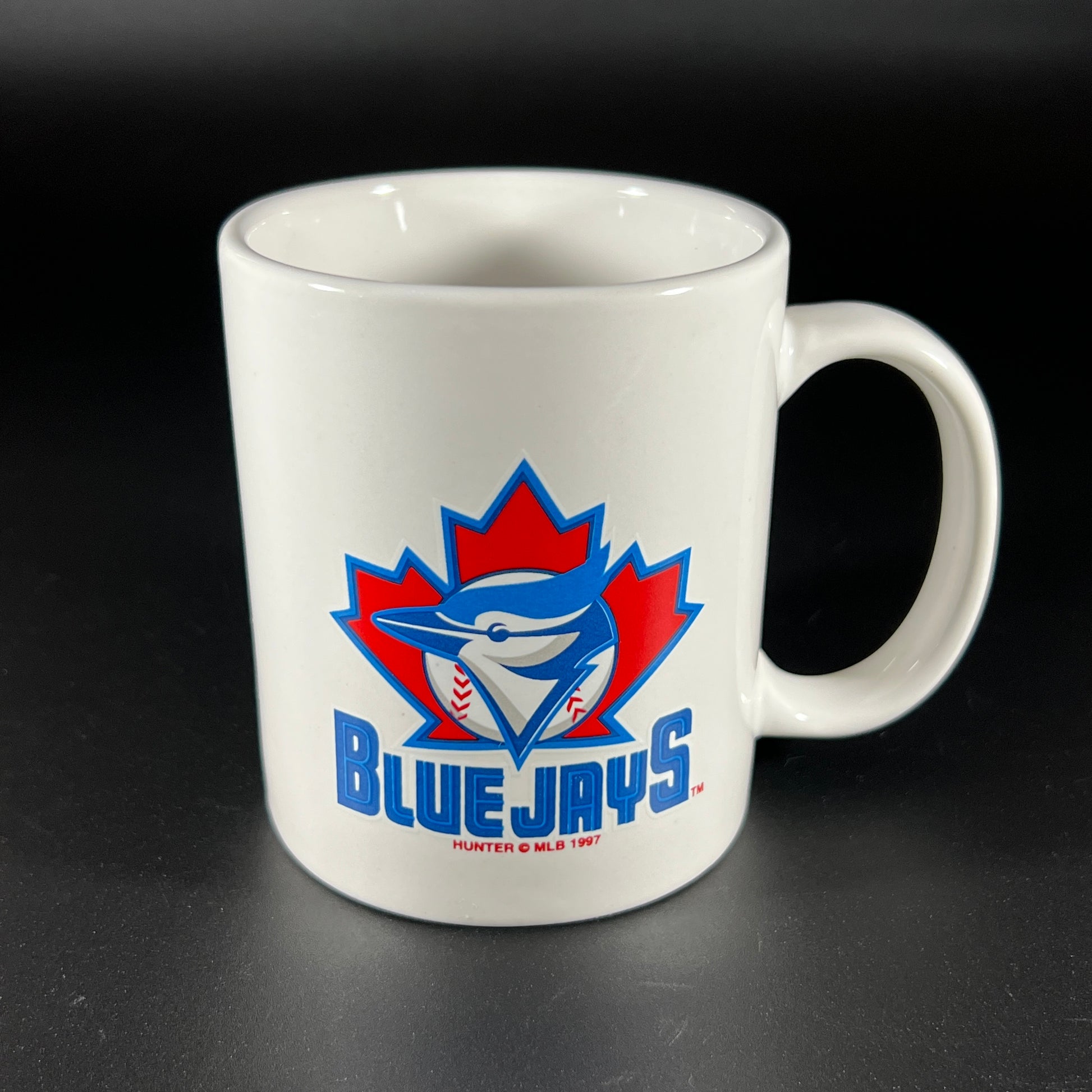 This vintage 1997 Toronto Blue Jays mug is a great addition to any collection. Featuring the classic team design, it remains in excellent vintage condition with only minor signs of age. Please view the photos for a closer look at the details and overall condition. The mug measures approximately 3.75 inches in height, 4.75 inches wide including the handle, and has a 3-inch opening. A perfect piece for any Blue Jays fan or vintage sports memorabilia collector.